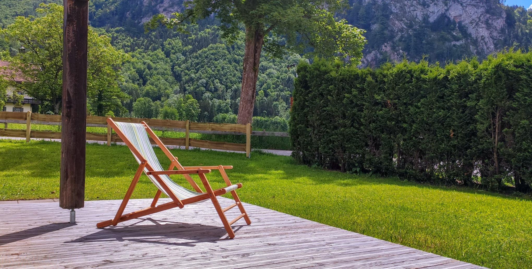 Die Terrasse lädt nicht nur zum Entspannen ein, sondern bietet auch genug Platz für gemütliche Stunden zu zweit oder mit Freunden. Ob beim Frühstück in der Morgensonne oder einem Glas Wein am Abend - hier ist Entspannung garantiert. Und wenn du mal keine Lust auf Aktivitäten hast, kannst du einfach bei einem guten Buch die Seele baumeln lassen.
