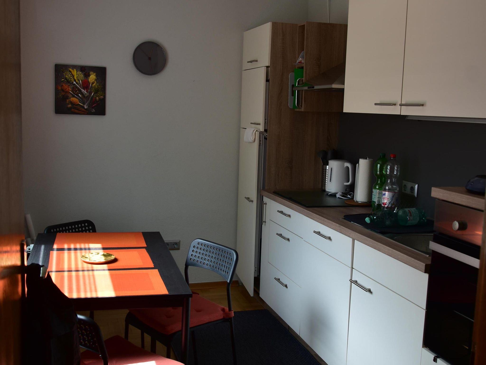 Auf der ersten Etage befindet sich eine voll ausgestattete, neue Küche (mit Geschirrspülmaschine, Mikrowelle, Backofen, Herd, Kühlschrank mit separatem Gefrierfach, Toaster, Kaffeemaschine, Senseo Philips Kaffee-Pad-Maschine, Wasserkocher) eine kleine Terrasse und ein Gäste WC.