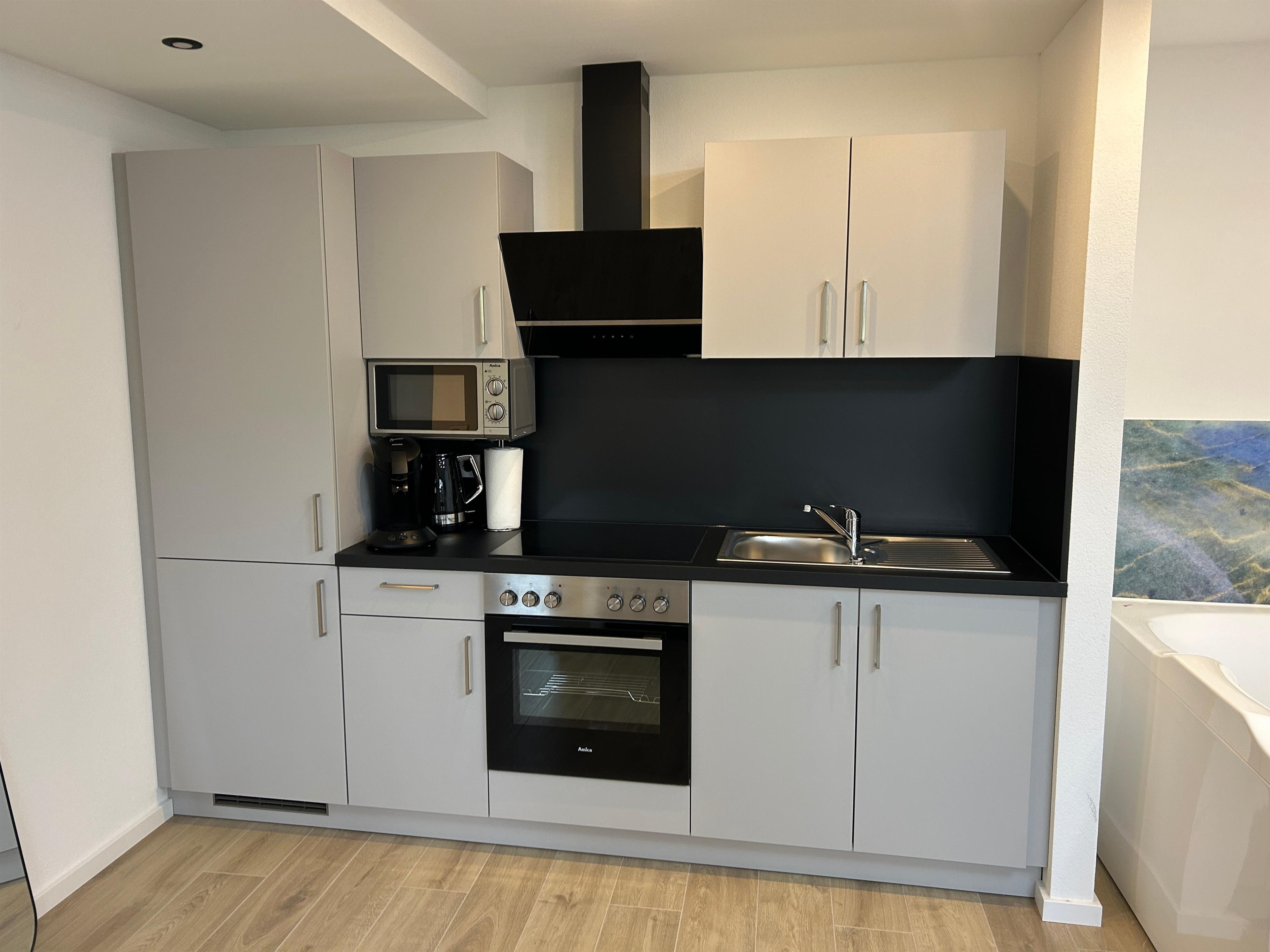 Kostenloses WLAN ist ebenfalls verfügbar, damit Sie jederzeit online bleiben können. In der gut ausgestatteten Küche finden Sie alles, was Sie brauchen: einen Kühlschrank, eine Mikrowelle, einen Backofen und eine Kaffeemaschine ideal, um sich selbst zu versorgen.