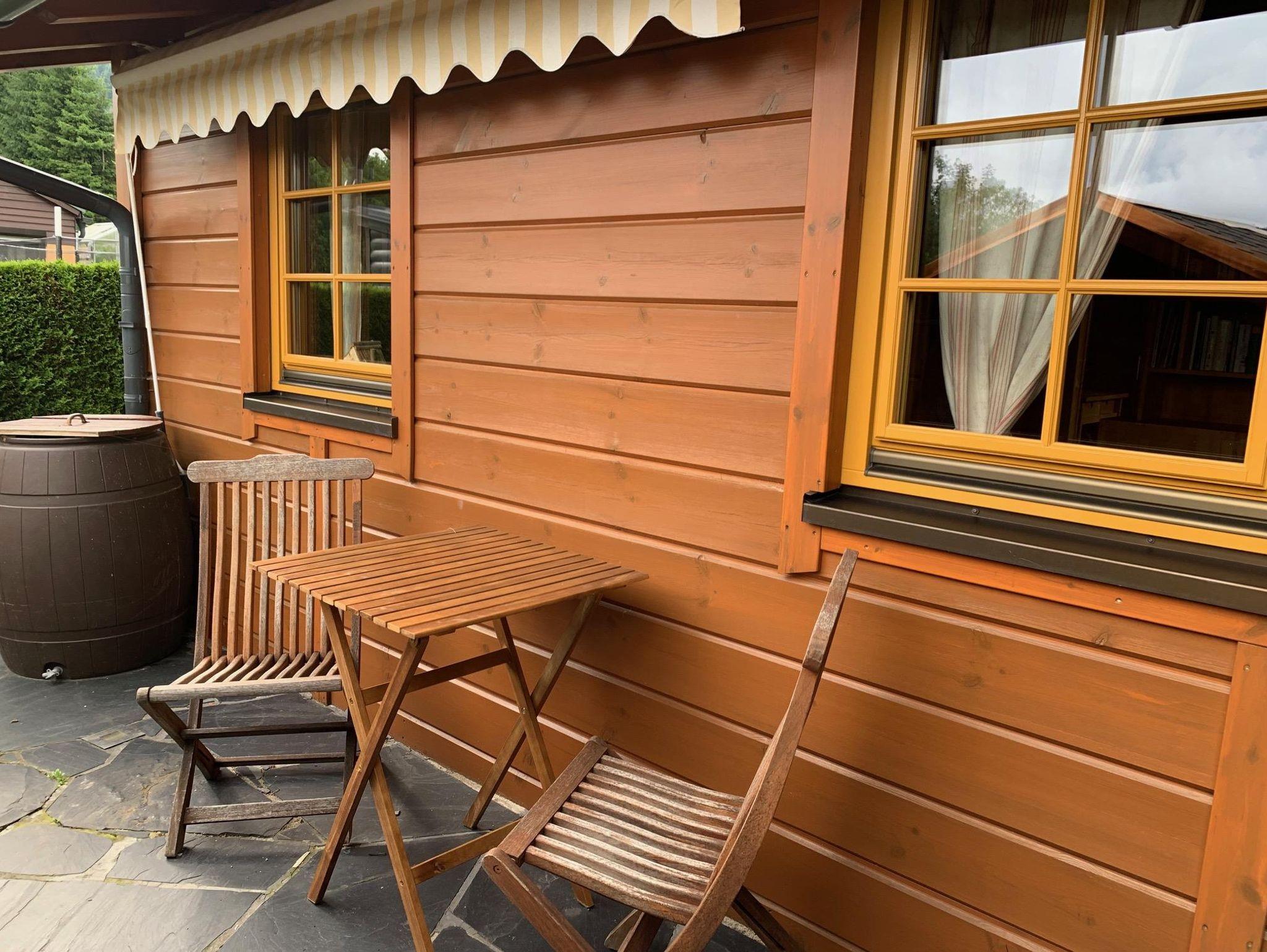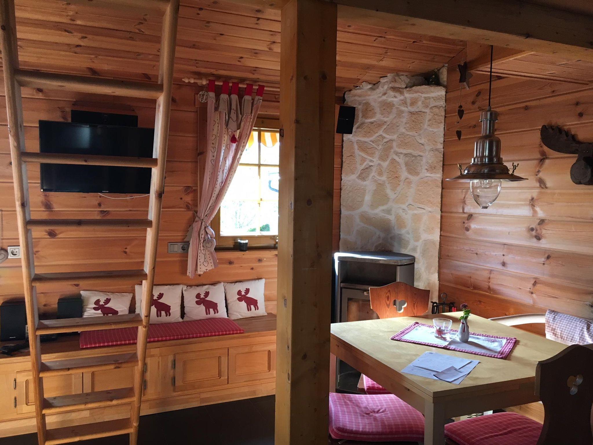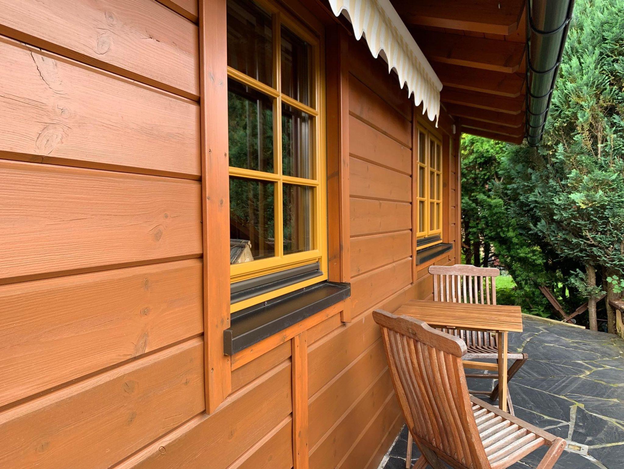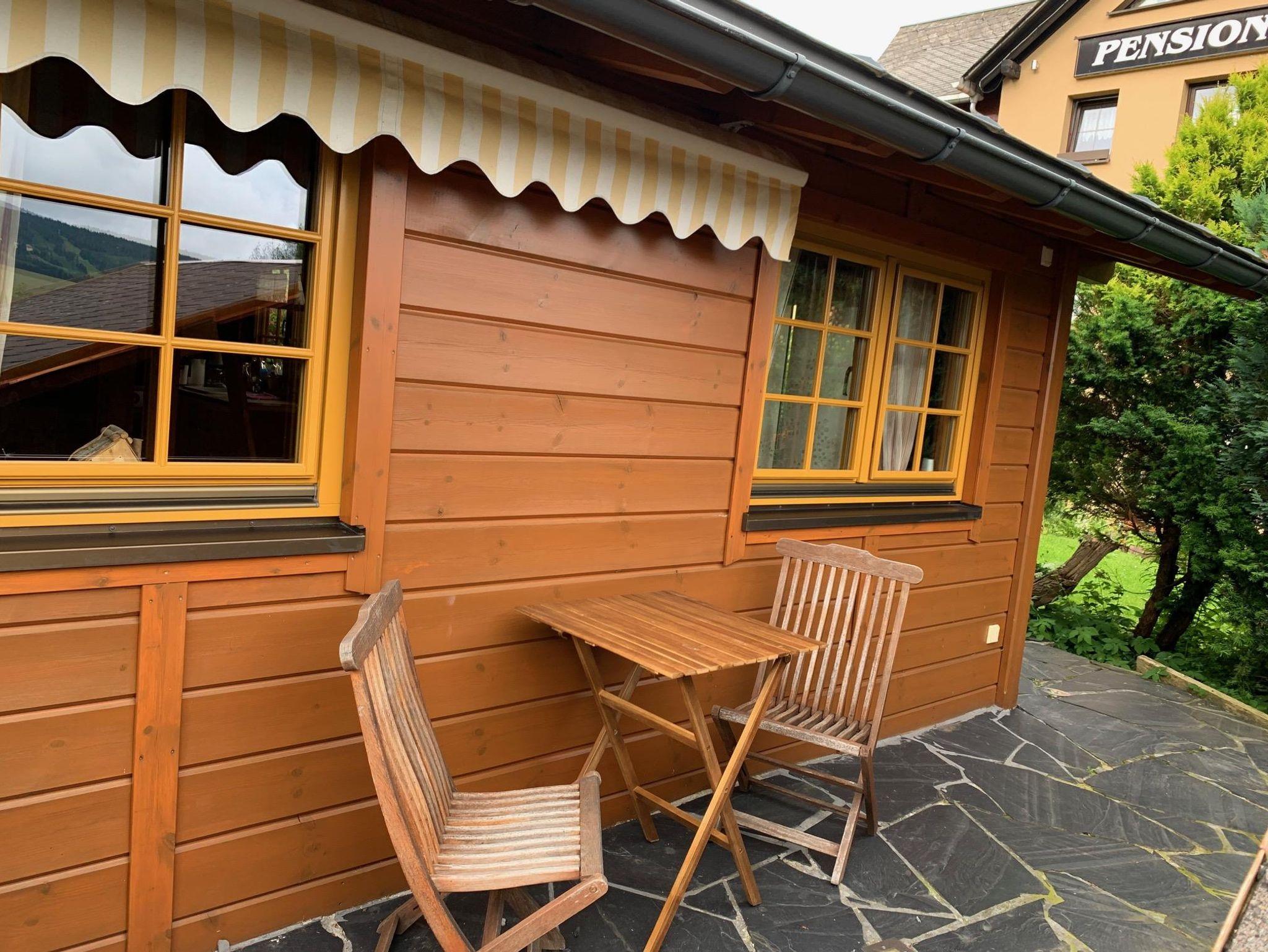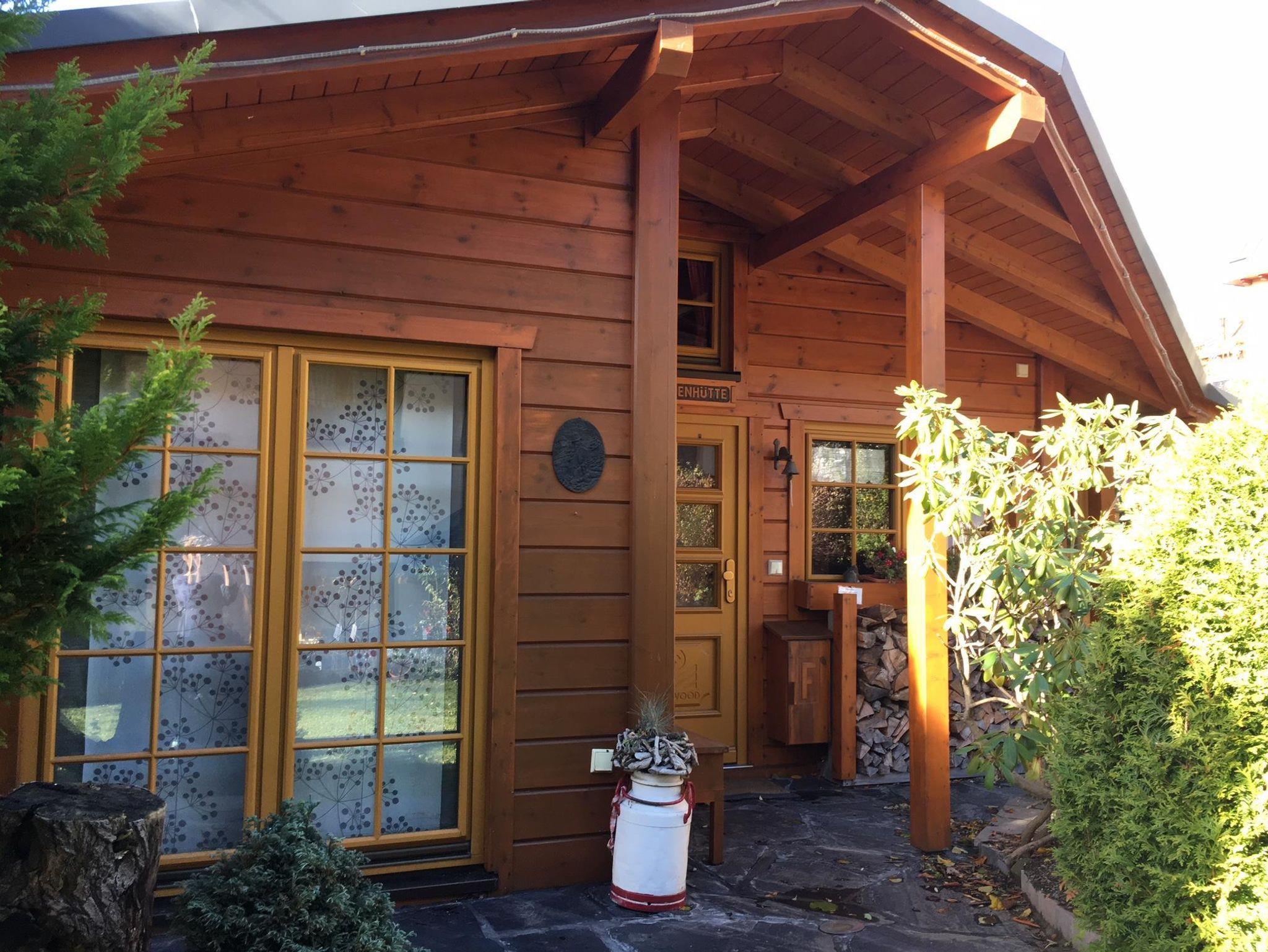 Die Hütte liegt ruhig gelegen im Garten der Pension Schanzenblick mit eigener, abgeschirmter Terrasse, sodass man ruhige Abende mit einem Glas Wein unter dem Sternenhimmel verbringen kann.