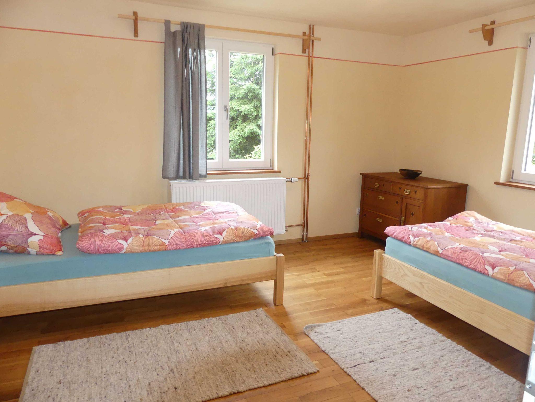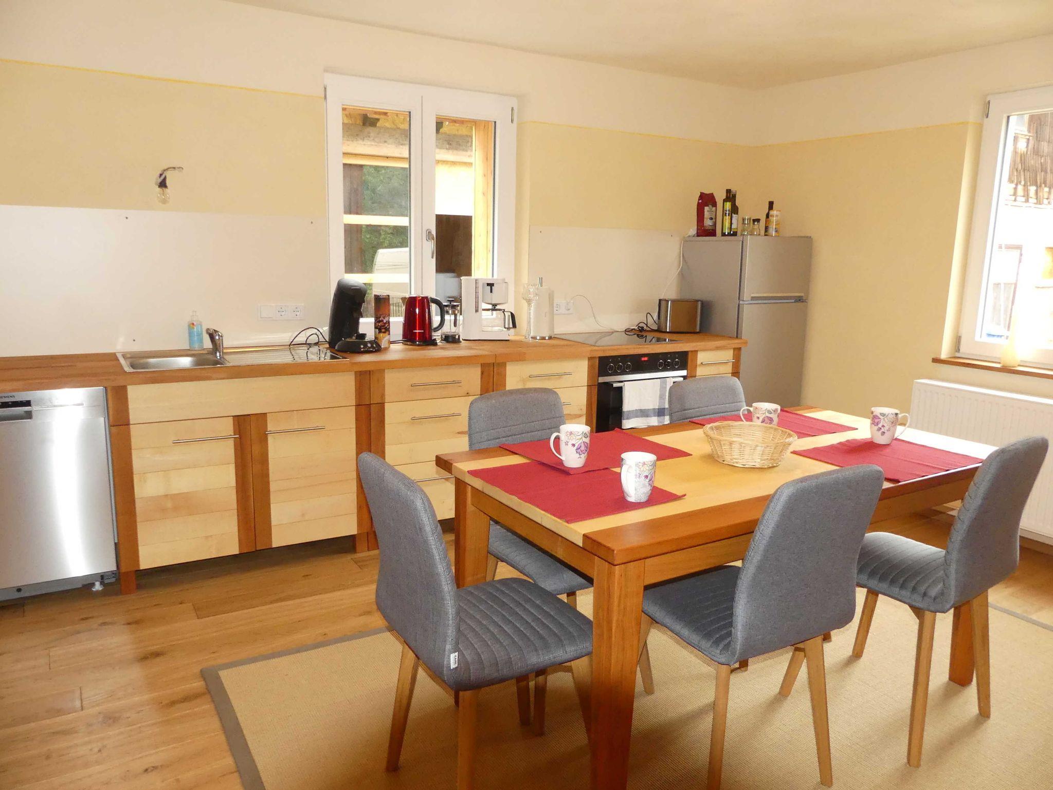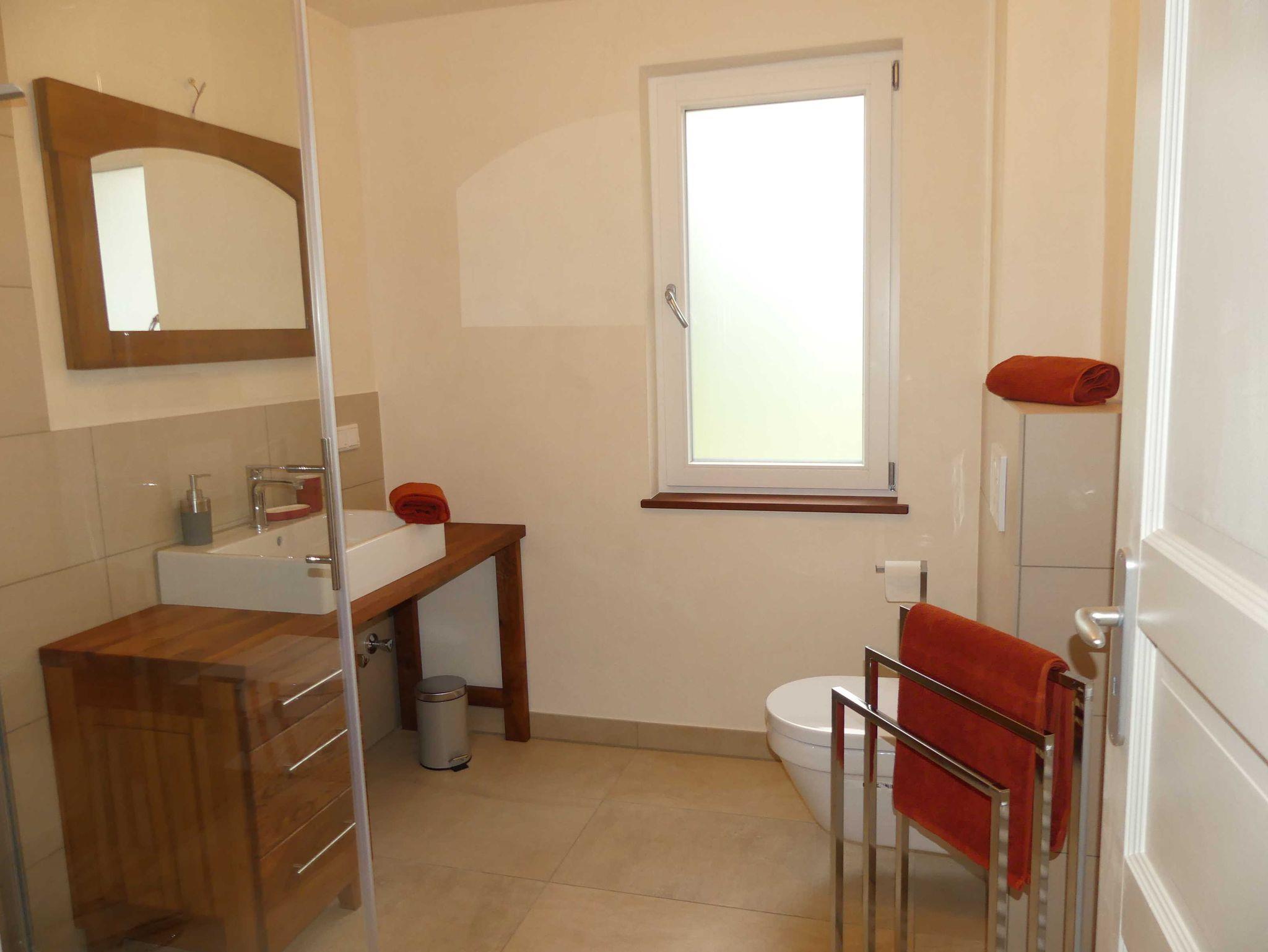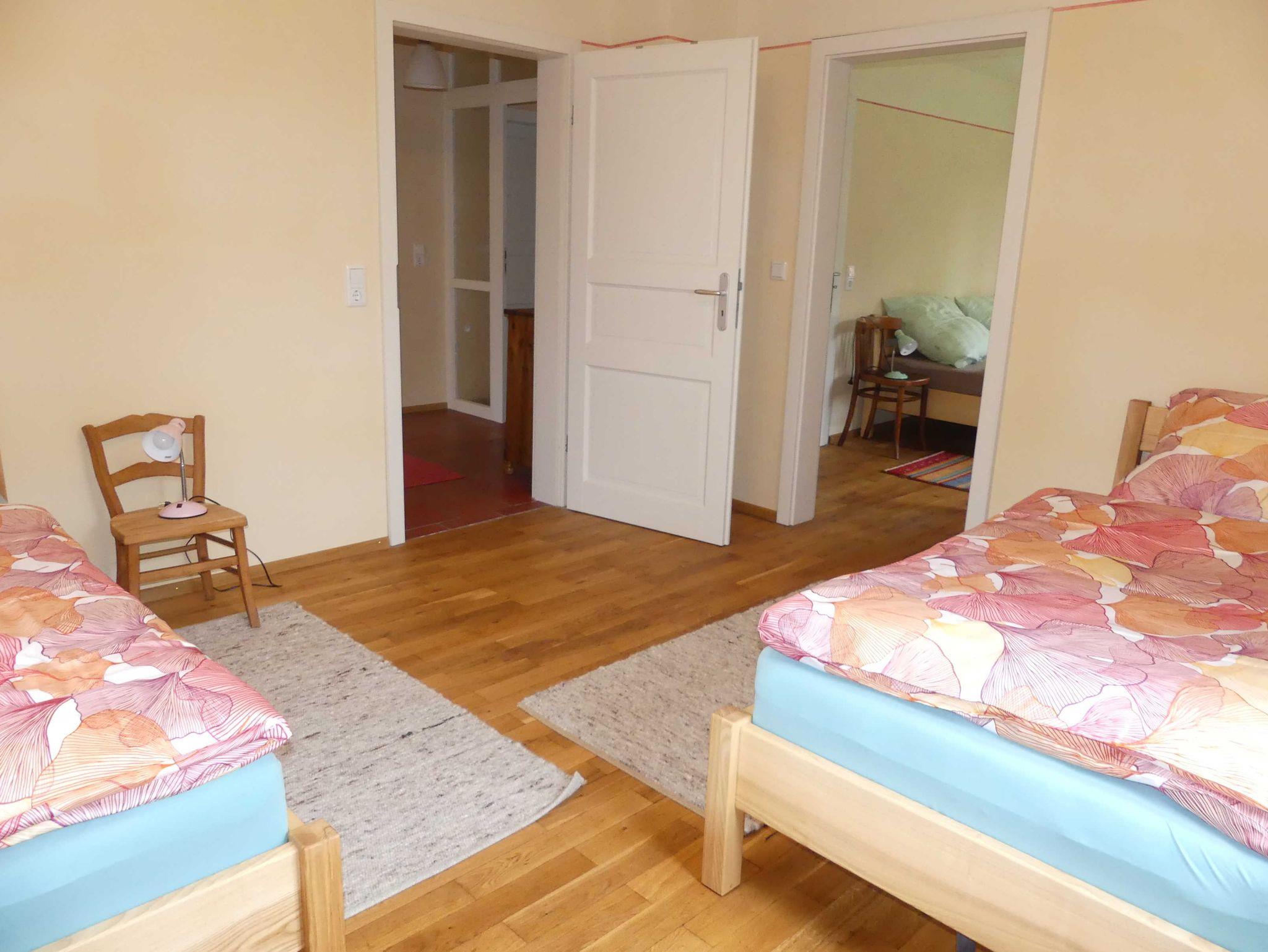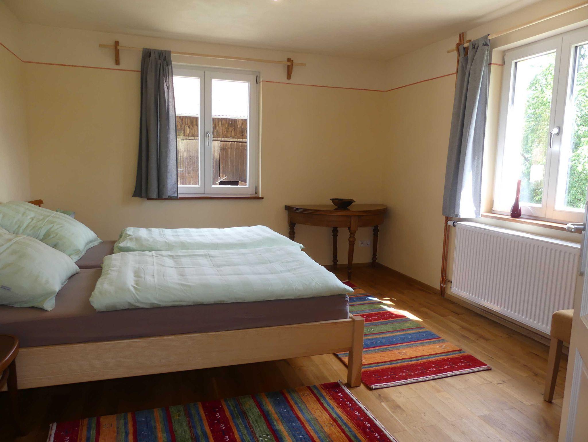 Unsere 70 qm große Ferienwohnung befindet sich abseits vom Durchgangsverkehr im ersten Stockwerk eines ökologisch grundsanierten ehemaligen Bauernhauses. Diese Wohnung kann über den Balkon ebenerdig und somit barrierefrei auch mit einem Rollstuhl erreicht werden.
