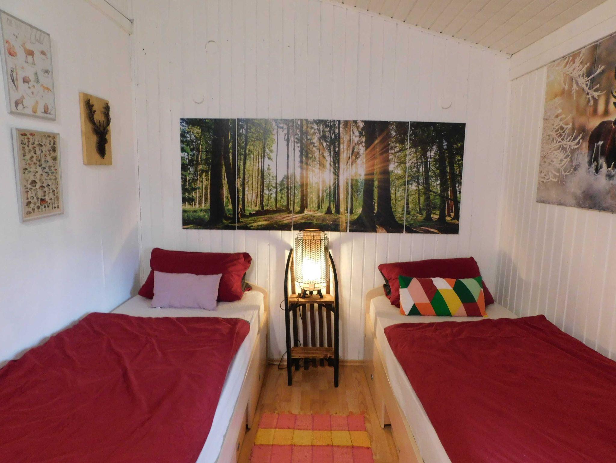 Unser Holzhaus ist aufgeteilt in 1 Schlafzimmer mit Doppelbett, 1 Schlafzimmer mit 2 Einzelbetten, Dusche und WC; Kochnische und einem Wohn-Eßzimmer für 4 Personen. Unser kleiner Wintergarten lädt zum verweilen ein. Vor dem Haus befindet sich eine Sitzgruppe mit Grill und an dem angrenzenden Rasenstück lädt eine Feuerstelle zu geselligen Stunden ein.