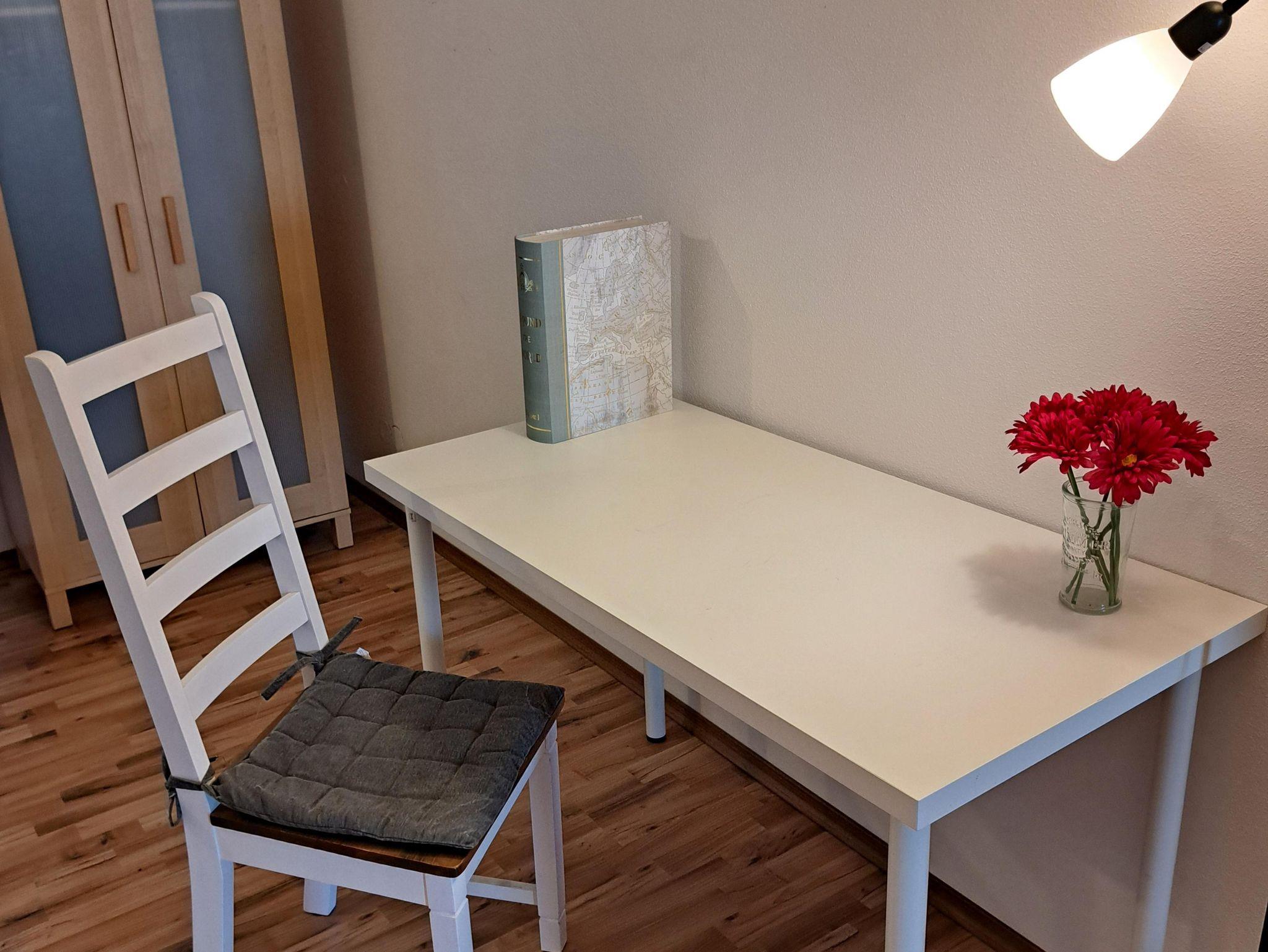 Freuen Sie sich auf eine gemütlich eingerichtete Wohnung zum Wohlfühlen mit gut ausgestatteter Küche, kostenlosem W-LAN, Bad mit Dusche/WC, Fußbodenheizung, Rolläden in allen Zimmern und möbliertem Südbalkon.