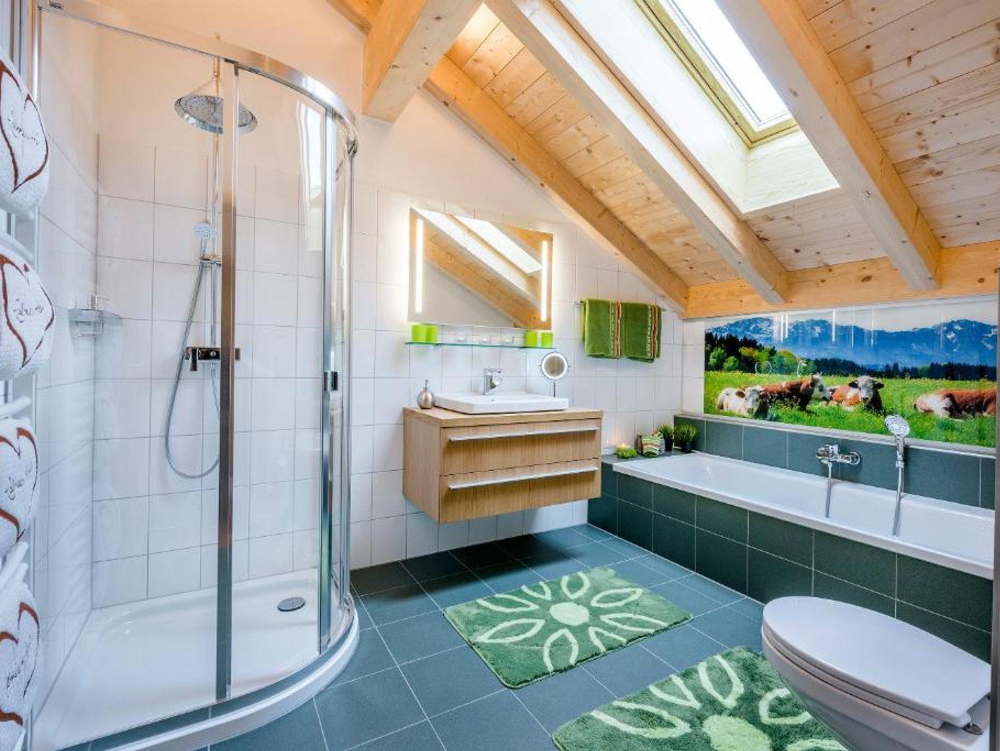 • geräumiges Wohlfühl-Badezimmer mit Dusche, Badewanne, WC, Föhn und Handtuchtrockner