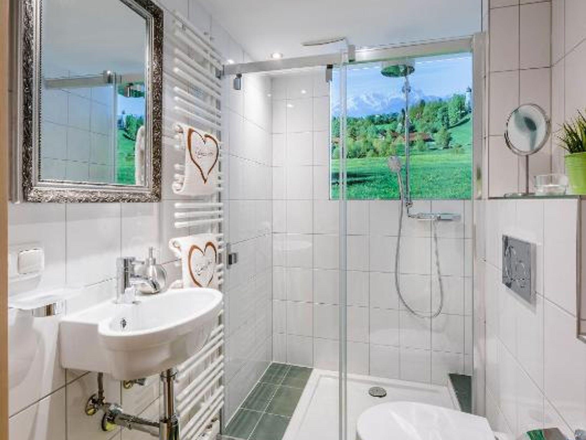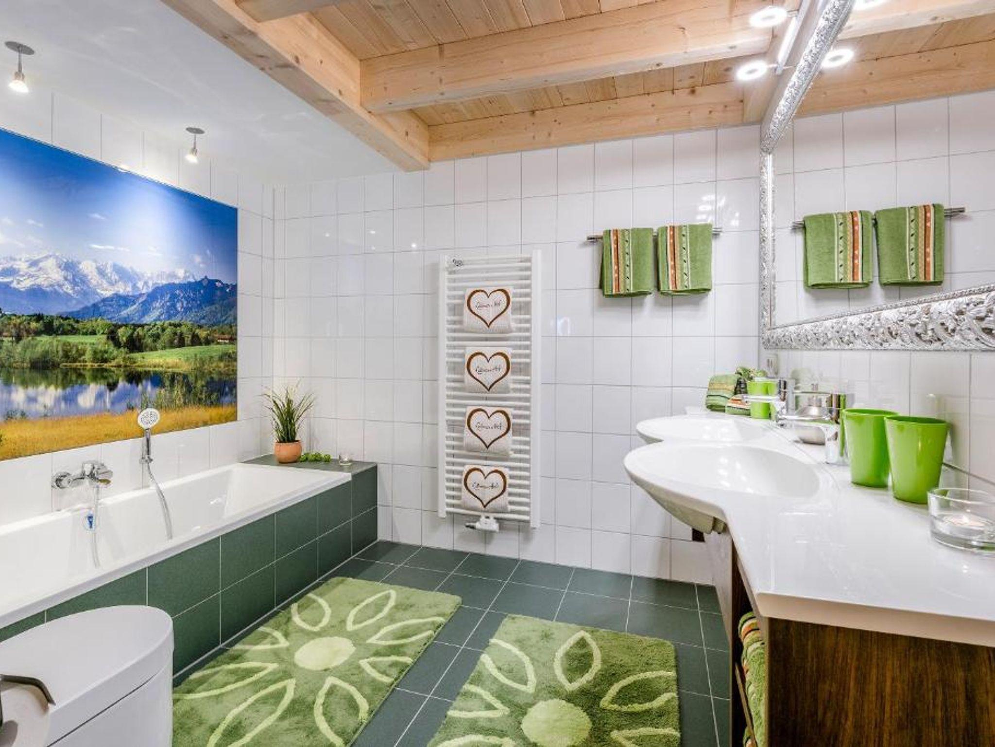 • geräumiges Wohlfühl-Badezimmer mit Badewanne, WC, Föhn und Handtuchtrockner