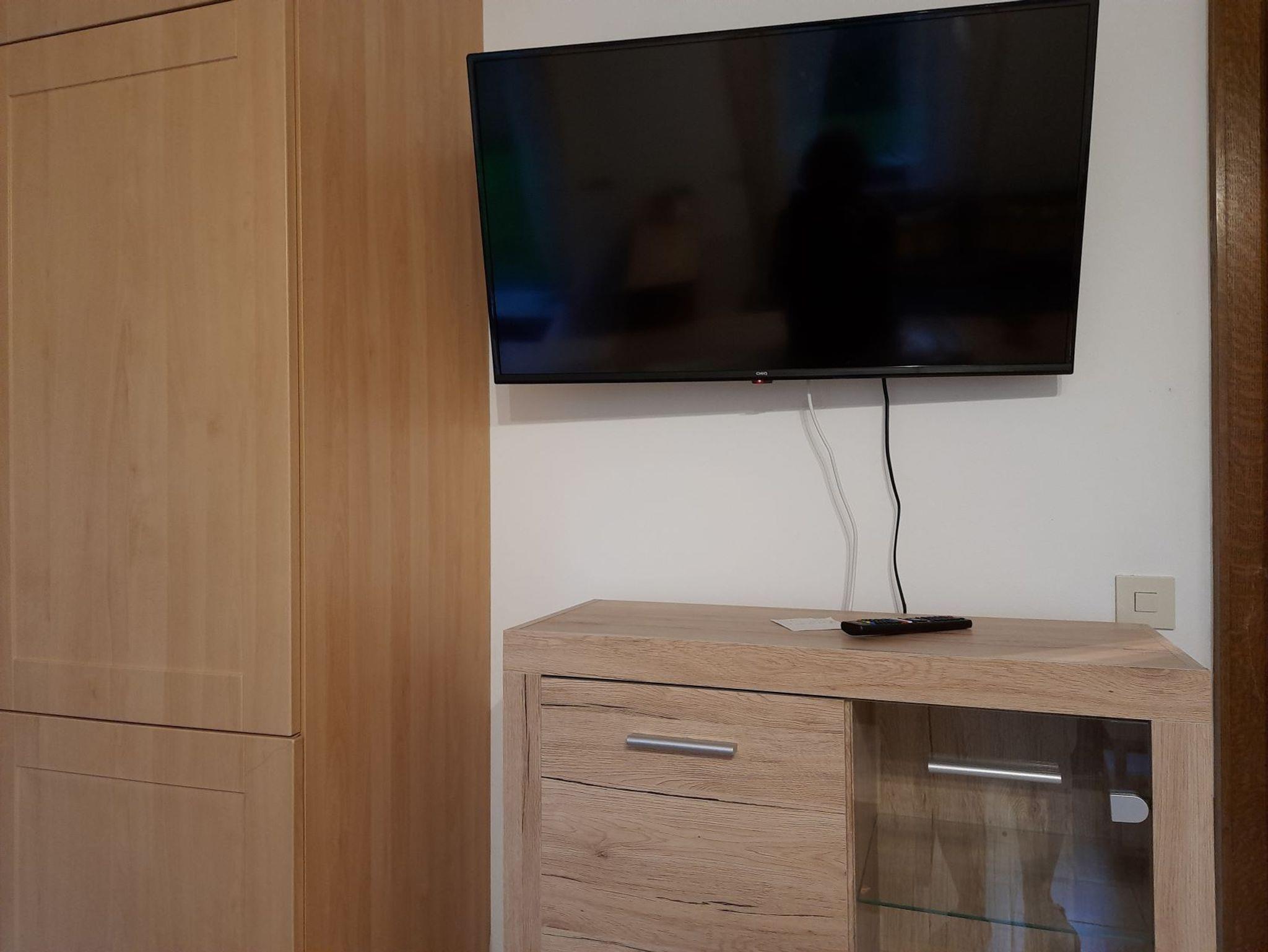 Der Wohnbereich verfügt über eine große Couch (Schlafsofa), Tisch und Board, hat Sat-TV und W-LAN Gastzugang, großer Flachbildschirm.