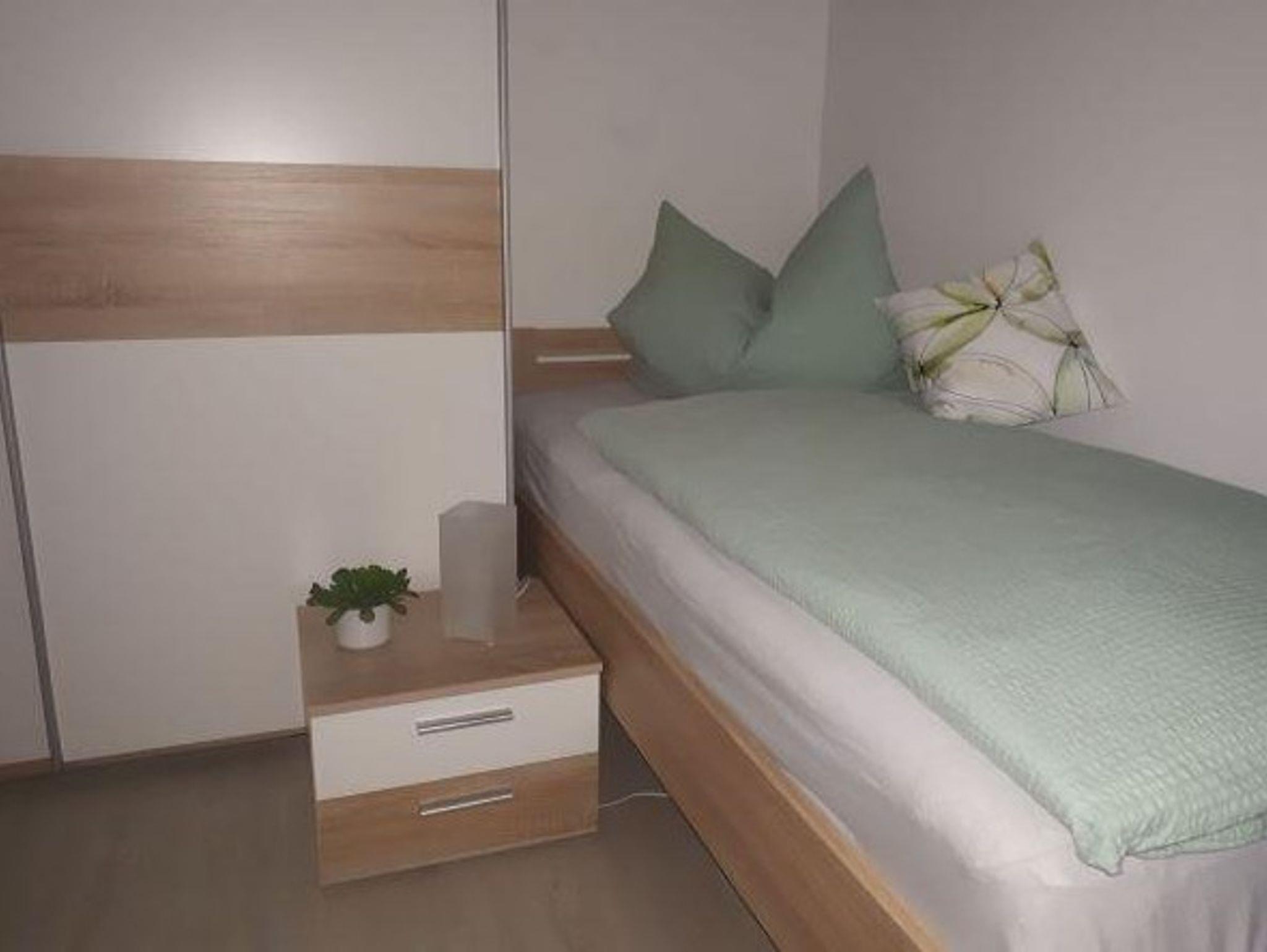 Die FeWo hat ein großes Schlafzimmer mit 1 Doppelbett (können auch 2 Einzelbetten daraus gemacht werden) und zwei Einzelbetten.