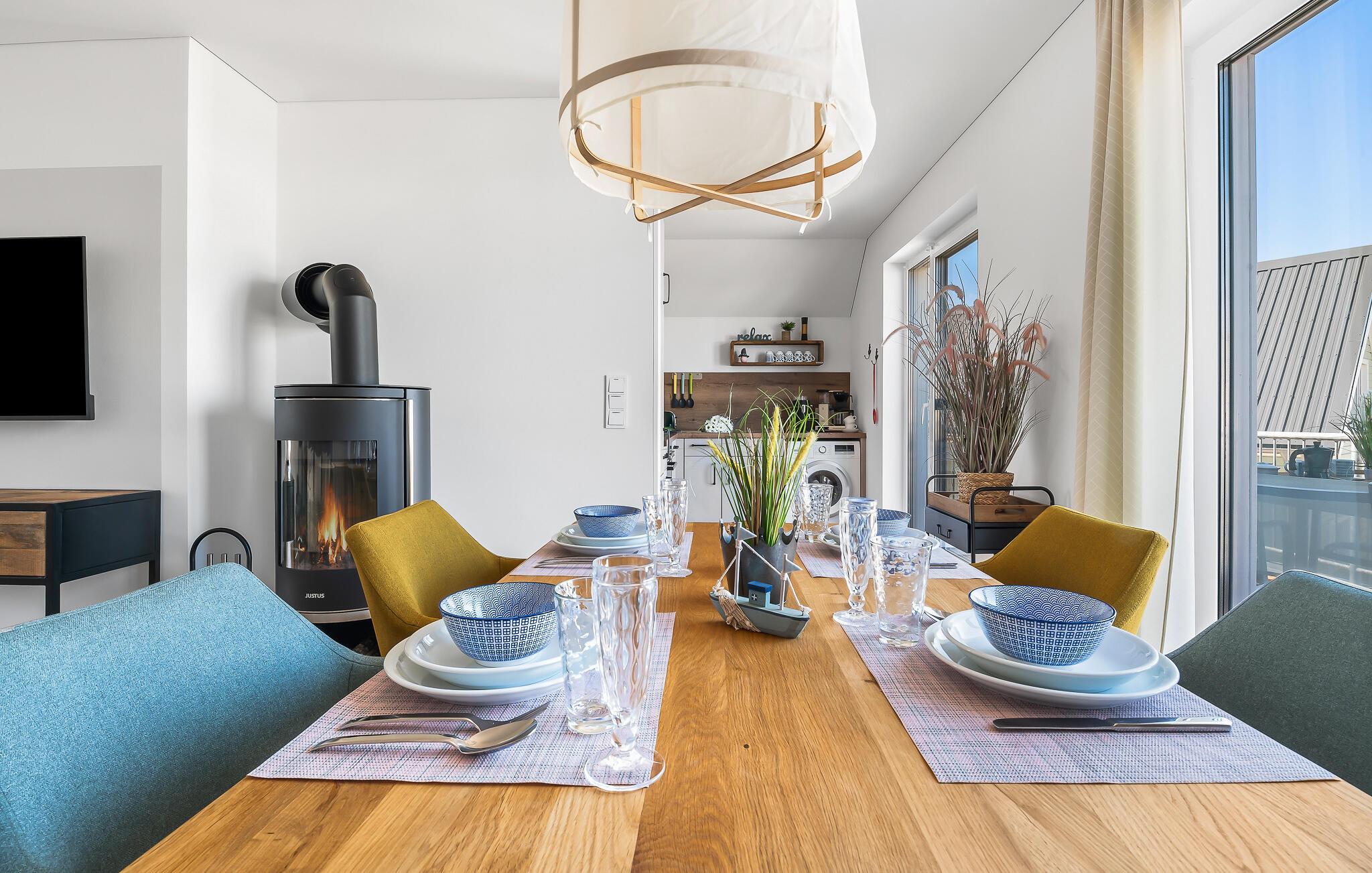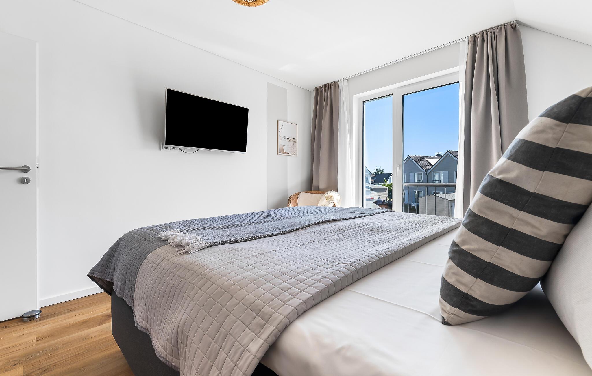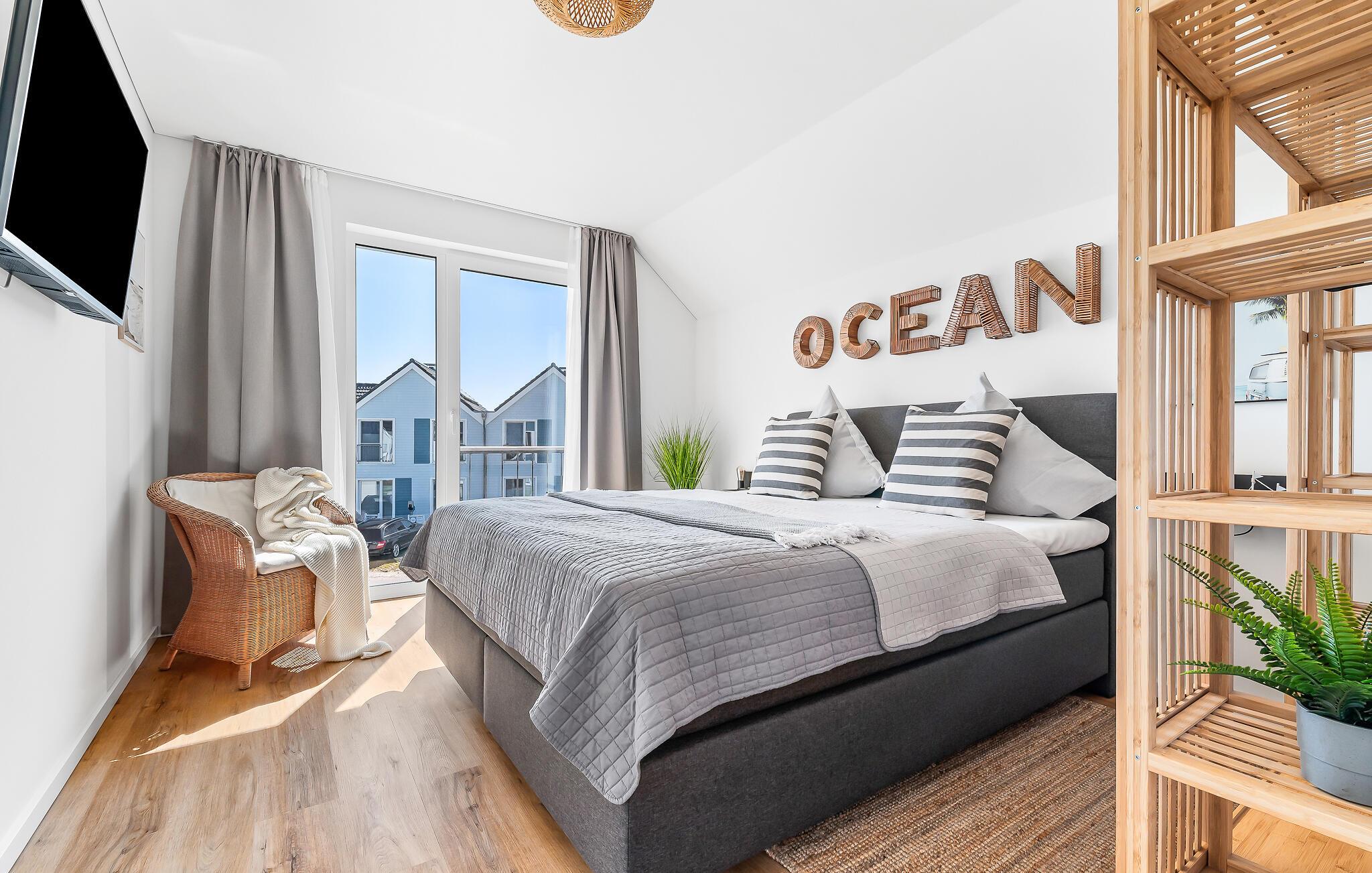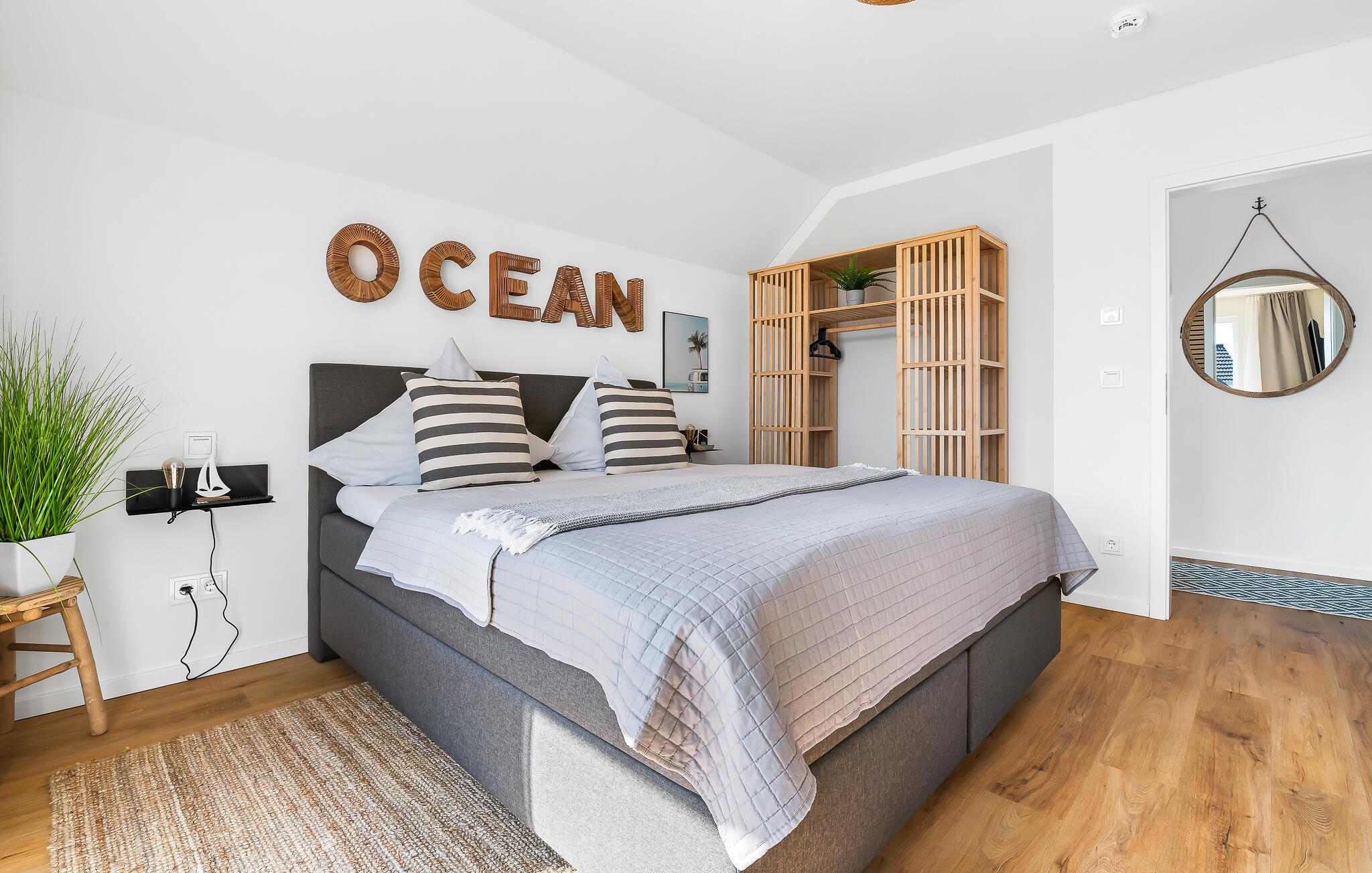 OCEANA rummelig og stilfuld ferielejlighed ved kysten Velkommen til OCEAN, en rummelig og elegant indrettet lejlighed på øverste etage, der byder på det højeste niveau af komfort. Her kan I nyde jeres ferie fuldt ud og tilbringe afslappende timer nær stranden. Placeringen af lejligheden er ideel, Weidefelder sandstrand med kiosk, restaurant og strandstole er let tilgængelig til fods og inviterer jer til et afslappende ophold på ethvert tidspunkt af året. Der er også en malerisk minigolfbane i umiddelbar nærhed, der vil glæde både store og små. Den livlige havnepromenade med et udvalg af indkøbsmuligheder og lystbådehavnen ligger også tæt på OCEAN. Den åbne stue/alrum med gulv-til-loft vinduer og en tilstødende stor terrasse udgør lejlighedens hjerte og imponerer med sin moderne og stilrene indretning. Her kan I slappe af i en behagelig opholdsstue og se tv - et sted for hvile og afslapning! De to soveværelser er hver udstyret med komfortable dobbelte boxmadrasser, der lover en god nattesøvn. I et af soveværelserne finder I også et smart-tv, så I kan afslutte jeres eventyrlige dag komfortabelt. I det fuldt udstyrede, moderne køkken-alrum kan I udvikle jeres madlavningsevner og derefter nyde jeres måltider på terrassen eller have en hyggelig grillaften for den perfekte ferieoplevelse! Terrassen giver jer mulighed for at slappe af udendørs og nyde den friske luft. I har også jeres egen parkeringsplads foran ferielejligheden. Efter en begivenhedsrig dag kan I tage et forfriskende brusebad i brusebadet på gulvniveau og slappe af i den infrarøde sauna, den ideelle afslutning på en vellykket feriedag. Book jeres uforglemmelige ophold på OCEAN nu og oplev den perfekte kombination af luksus, komfort og maritim flair på den betagende kyst! Vores favoritsted Nyd starten på dagen på terrassen i Østersøbrisen og med en kop kaffe i hånden... Bemærk: Sommerhuset er stadig ved at blive færdiggjort. Billeder af huset, indretning og indretning blev visualiseret med venlig støtte fra Helma Ferienimmobilien. Feriehuset adskiller sig i indretningsstil.Bemærk venligst: OstseeResort Olpenitz er meget populært, og der bygges fortsat i parken. Ikke desto mindre kan I se frem til en 5-stjernet standard og et førsteklasses ophold. Byggeaktiviteterne kommer ikke til at forstyrre jer på ferien, og derfor gives der ikke yderligere afslag i prisen.