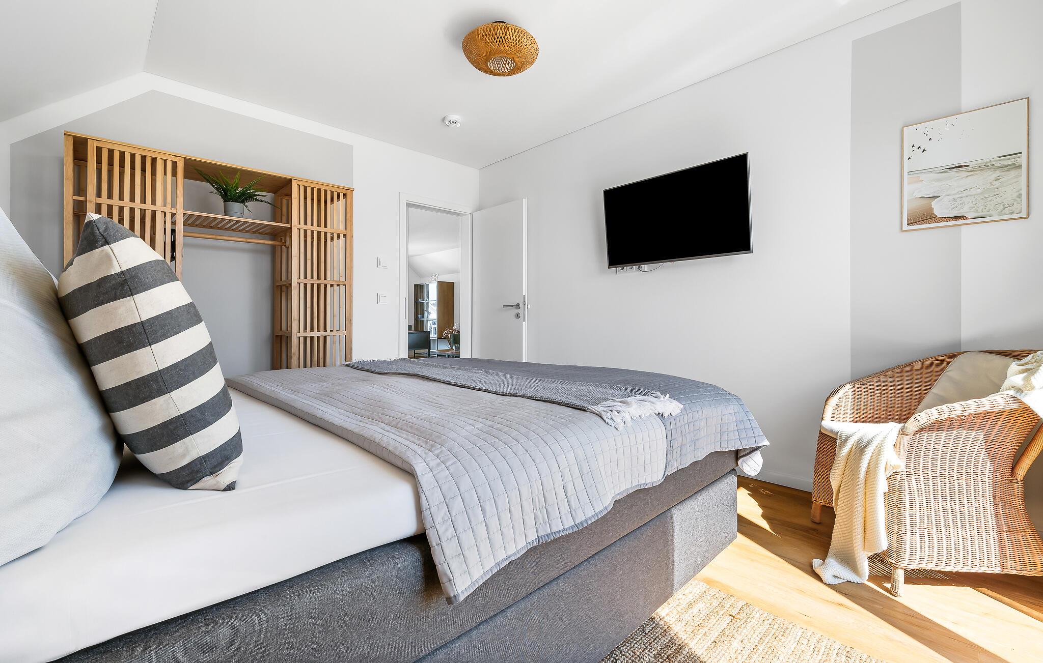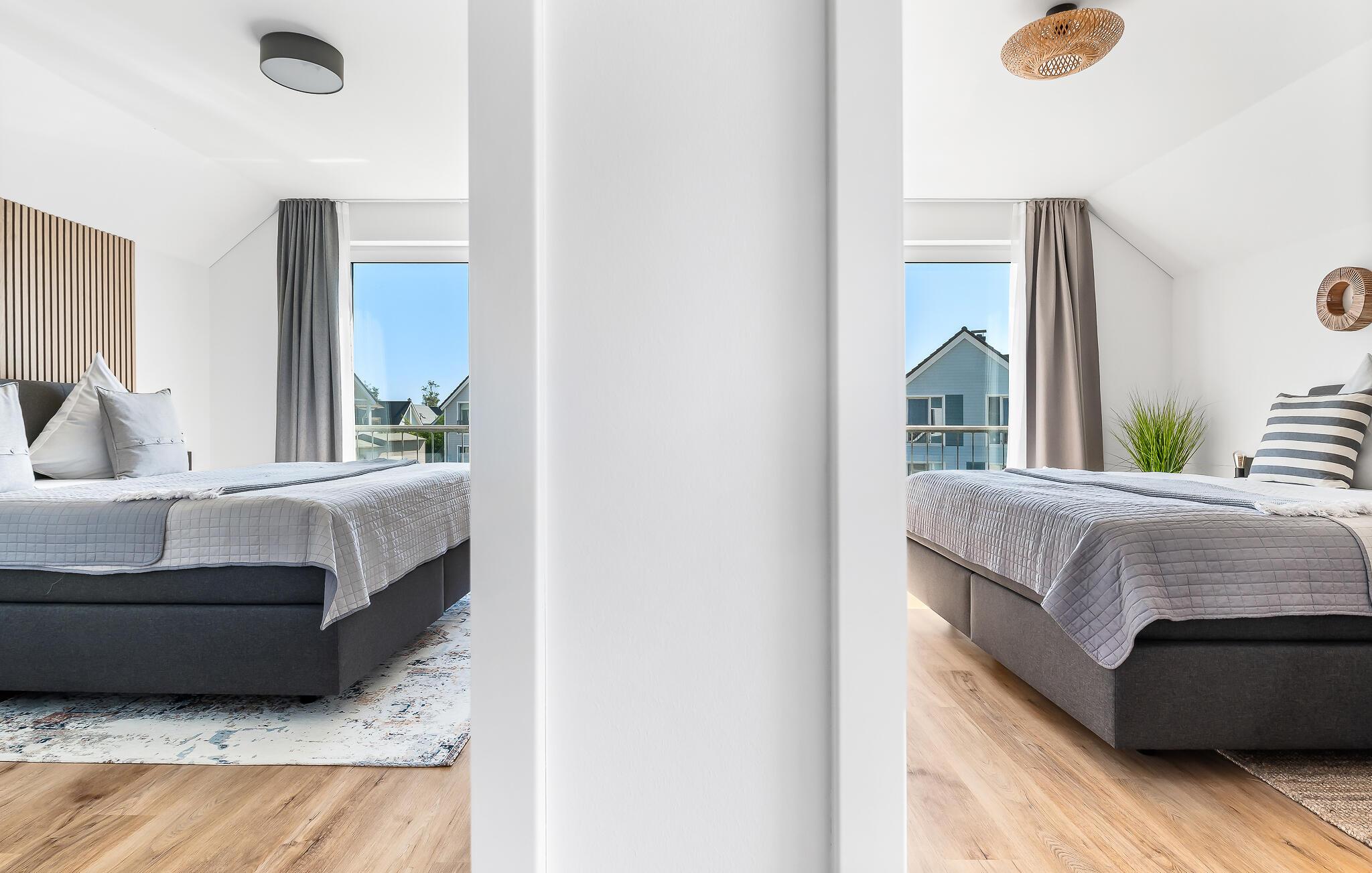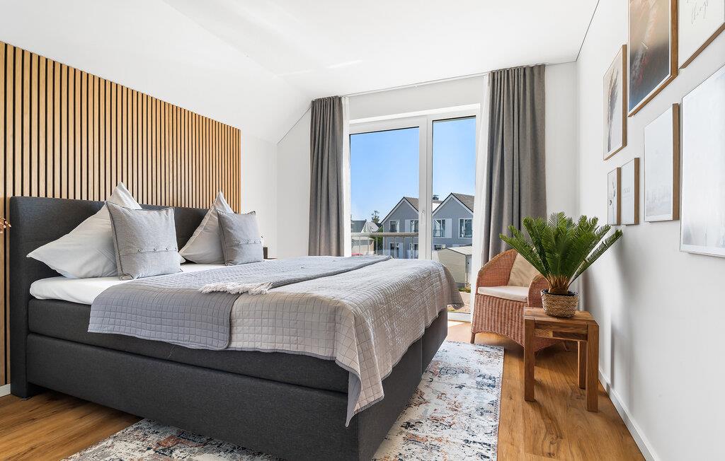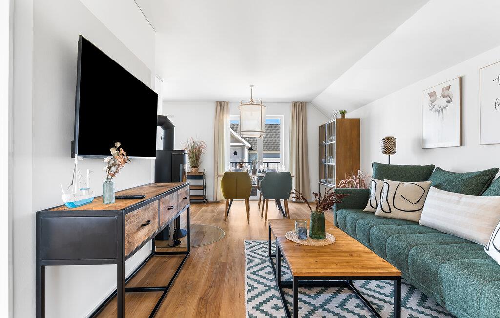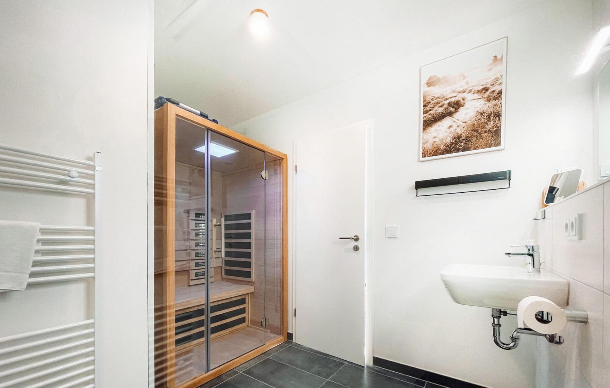 OCEANA rummelig og stilfuld ferielejlighed ved kysten Velkommen til OCEAN, en rummelig og elegant indrettet lejlighed på øverste etage, der byder på det højeste niveau af komfort. Her kan I nyde jeres ferie fuldt ud og tilbringe afslappende timer nær stranden. Placeringen af lejligheden er ideel, Weidefelder sandstrand med kiosk, restaurant og strandstole er let tilgængelig til fods og inviterer jer til et afslappende ophold på ethvert tidspunkt af året. Der er også en malerisk minigolfbane i umiddelbar nærhed, der vil glæde både store og små. Den livlige havnepromenade med et udvalg af indkøbsmuligheder og lystbådehavnen ligger også tæt på OCEAN. Den åbne stue/alrum med gulv-til-loft vinduer og en tilstødende stor terrasse udgør lejlighedens hjerte og imponerer med sin moderne og stilrene indretning. Her kan I slappe af i en behagelig opholdsstue og se tv - et sted for hvile og afslapning! De to soveværelser er hver udstyret med komfortable dobbelte boxmadrasser, der lover en god nattesøvn. I et af soveværelserne finder I også et smart-tv, så I kan afslutte jeres eventyrlige dag komfortabelt. I det fuldt udstyrede, moderne køkken-alrum kan I udvikle jeres madlavningsevner og derefter nyde jeres måltider på terrassen eller have en hyggelig grillaften for den perfekte ferieoplevelse! Terrassen giver jer mulighed for at slappe af udendørs og nyde den friske luft. I har også jeres egen parkeringsplads foran ferielejligheden. Efter en begivenhedsrig dag kan I tage et forfriskende brusebad i brusebadet på gulvniveau og slappe af i den infrarøde sauna, den ideelle afslutning på en vellykket feriedag. Book jeres uforglemmelige ophold på OCEAN nu og oplev den perfekte kombination af luksus, komfort og maritim flair på den betagende kyst! Vores favoritsted Nyd starten på dagen på terrassen i Østersøbrisen og med en kop kaffe i hånden... Bemærk: Sommerhuset er stadig ved at blive færdiggjort. Billeder af huset, indretning og indretning blev visualiseret med venlig støtte fra Helma Ferienimmobilien. Feriehuset adskiller sig i indretningsstil.Bemærk venligst: OstseeResort Olpenitz er meget populært, og der bygges fortsat i parken. Ikke desto mindre kan I se frem til en 5-stjernet standard og et førsteklasses ophold. Byggeaktiviteterne kommer ikke til at forstyrre jer på ferien, og derfor gives der ikke yderligere afslag i prisen.