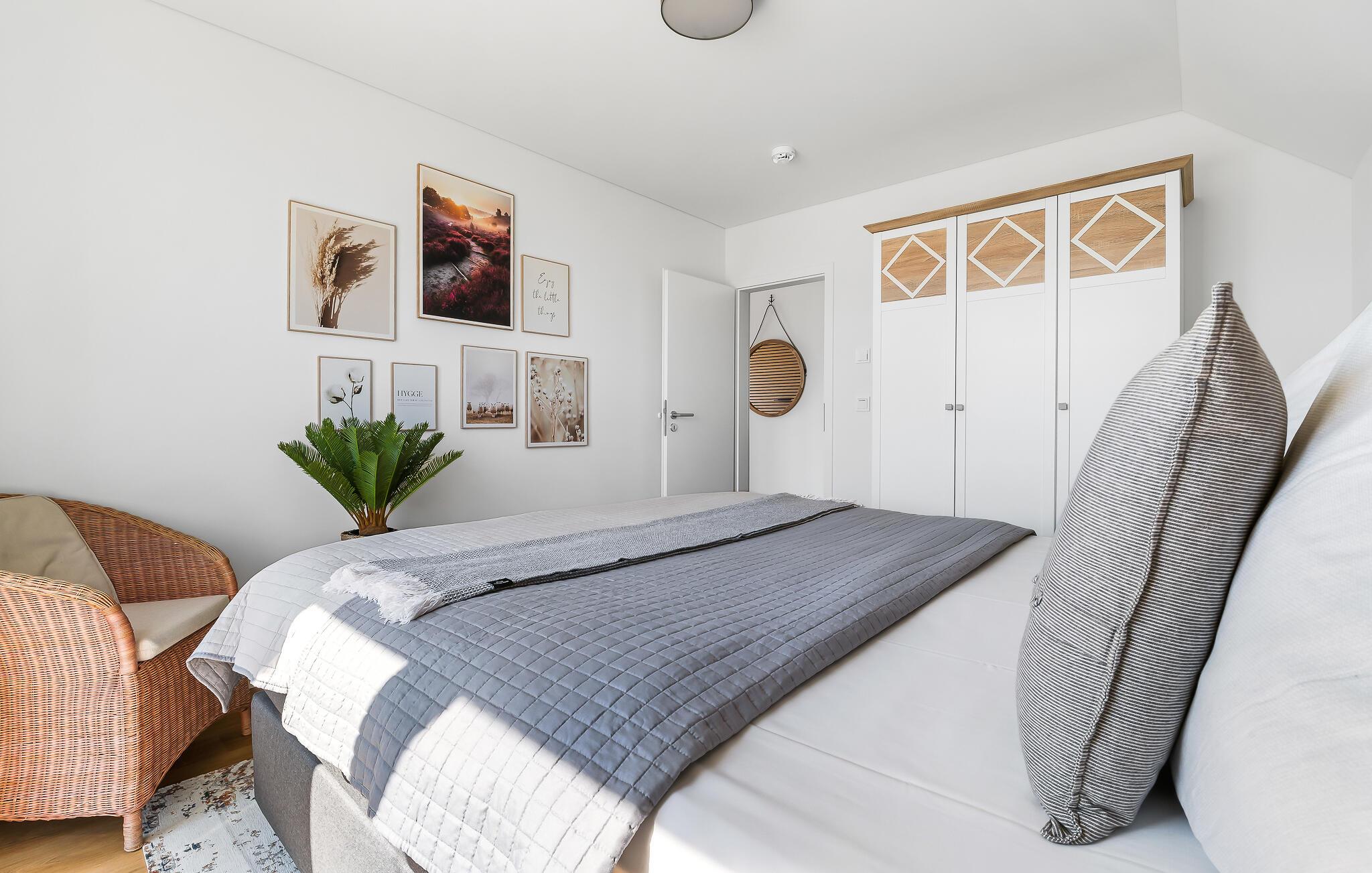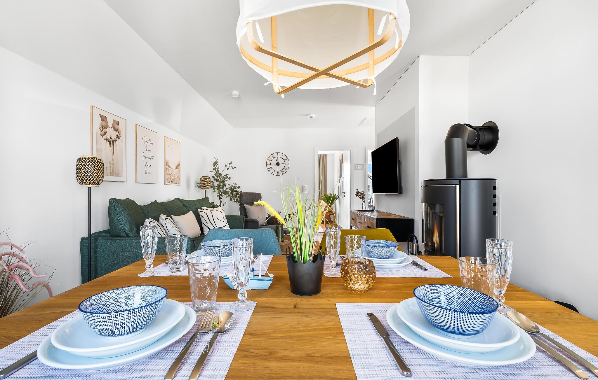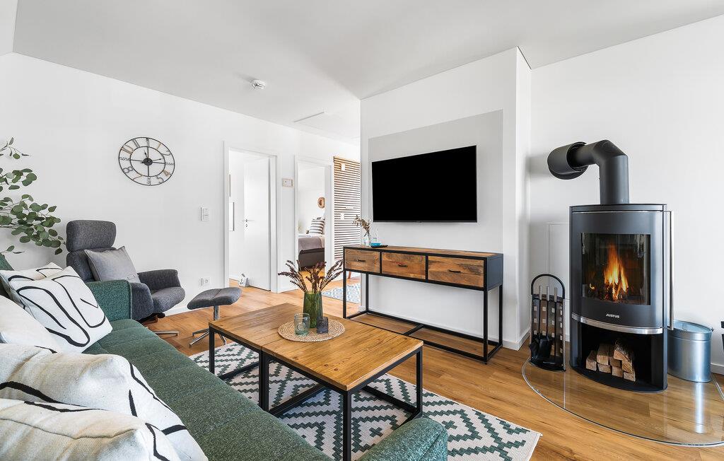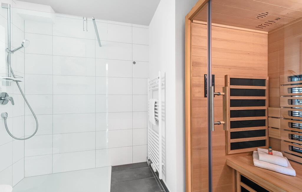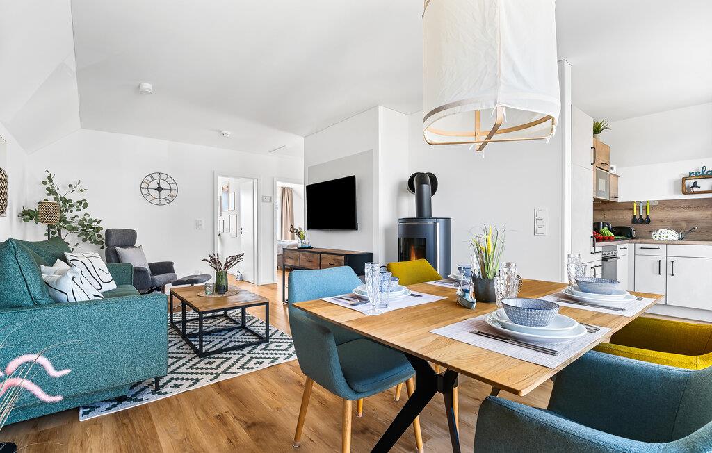OCEANA rummelig og stilfuld ferielejlighed ved kysten Velkommen til OCEAN, en rummelig og elegant indrettet lejlighed på øverste etage, der byder på det højeste niveau af komfort. Her kan I nyde jeres ferie fuldt ud og tilbringe afslappende timer nær stranden. Placeringen af lejligheden er ideel, Weidefelder sandstrand med kiosk, restaurant og strandstole er let tilgængelig til fods og inviterer jer til et afslappende ophold på ethvert tidspunkt af året. Der er også en malerisk minigolfbane i umiddelbar nærhed, der vil glæde både store og små. Den livlige havnepromenade med et udvalg af indkøbsmuligheder og lystbådehavnen ligger også tæt på OCEAN. Den åbne stue/alrum med gulv-til-loft vinduer og en tilstødende stor terrasse udgør lejlighedens hjerte og imponerer med sin moderne og stilrene indretning. Her kan I slappe af i en behagelig opholdsstue og se tv - et sted for hvile og afslapning! De to soveværelser er hver udstyret med komfortable dobbelte boxmadrasser, der lover en god nattesøvn. I et af soveværelserne finder I også et smart-tv, så I kan afslutte jeres eventyrlige dag komfortabelt. I det fuldt udstyrede, moderne køkken-alrum kan I udvikle jeres madlavningsevner og derefter nyde jeres måltider på terrassen eller have en hyggelig grillaften for den perfekte ferieoplevelse! Terrassen giver jer mulighed for at slappe af udendørs og nyde den friske luft. I har også jeres egen parkeringsplads foran ferielejligheden. Efter en begivenhedsrig dag kan I tage et forfriskende brusebad i brusebadet på gulvniveau og slappe af i den infrarøde sauna, den ideelle afslutning på en vellykket feriedag. Book jeres uforglemmelige ophold på OCEAN nu og oplev den perfekte kombination af luksus, komfort og maritim flair på den betagende kyst! Vores favoritsted Nyd starten på dagen på terrassen i Østersøbrisen og med en kop kaffe i hånden... Bemærk: Sommerhuset er stadig ved at blive færdiggjort. Billeder af huset, indretning og indretning blev visualiseret med venlig støtte fra Helma Ferienimmobilien. Feriehuset adskiller sig i indretningsstil.Bemærk venligst: OstseeResort Olpenitz er meget populært, og der bygges fortsat i parken. Ikke desto mindre kan I se frem til en 5-stjernet standard og et førsteklasses ophold. Byggeaktiviteterne kommer ikke til at forstyrre jer på ferien, og derfor gives der ikke yderligere afslag i prisen.