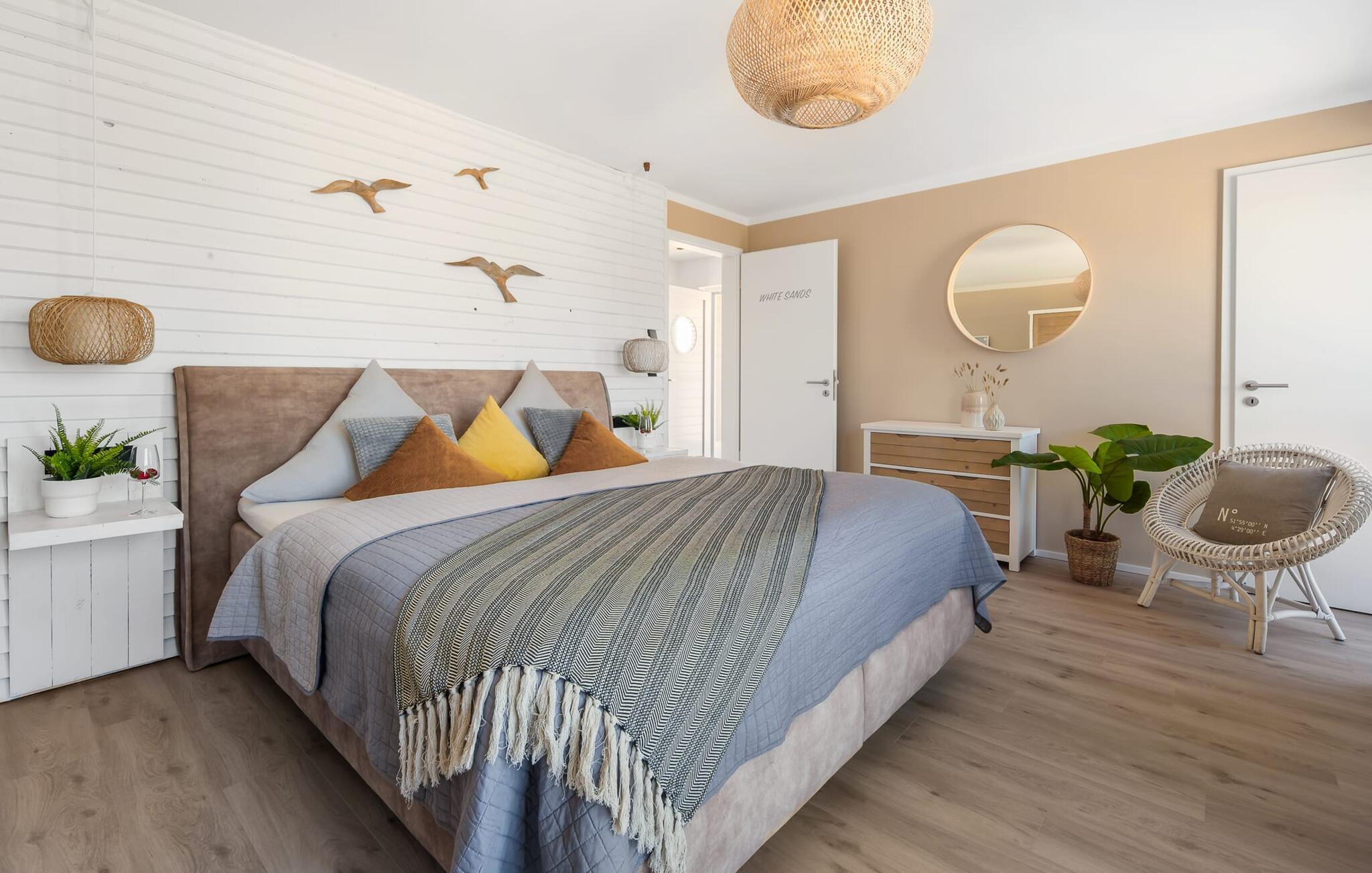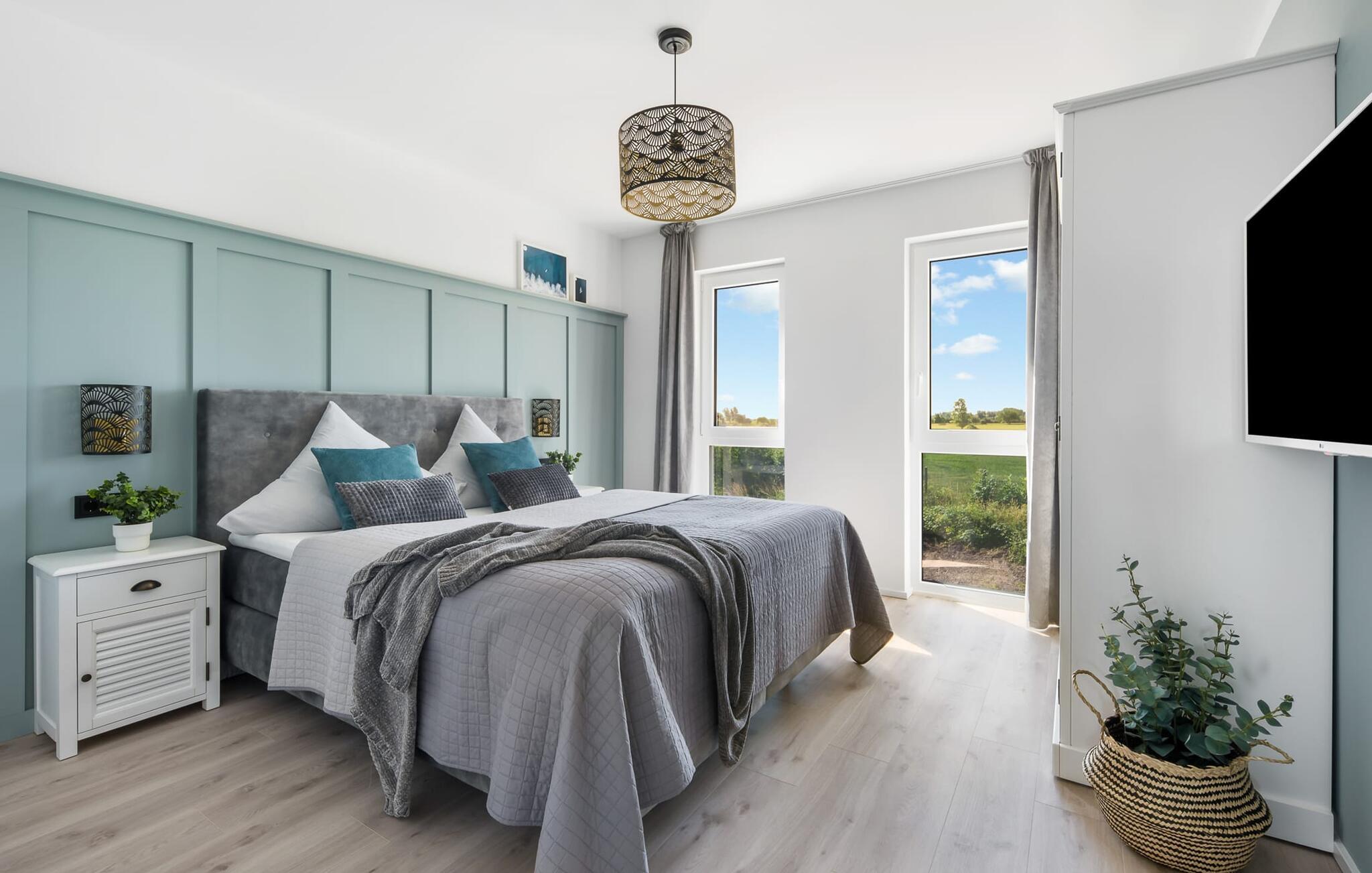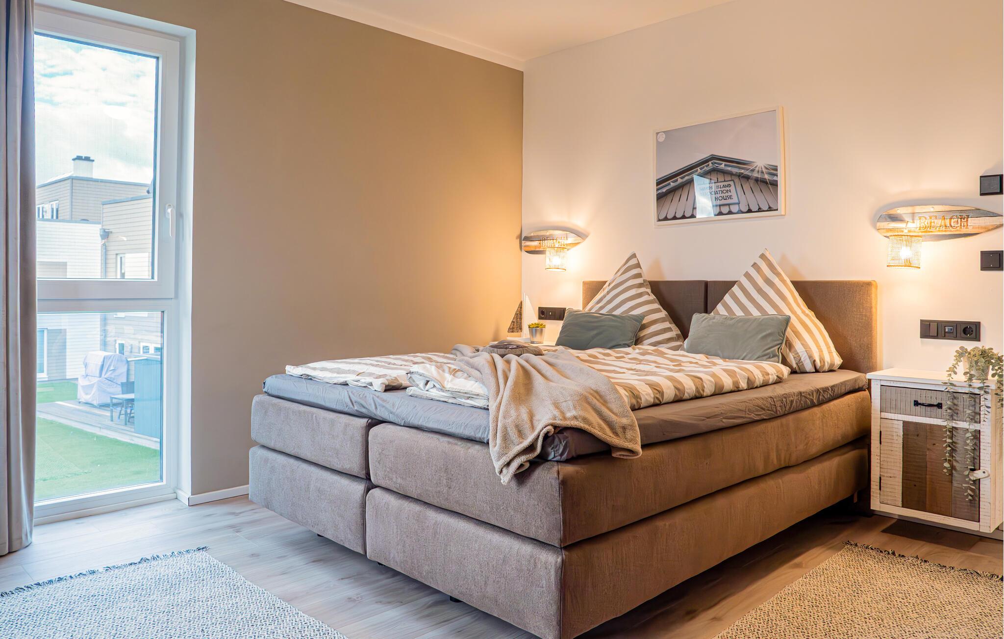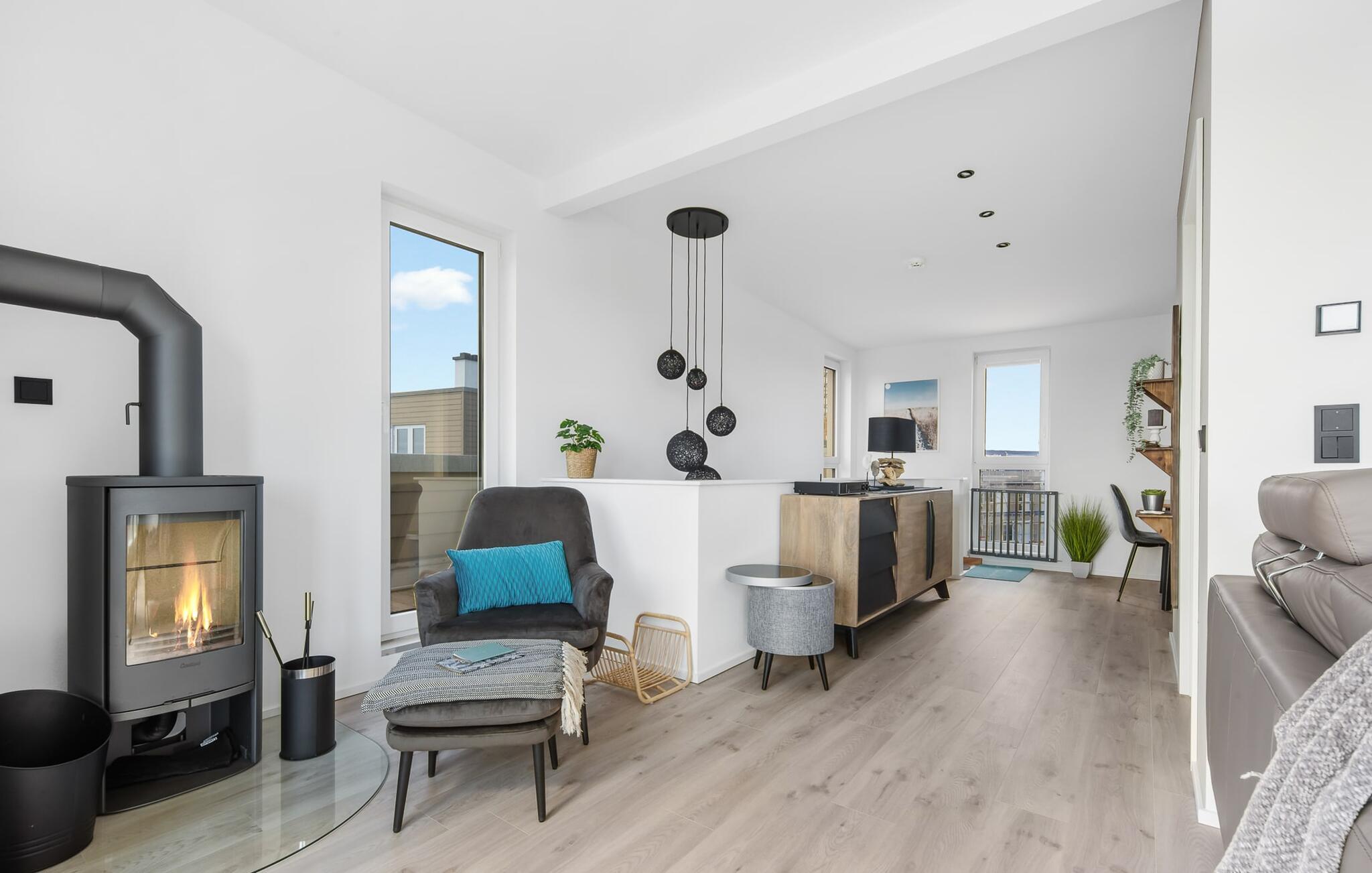 OCEANLOFT er en rummelig og rummelig maisonette ferielejlighed på første og anden sal med direkte udsigt over havet, naturbevarende strandenge og marker. Sandstranden Weidefelder med kiosk, restaurant og strandstole ligger i gåafstand og er et attraktivt rejsemål på alle tider af året. Minigolfbanen med maritimt tema ligger også i umiddelbar nærhed og nydes af både store og små. I er direkte i lejlighedens afslapningsområde. Lejlighedens tre soveværelser er placeret på denne etage. Uanset hvilket soveværelse I vælger, kan I være sikker på en afslappende søvn. To soveværelser er udstyret med dobbeltsenge, et ekstra langt (220 cm) og et fjernsyn hver. Det tredje soveværelse byder jer velkommen med to enkeltsenge. På denne etage er der også et veludstyret badeværelse med bruser i gulvniveau og infrarød sauna. En oase af velvære, der sikrer afslapning i hver sæson. En gang på anden sal lever OCEANLOFT op til sit navn. Her bliver I budt velkommen af vinduesfronten fra gulv til loft med den tilstødende terrasse og udsigt til havet og de naturbevarende strandenge. Kom ind og føl jer straks hjemme. At slappe af i den hyggelige opholdsstue, nyde naturens stilhed ud af vinduet eller tage en sauna er ren afslapning! Hverdagen bliver mere og mere fjern... Skulle vejret nogensinde blive nordisk, vil pejsen med sin brølende ild give yderligere hygge. Det integrerede køkken er perfekt udstyret, og det er sjovt at lave mad sammen. Så nyd de færdige lækkerier på terrassen eller start en hyggelig grillaften... Det er ren ferie. Direkte fra opholdsområdet kommer man ind på den store terrasse med syd-vest orientering. Vender mod bagsiden med udsigt til de naturbevarende strandenge, marker og havet, er hyggelige timer garanteret. Et andet komplet badeværelse med badekar runder ideelt set hele pakken af til en afslappende ferie. Vores favoritsted: en hyggelig grillaften med udsigt over havet, naturbevarende strandenge og markerne... Bemærk venligst: OstseeResort Olpenitz er meget populært, og der bygges fortsat i parken. Ikke desto mindre kan I se frem til en 5-stjernet standard og et førsteklasses ophold. Byggeaktiviteterne kommer ikke til at forstyrre jer på ferien, og derfor gives der ikke yderligere afslag i prisen.
