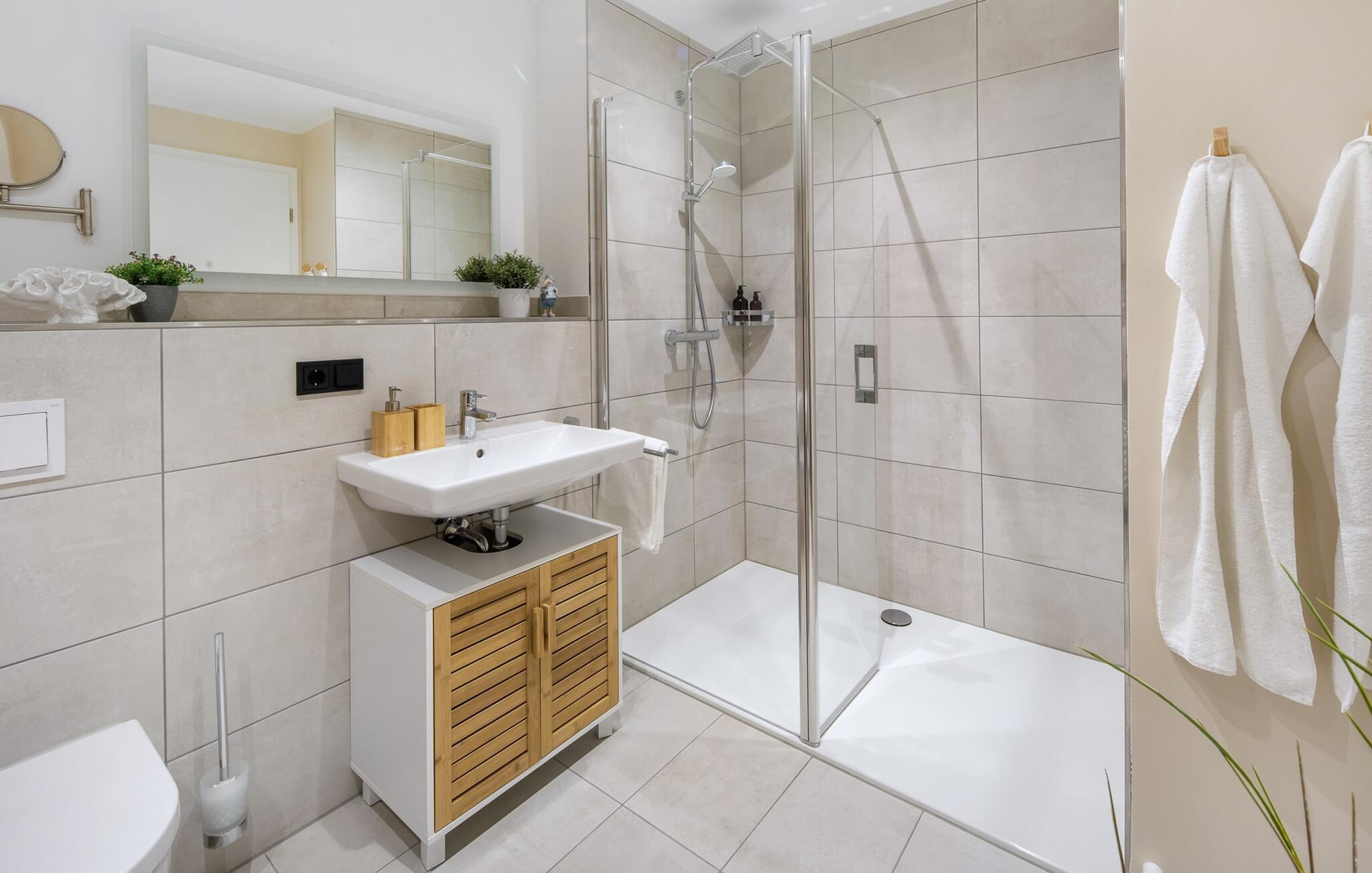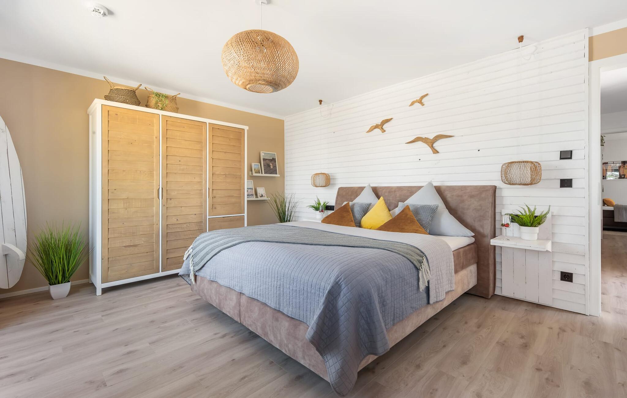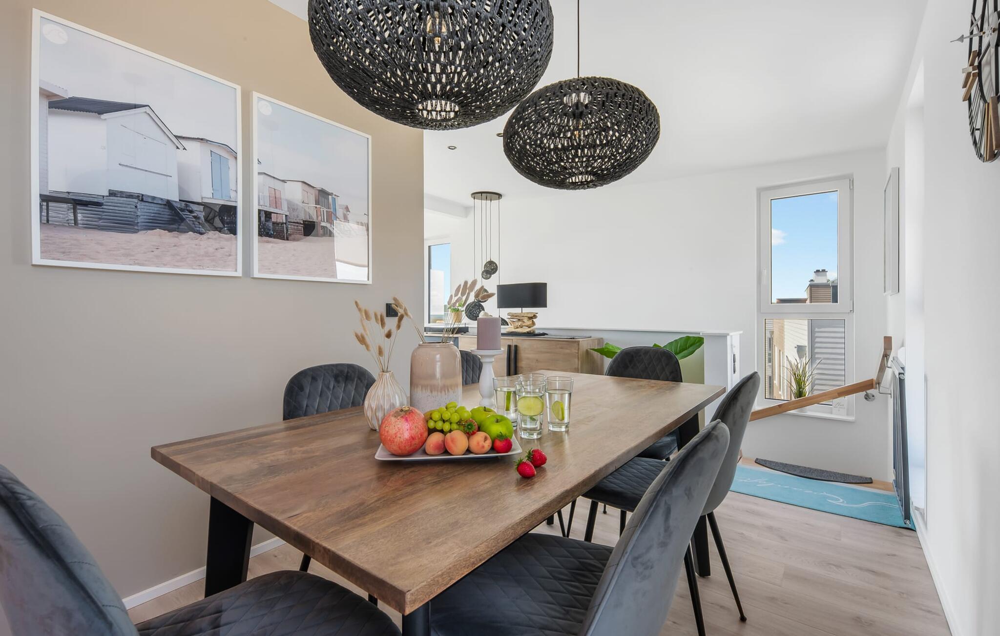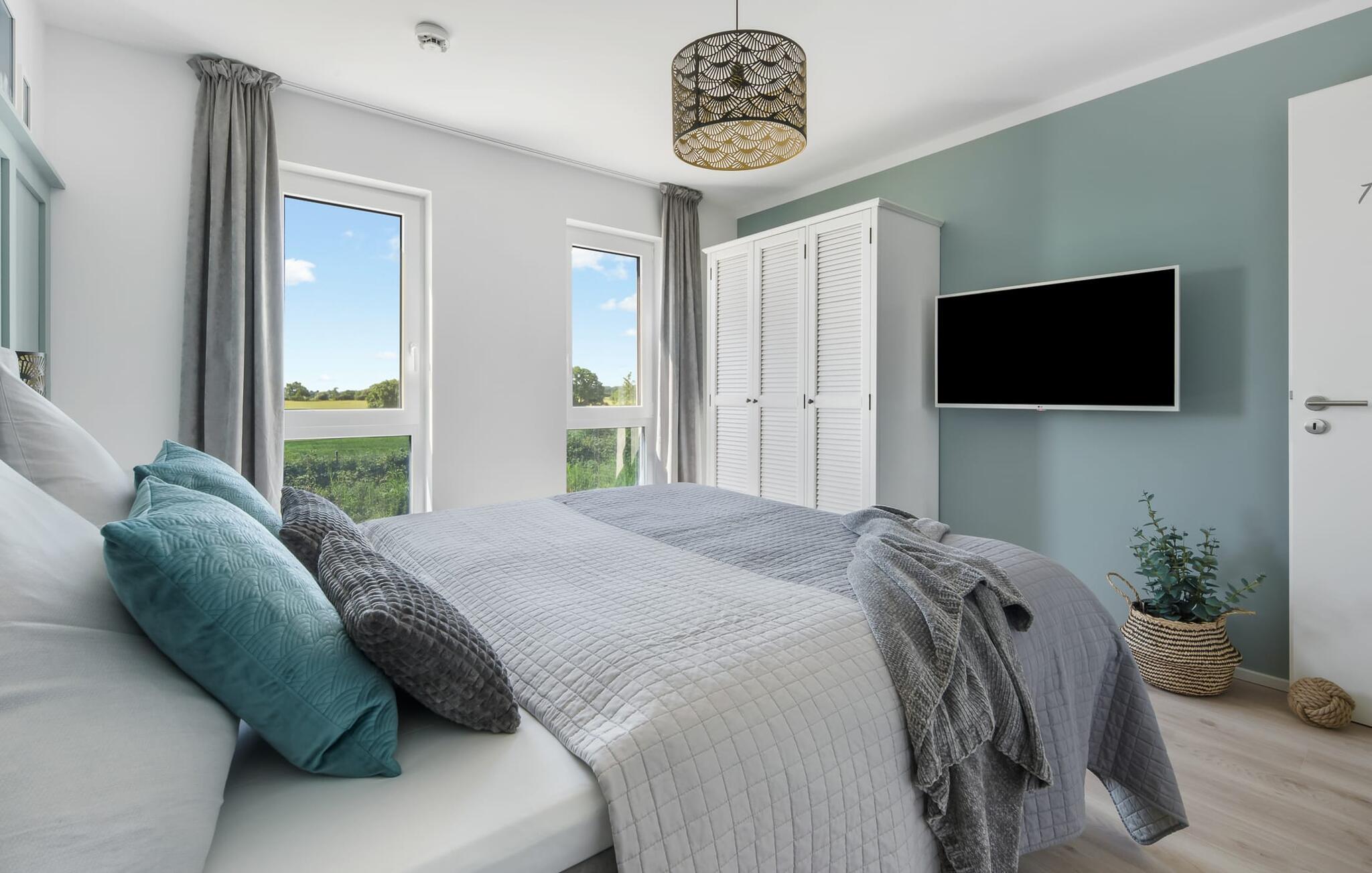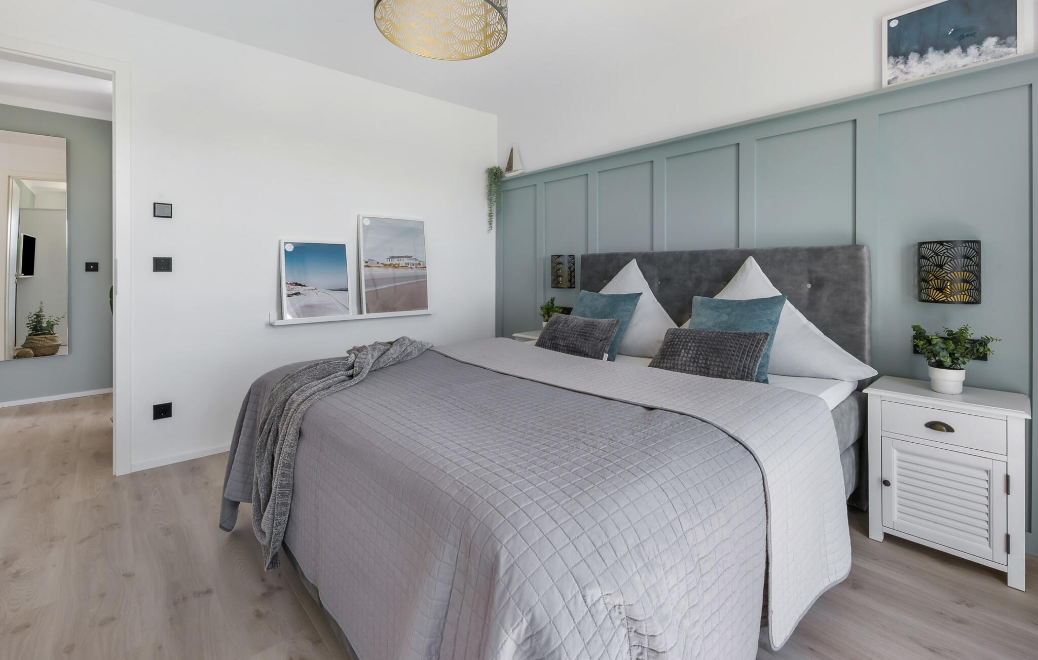 OCEANLOFT er en rummelig og rummelig maisonette ferielejlighed på første og anden sal med direkte udsigt over havet, naturbevarende strandenge og marker. Sandstranden Weidefelder med kiosk, restaurant og strandstole ligger i gåafstand og er et attraktivt rejsemål på alle tider af året. Minigolfbanen med maritimt tema ligger også i umiddelbar nærhed og nydes af både store og små. I er direkte i lejlighedens afslapningsområde. Lejlighedens tre soveværelser er placeret på denne etage. Uanset hvilket soveværelse I vælger, kan I være sikker på en afslappende søvn. To soveværelser er udstyret med dobbeltsenge, et ekstra langt (220 cm) og et fjernsyn hver. Det tredje soveværelse byder jer velkommen med to enkeltsenge. På denne etage er der også et veludstyret badeværelse med bruser i gulvniveau og infrarød sauna. En oase af velvære, der sikrer afslapning i hver sæson. En gang på anden sal lever OCEANLOFT op til sit navn. Her bliver I budt velkommen af vinduesfronten fra gulv til loft med den tilstødende terrasse og udsigt til havet og de naturbevarende strandenge. Kom ind og føl jer straks hjemme. At slappe af i den hyggelige opholdsstue, nyde naturens stilhed ud af vinduet eller tage en sauna er ren afslapning! Hverdagen bliver mere og mere fjern... Skulle vejret nogensinde blive nordisk, vil pejsen med sin brølende ild give yderligere hygge. Det integrerede køkken er perfekt udstyret, og det er sjovt at lave mad sammen. Så nyd de færdige lækkerier på terrassen eller start en hyggelig grillaften... Det er ren ferie. Direkte fra opholdsområdet kommer man ind på den store terrasse med syd-vest orientering. Vender mod bagsiden med udsigt til de naturbevarende strandenge, marker og havet, er hyggelige timer garanteret. Et andet komplet badeværelse med badekar runder ideelt set hele pakken af til en afslappende ferie. Vores favoritsted: en hyggelig grillaften med udsigt over havet, naturbevarende strandenge og markerne... Bemærk venligst: OstseeResort Olpenitz er meget populært, og der bygges fortsat i parken. Ikke desto mindre kan I se frem til en 5-stjernet standard og et førsteklasses ophold. Byggeaktiviteterne kommer ikke til at forstyrre jer på ferien, og derfor gives der ikke yderligere afslag i prisen.