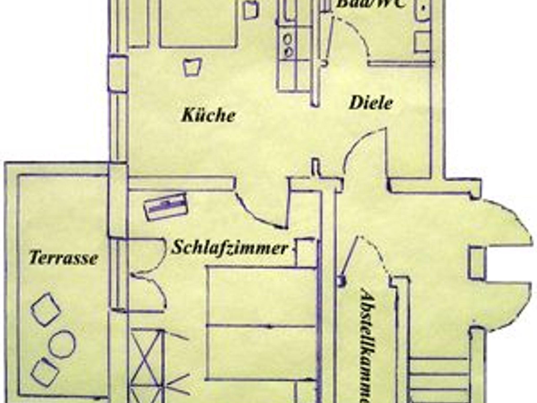 Unsere Ferienwohnung ist 40 m2 groß, für 2 Personen und ist folgendermaßen ausgestattet: