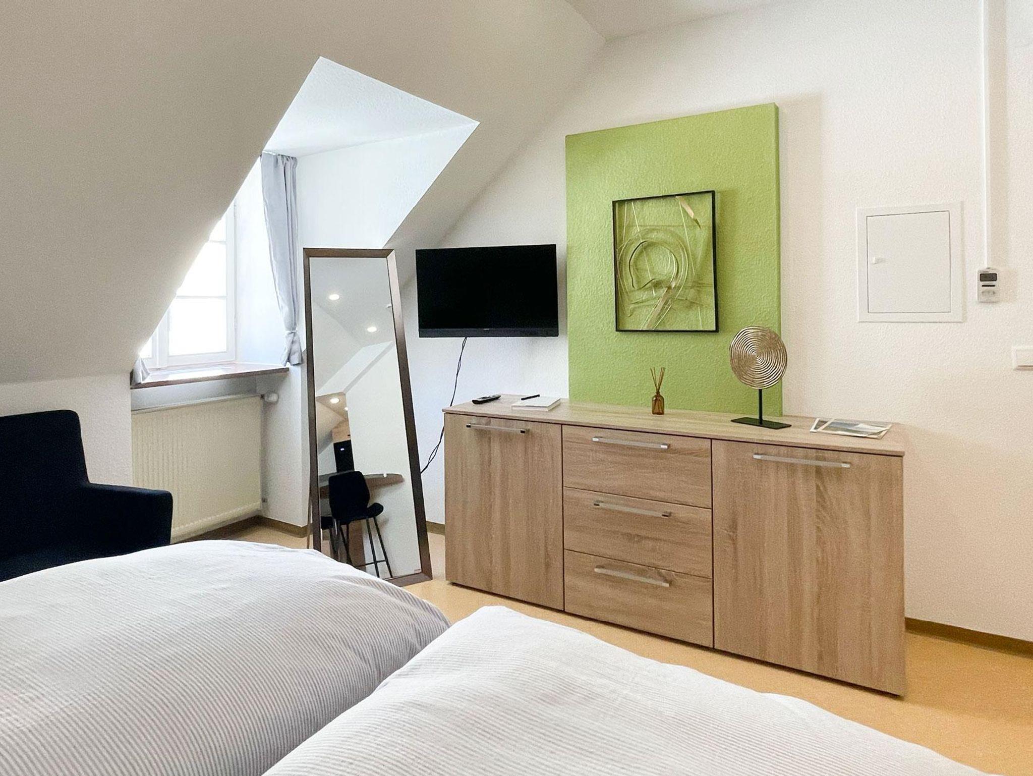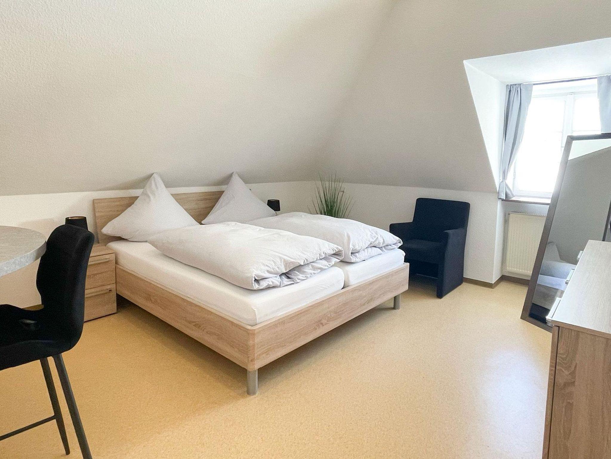 Genießen Sie Ihren Aufenthalt in unserem liebevoll gestalteten 1-Raum-Appartement Goldschätzchen im Dachgeschoss (2. Etage). Offen, hell und freundlich eingerichtet bietet es auf charmante Weise alles, was Sie für eine erholsame Auszeit benötigen. Ideal für 1-2 Personen ausgestattet, verfügt das Appartement über eine komplett eingerichtete Kochecke mit Mikrowelle, Herd, Kühlschrank, Wasserkocher, Kaffeemaschine und Toaster sowie einen Schlafbereich mit Doppelbett. Das moderne Bad ist mit Dusche/WC ausgestattet. Ein perfekter Rückzugsort für alle, die Komfort in entspannter Atmosphäre suchen.