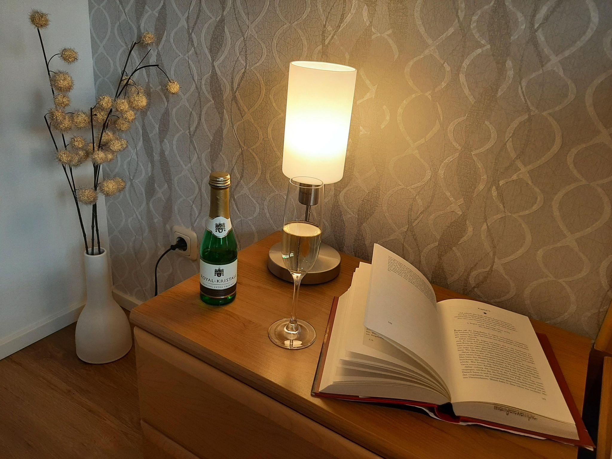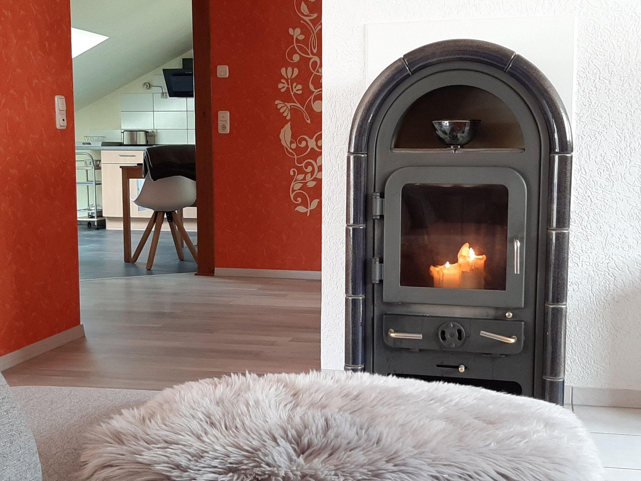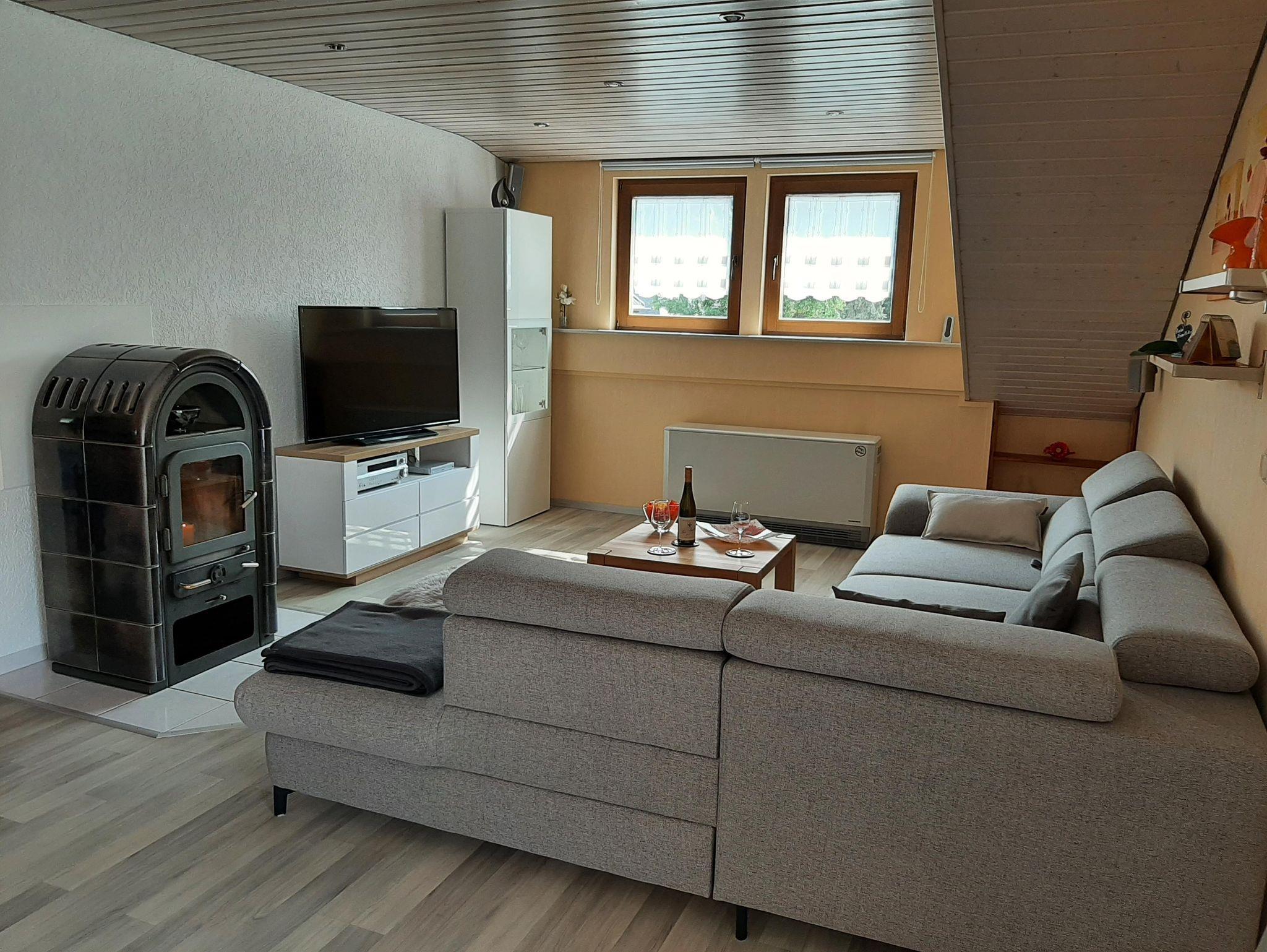 Im Wohnzimmer befinden sich ein SAT-TV, DVD/CD-Player. Für eine behagliche Stimmung sorgen die dimmbare Deckenbeleuchtung und der Kaminofen (darf aufgrund gesetzlicher Bestimmungen nicht mehr in Betrieb genommen werden!) verbreitet aber mit Kerzenlicht eine stimmungsvolle Atmosphäre. Des Weiteren verfügt sie über eine komplett ausgestattete Einbauküche mit Essbereich. Im Schlafzimmer lädt das Doppelbett mit verstellbarem Lattenrost (Kopfteil) und Komforthöhe zum Träumen ein. Auf dem teil überdachten Balkon können sie bei einem Glas Riesling-Wein herrliche Sonnenuntergänge genießen.