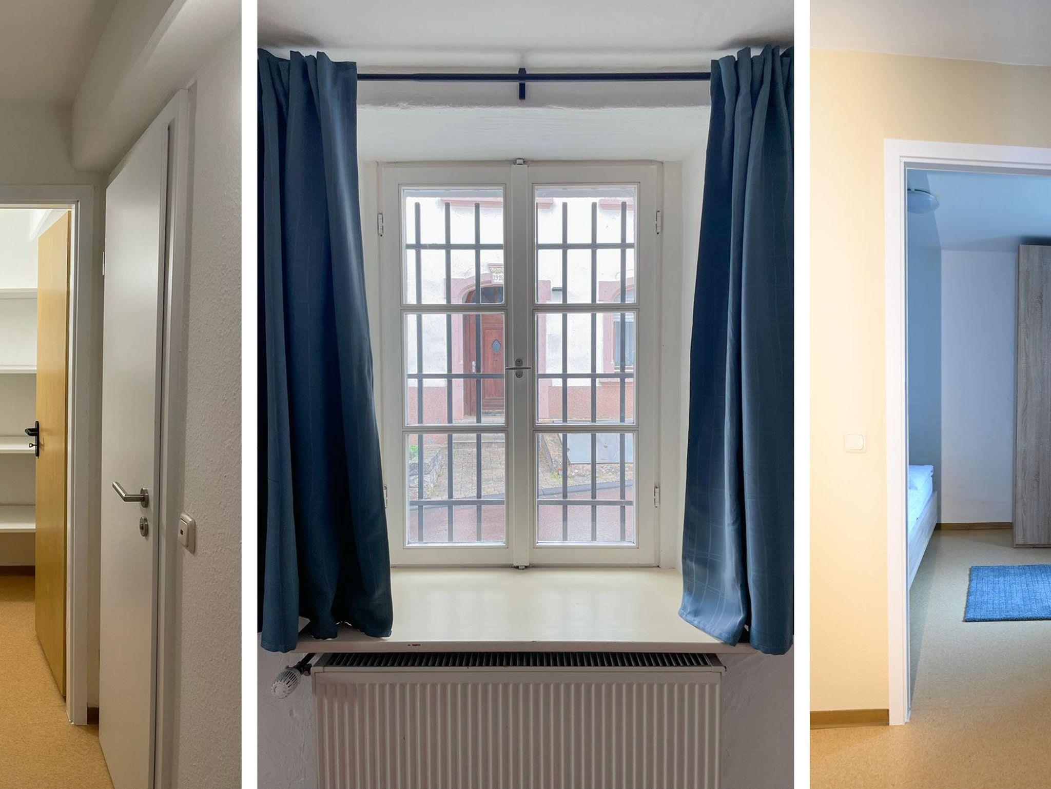 Das Appartement Zelle 13 befindet sich im Erdgeschoss. Auf ca. 36 qm befinden sich 1 Flur mit Abstellkammer, 1 Bad mit WC und Dusche, 1 Wohn-/Esszimmer mit Küche und 1 Schlafzimmer mit Doppelbett.