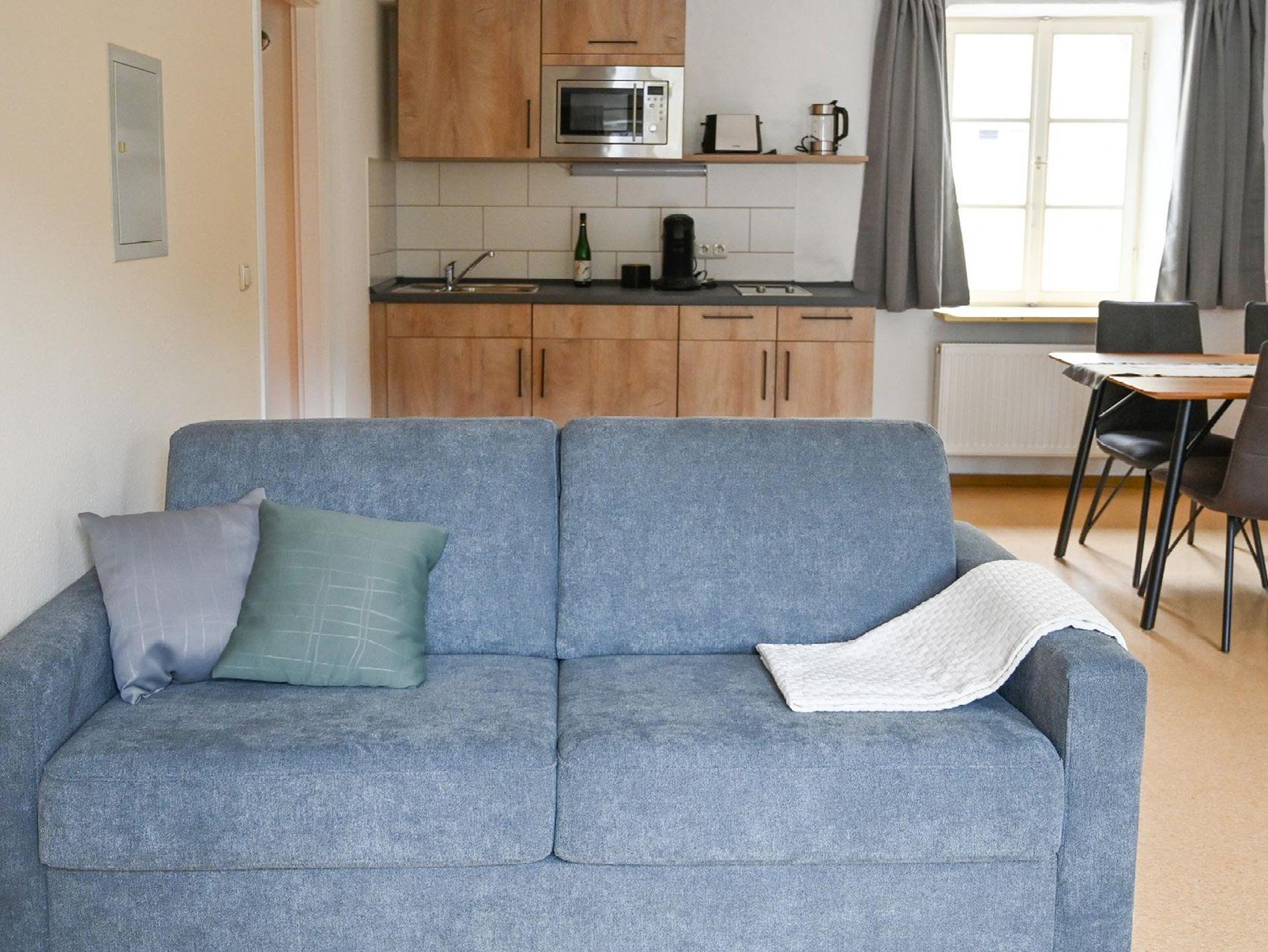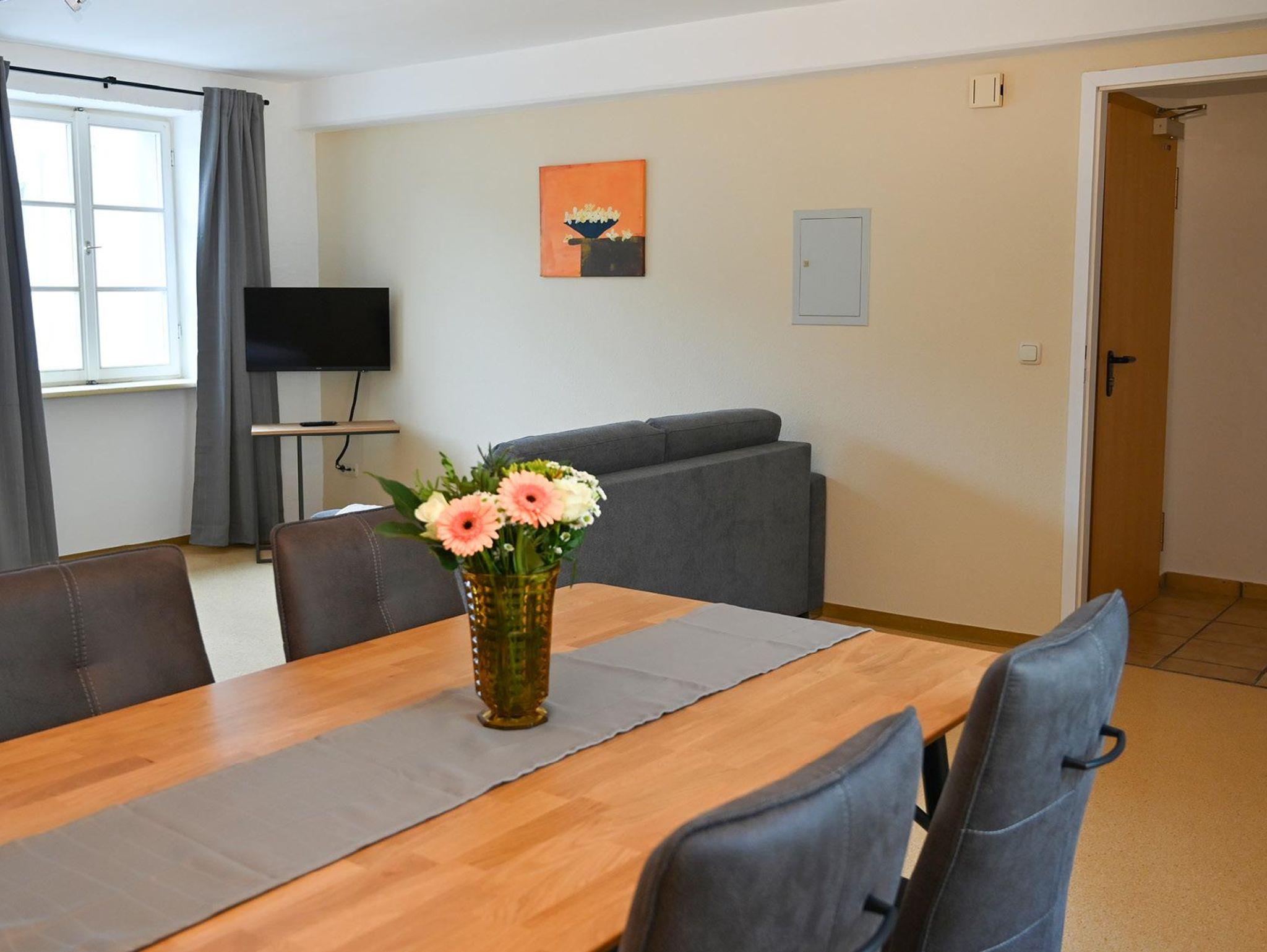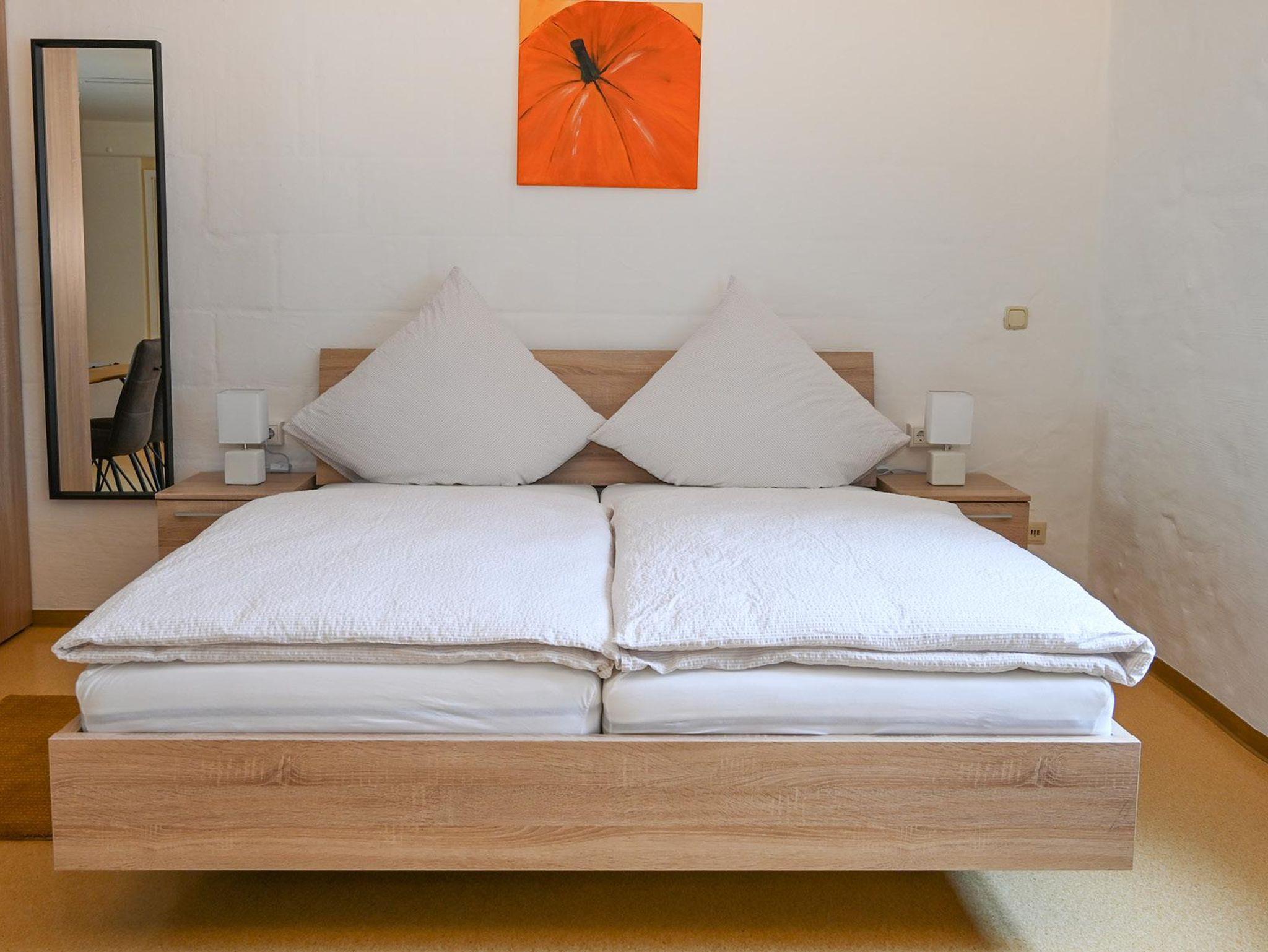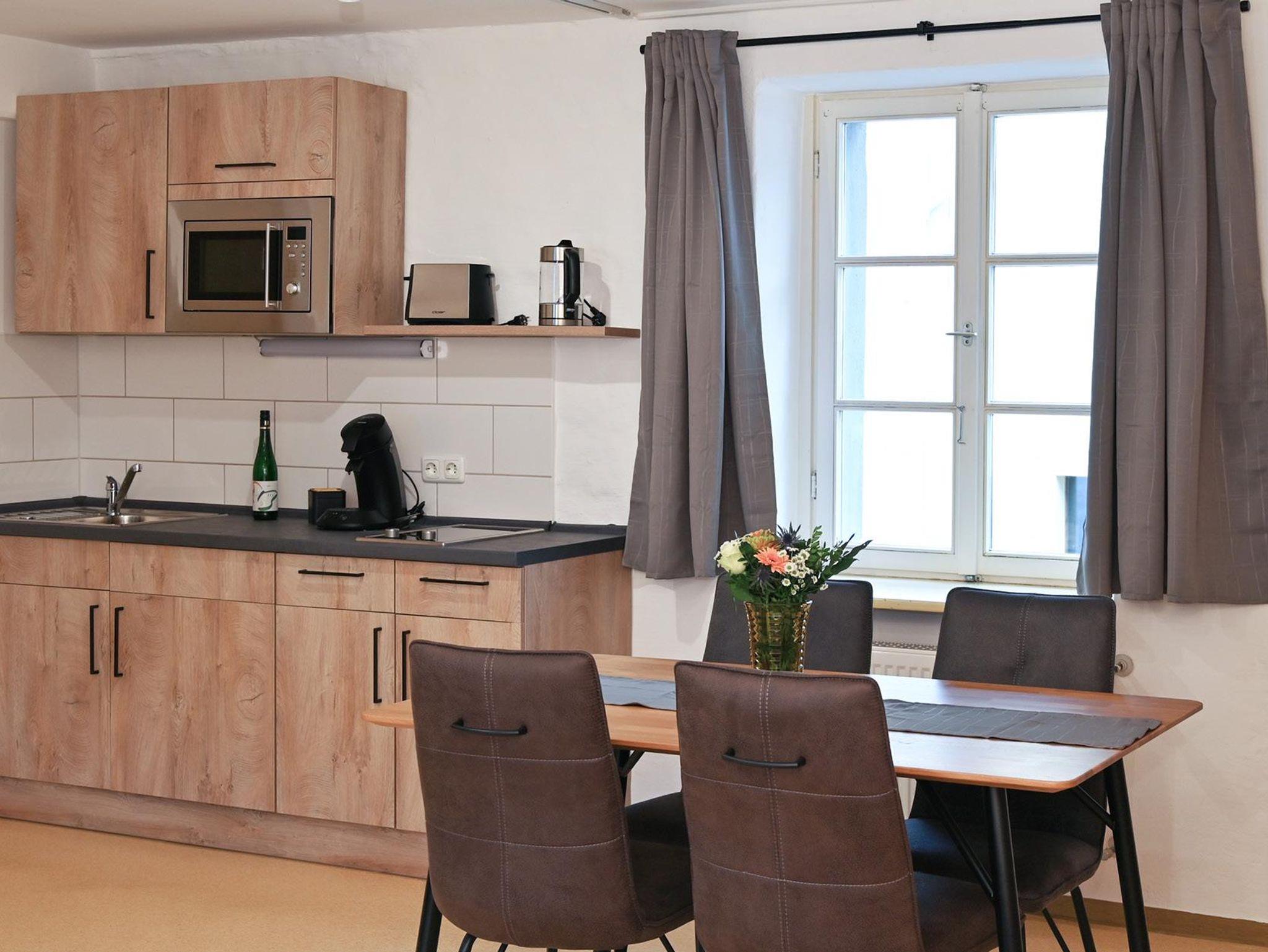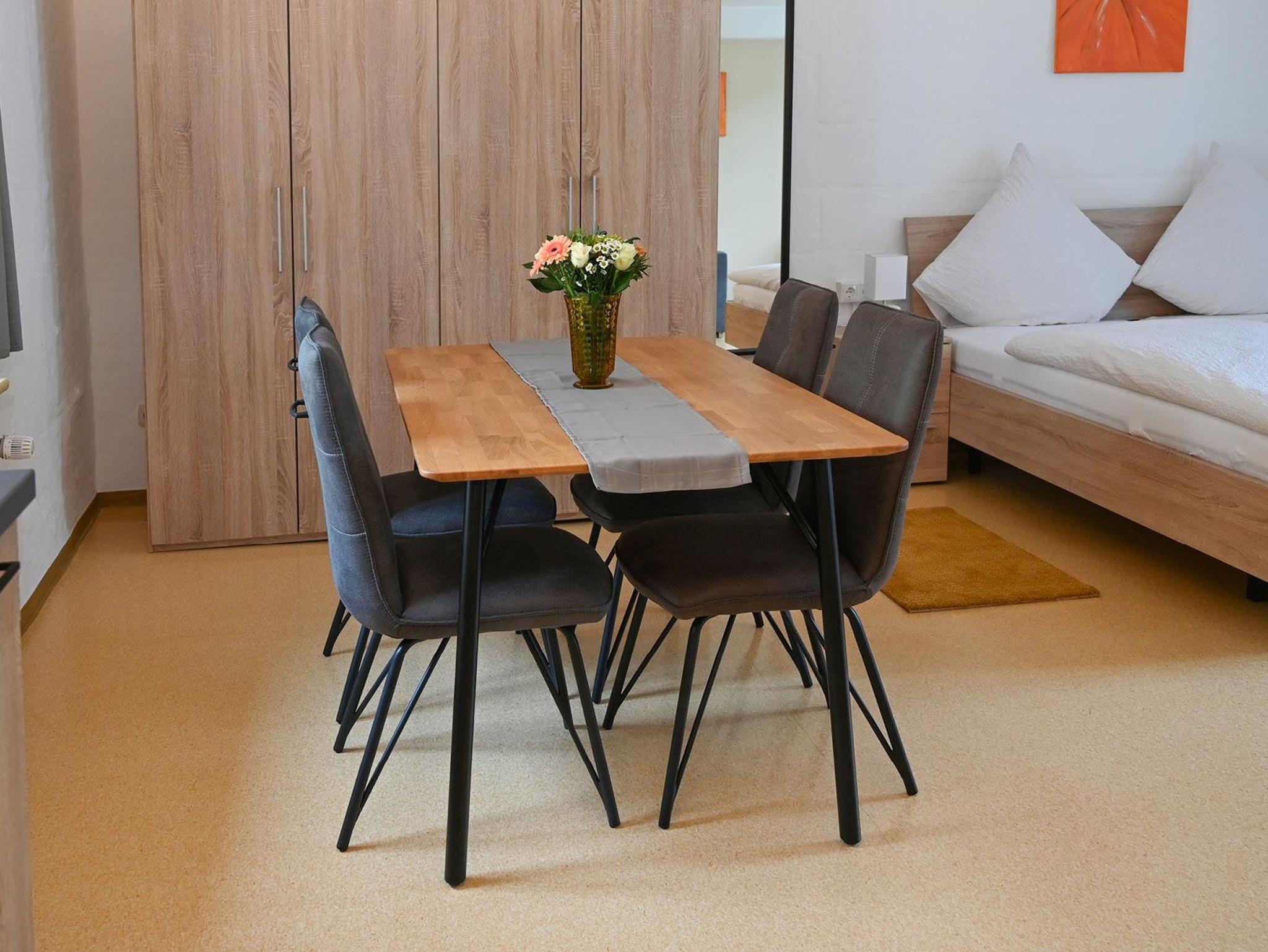 5 Appartements sind bei einer Größe von etwa 37 qm für 2 bis 4 Personen ausgelegt. Jedes Appartement ist mit einem SAT-TV und einer Schlafcouch ausgestattet und verfügt über eine komplett eingerichtete Küche mit Mikrowelle, Herd, Kühlschrank, Wasserkocher, Kaffeemaschine und Toaster. Ein Esstisch mit 4 Stühlen lädt zum gemütlichen Beisammensein ein. Im Schlafbereich finden Sie ein bequemes Doppelbett sowie einen Kleiderschrank. Das moderne Duschbad ist zusätzlich mit einem Föhn ausgestattet. Bitte beachten Sie, dass wir kein Essen oder Frühstück anbieten, da unsere Appartements für Selbstversorger ausgelegt sind.