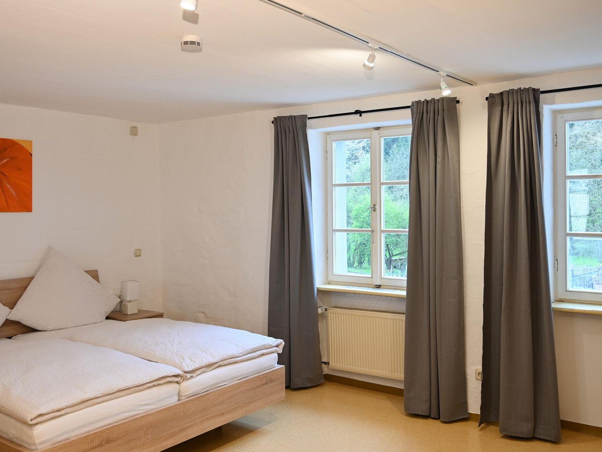 Das Appartement Tanzsaal befindet sich im 1. Obergeschoss. Auf ca. 37 qm befinden sich 1 Flur, 1 Bad mit WC und Dusche und 1 Wohn-/Ess-/Schlafzimmer mit Doppelbett mit Küche.
