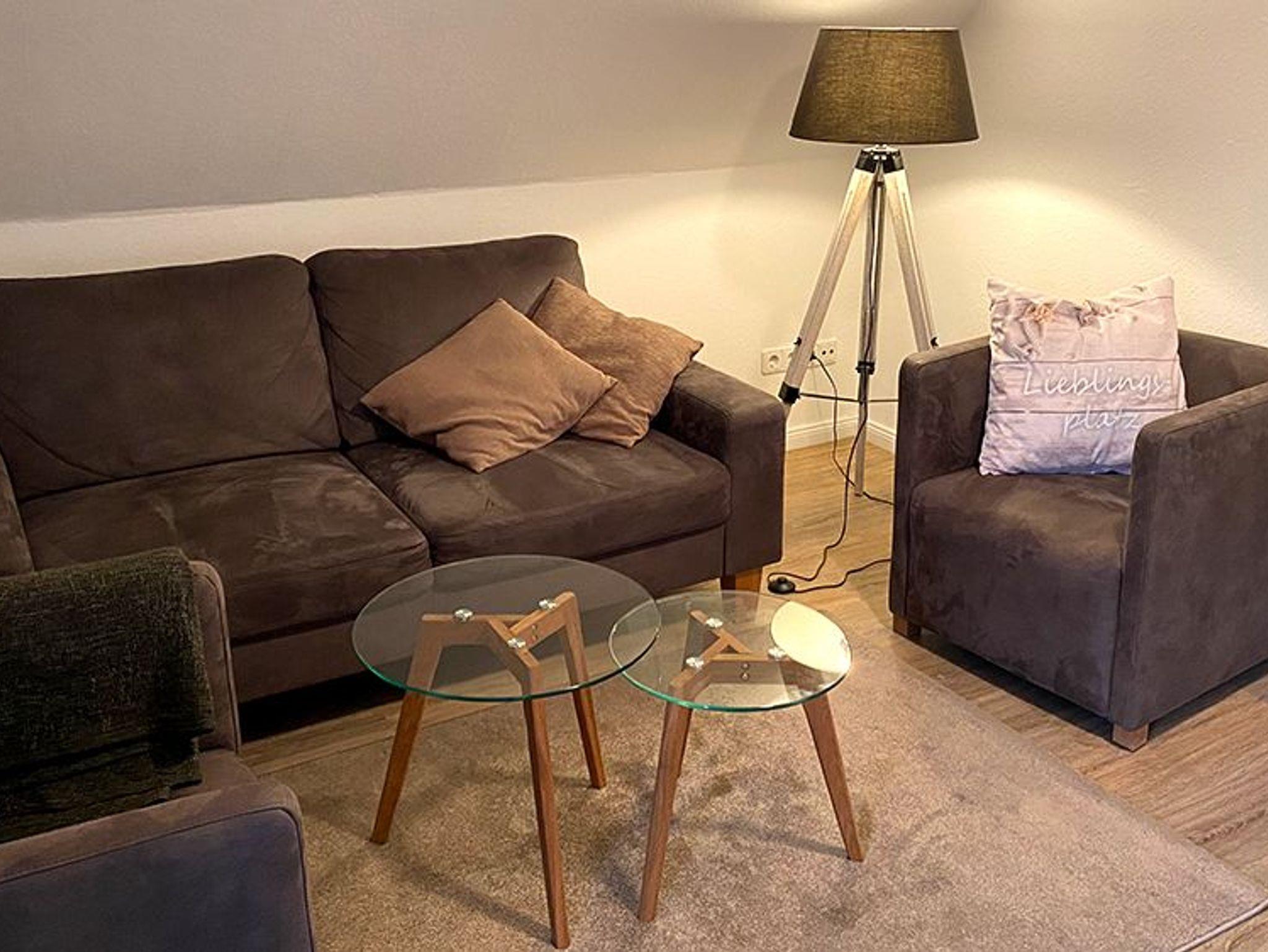 Sie verfügt über 1 Schlafzimmer mit Doppelbett (180 cm x 200 cm), 2 Duschbäder, einem Wohnraum mit Küchenzeile und ein gemütliches Wohnzimmer mit Smart TV. (Im Schlafzimmer ist ausreichend Platz für ein privates Reise-Babybett. ) Die Küche ist ausreichend mit Geschirr und Küchengeräten ausgestattet. Zur Kaffeezubereitung steht Ihnen eine Kaffee Filtermaschine und eine Senseo-Pad Maschine zur Verfügung.