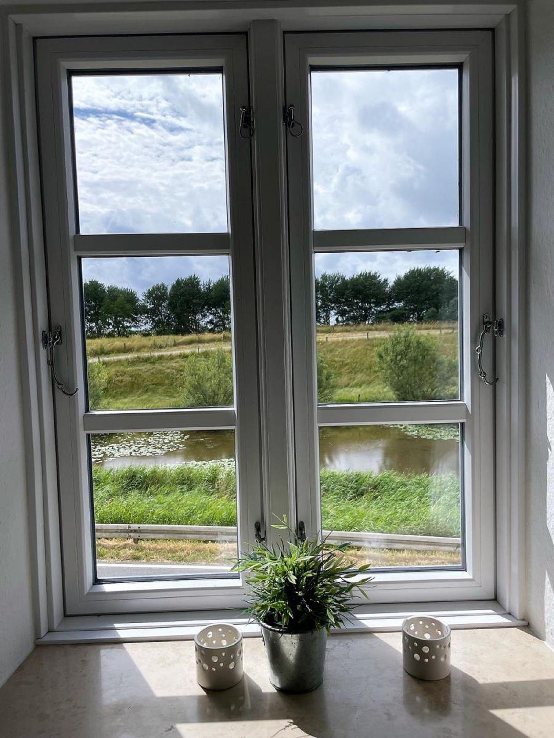 Insgesamt beherbergt das große Reetdachhaus fünf Ferienwohnungen und ist umrahmt von einem See und dem Bongsieler Kanal - ideal zum Angeln und SUPen!