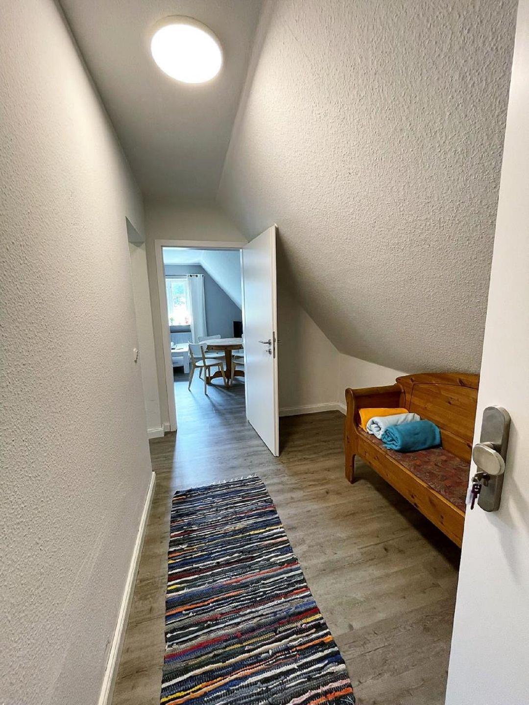 Diese gemütliche Ferienwohnung liegt im ersten Stock und umfasst insgesamt drei Zimmer, darunter zwei separate Schlafzimmer, die eine angenehme Atmosphäre für erholsame Nächte schaffen, eines mit einem 1,80m breiten Doppelbett, das andere 1,40m. Das Wohnzimmer ist mit einer Sofaecke mit Schlafcouch für maximal 2 Personen ausgestattet und bietet einen geselligen Essbereich, der es Ihnen ermöglicht, gemeinsame Mahlzeiten zu genießen. Angrenzend finden Sie eine offene, gut ausgestattete Küche, die mit modernen Geräten wie einem Ceran-Herd, einem Backofen, einer Kaffeemaschine, einem Wasserkocher, einem Toaster und Küchengeräten ausgestattet ist, um Ihren kulinarischen Bedürfnissen gerecht zu werden.