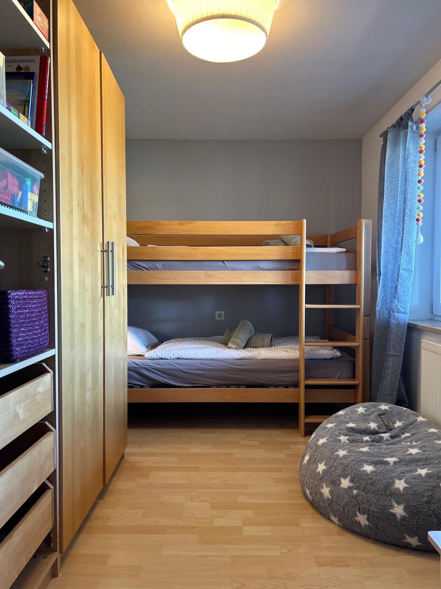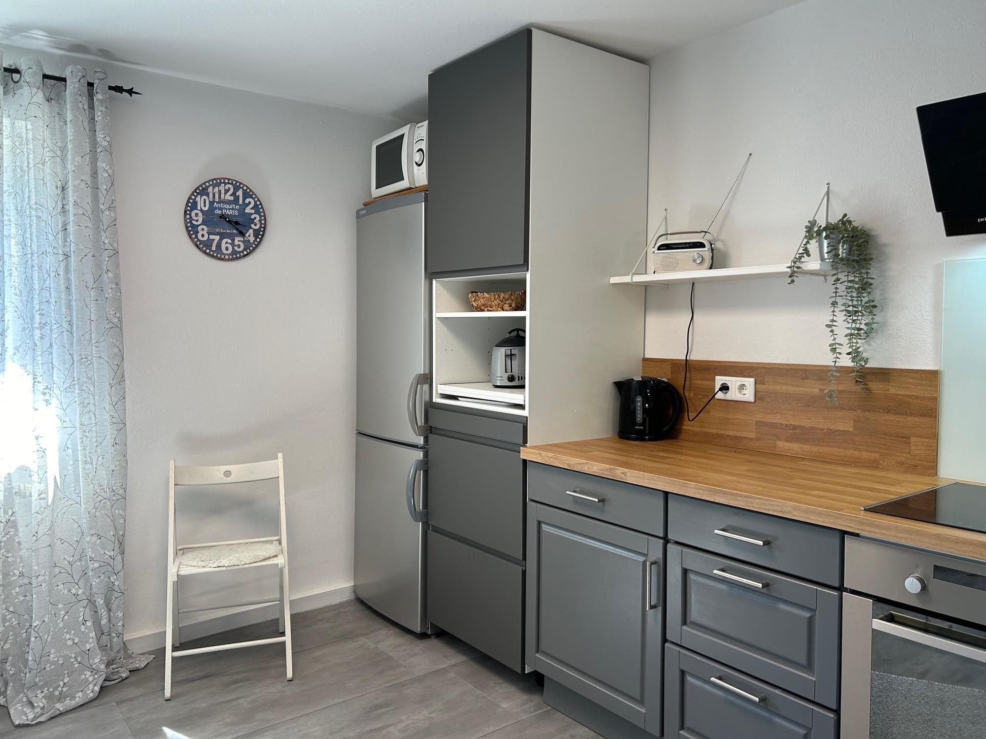 Auf der Wohnfläche von 103qm im 1. Stock befindet sich eine moderne und großzügige Küche, ein Bad mit Badewanne und ein separates WC, weshalb diese Ferienwohnung perfekt für Ihren nächsten Familienurlaub oder Ausflug mit Freunden geeignet ist.
