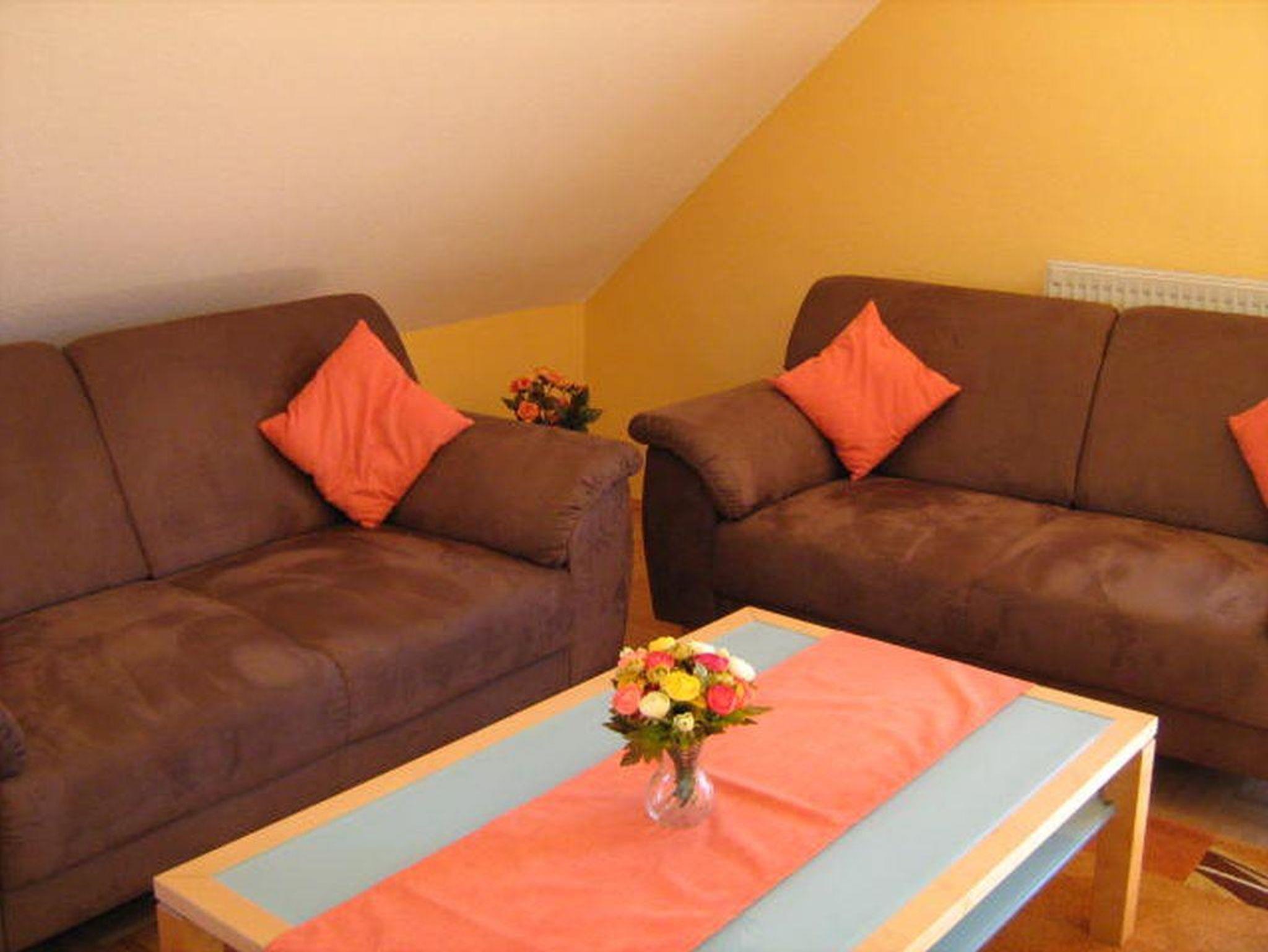 Ausstattung: Großzügiges Wohnzimmer mit Essecke, TV, 2 Schlafzimmer mit Doppelbett, voll ausgestatteter Küche, Badezimmer mit Wanne, Dusche u. WC. Nichtraucherwohnung, keine Haustiere. Bettwäsche, Handtücher u. Endreinigung inklusive.