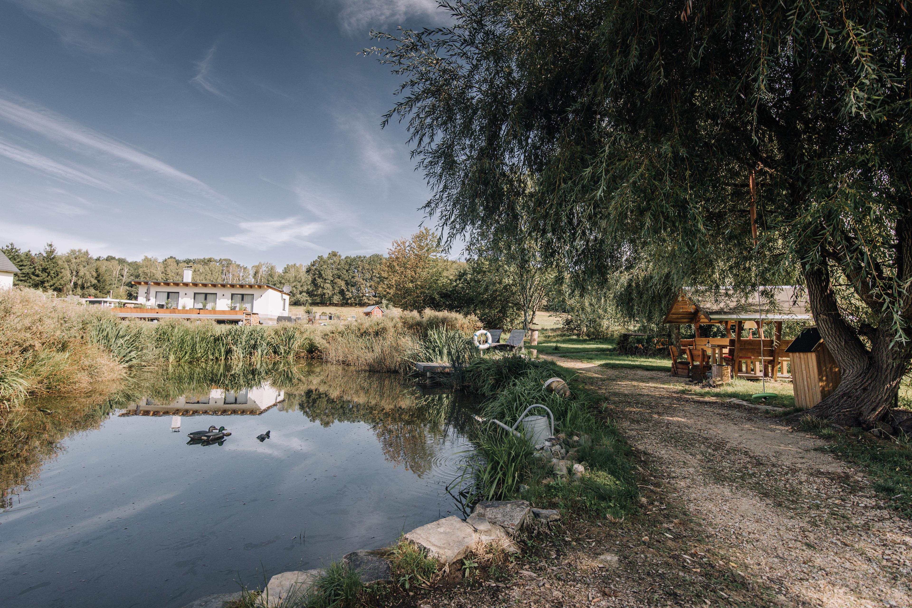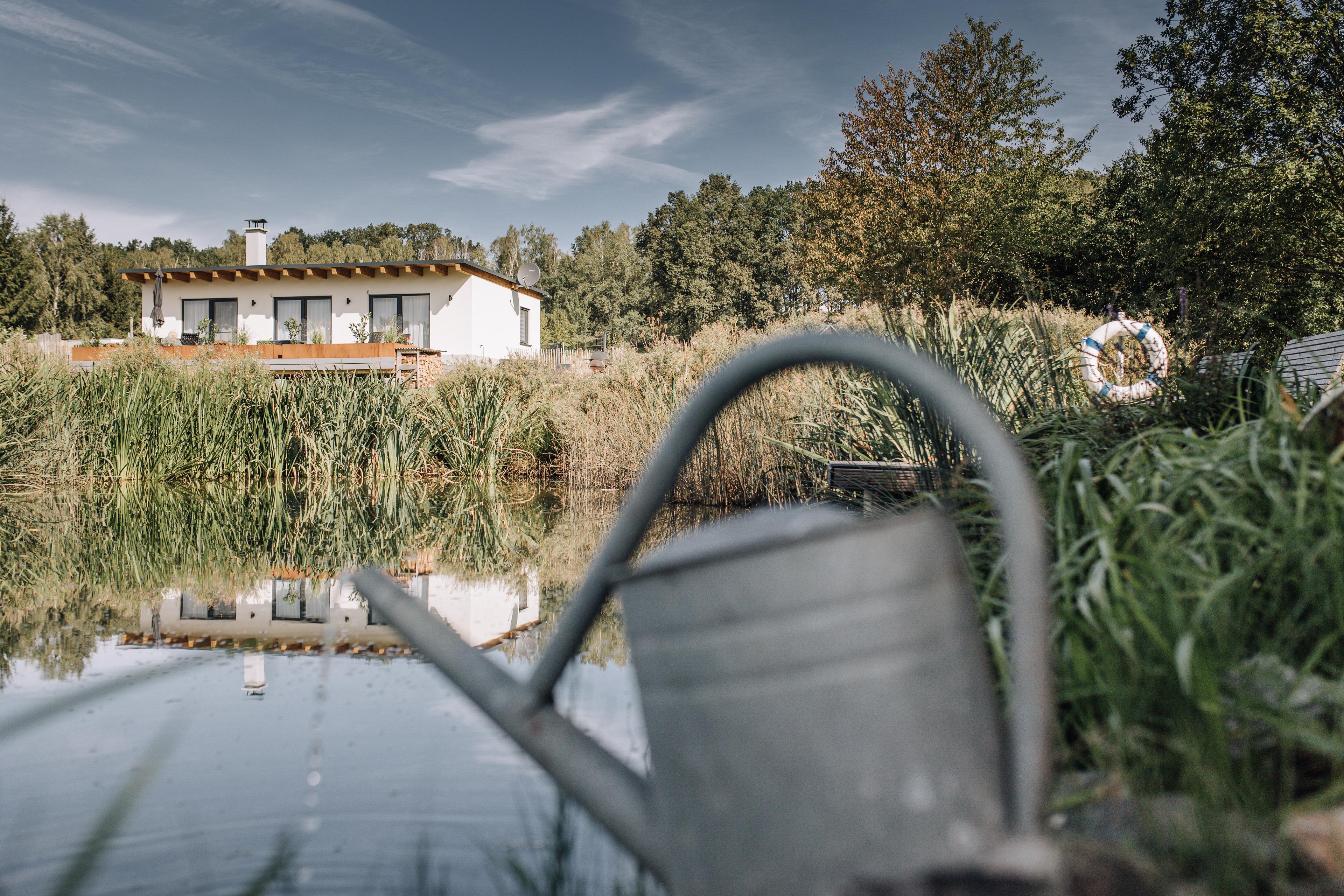 Besonderheit bietet die unmittelbare Lage an einem Teich, der nicht nur ein optischer Hingucker/ schön anzusehen ist, sondern auch Möglichkeiten zur Erholung schafft. Mit kleinem Bachlauf, Kinderküche und Forscherlabor für Kinder wird naturnahes Forschen und Entdecken angeregt.