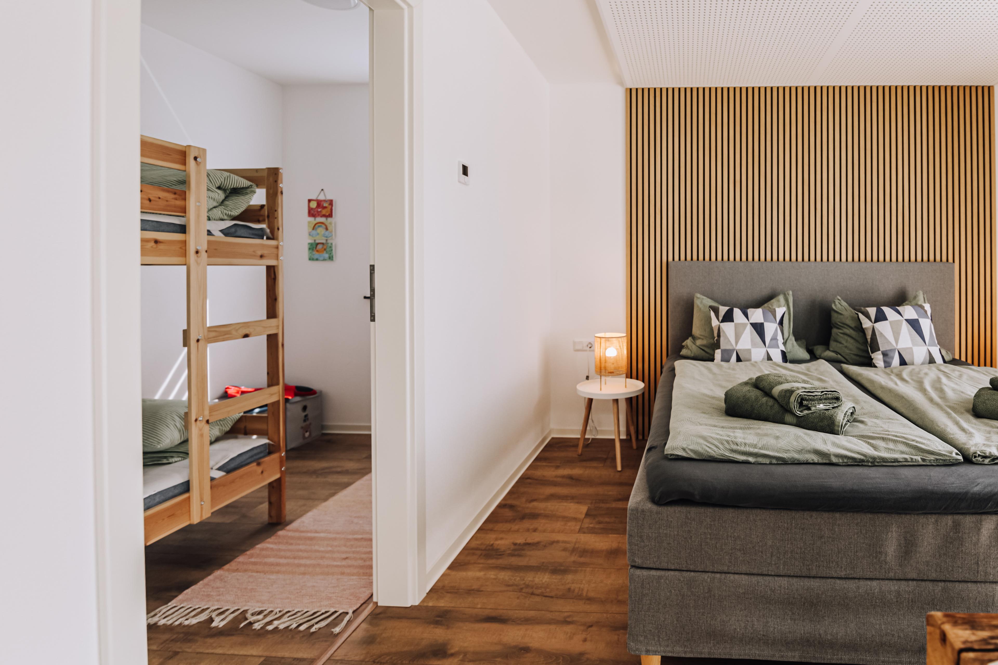 Das Chalet bietet 1x großes Elternbett und 1x Doppelstockbett in einem separaten Zimmer für Kinder. Ein Babybett und Baby-Stuhl können wir gern auf Anfrage zu Verfügung stellen. Eine komplett ausgestattete Küche sowie ein Kamin und Fußbodenheizung setzen das Chalet auf ein hohes Level. Das Bad ist mit ebenerdiger Dusche, WC und Waschbecken ausgestattet. Der Außenbereich bietet viel Platz zum Spielen für die Jüngsten.