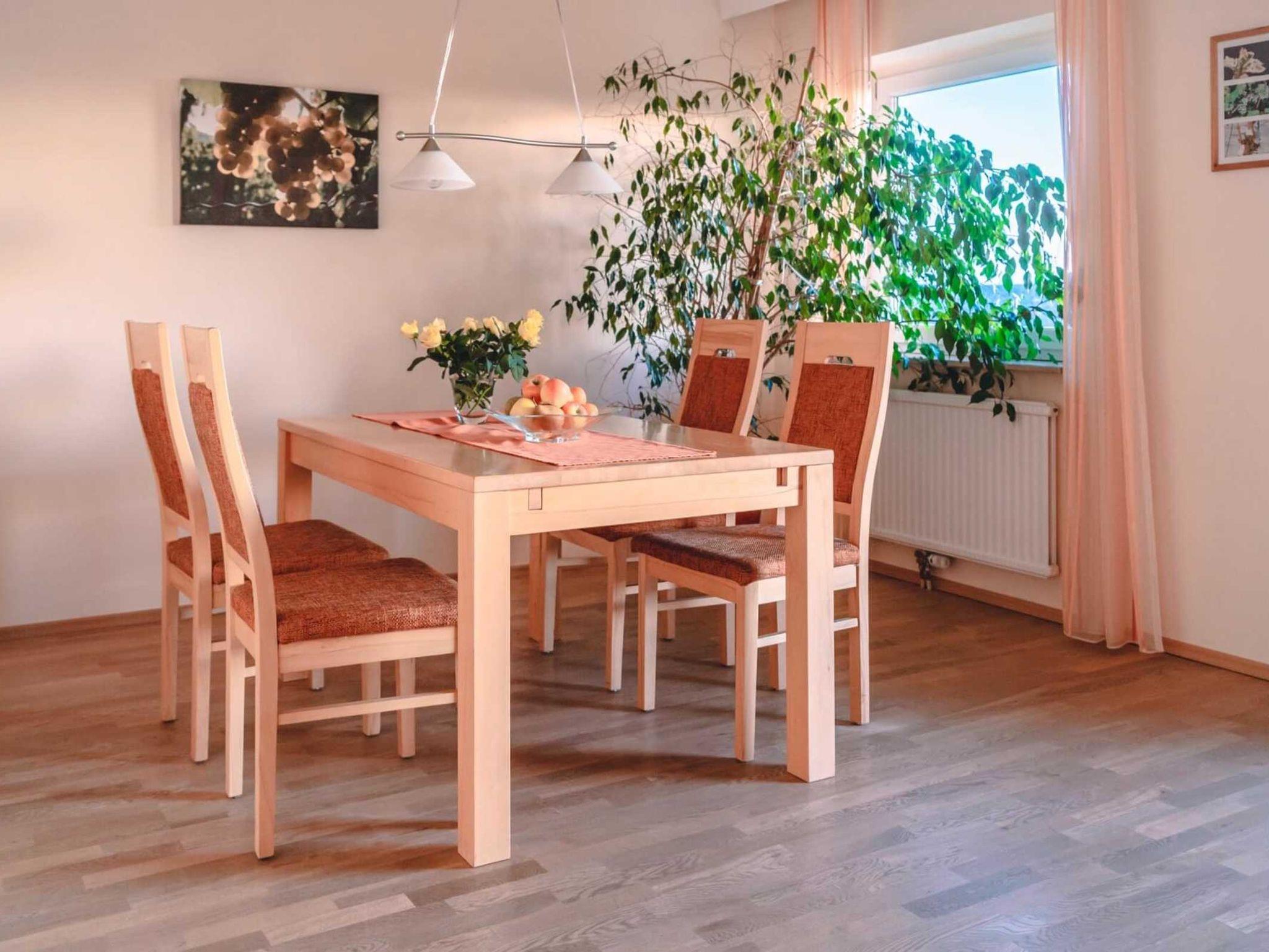 Die gut ausgestattete Ferienwohnung für 2-4 Personen befindet sich im 1. Stock des Wohnhauses. Der Balkon ist nach Süden ausgerichtet und Sie haben einen herrlichen Ausblick auf die umliegenden Felder.