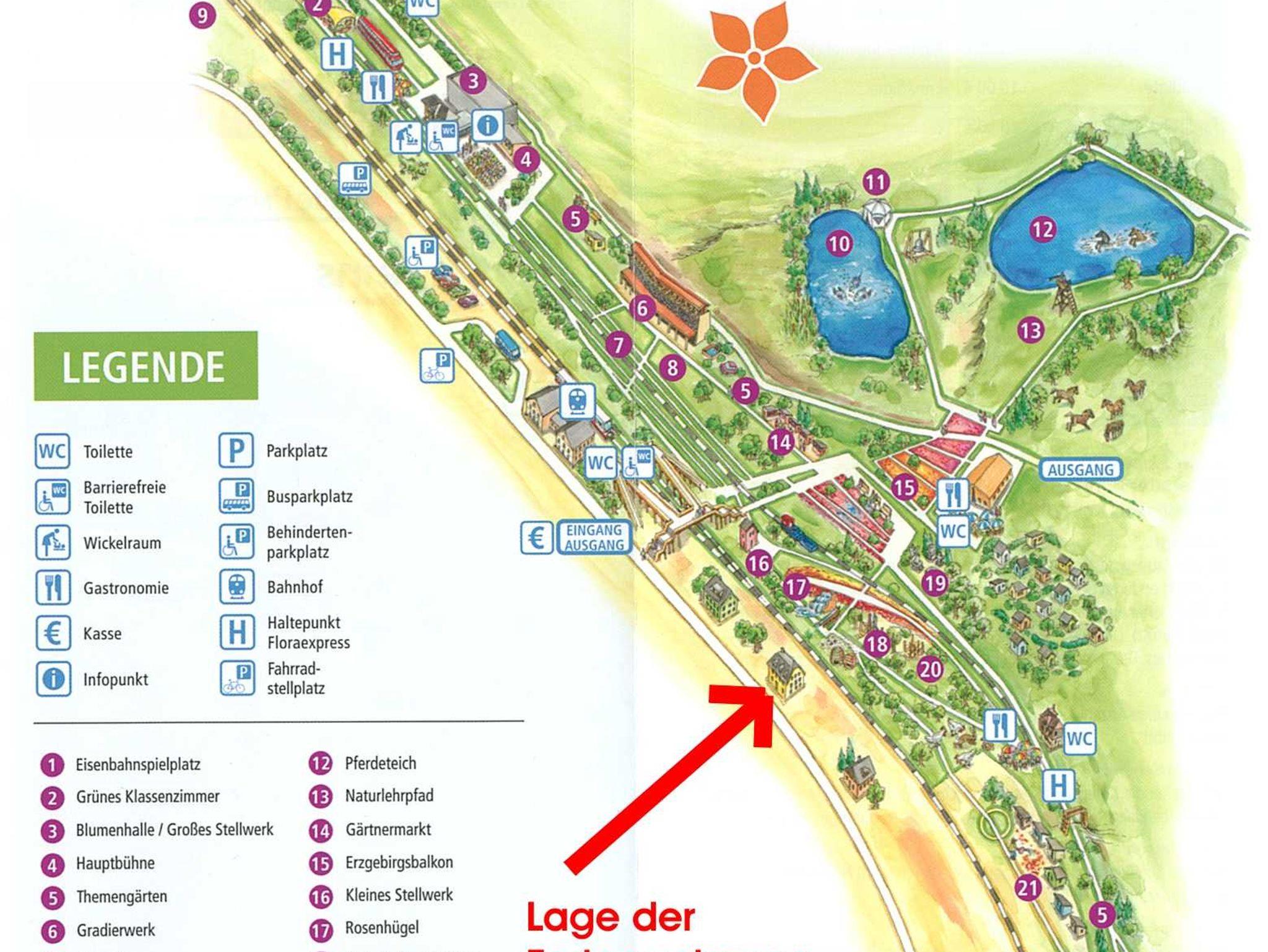 Die Ferienwohnung liegt nur 100m zum Eingang der sächsischen Landesgartenschau 2015 entfernt. Ab März 2016 steht das weitläufige Gelände mit seinen attraktiven Spielplätzen, Ruhezonen und dem Gradierwerk allen Bürgern und Touristen kostenfrei als Park zur Verfügung. Der Zugang führt über eine behindertengerechte und kinderwagengeeignete Fußgängerbrücke, auch für Fahrräder geeignet.