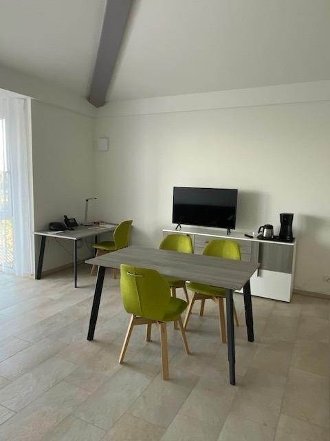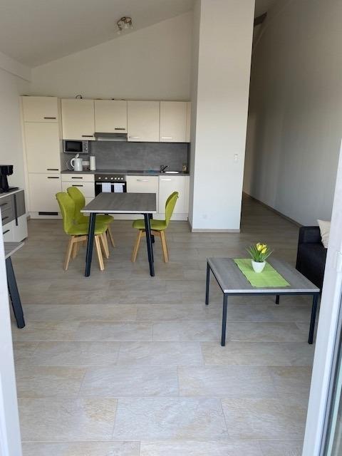 Unsere Wohnungen sind komplett möbliert und voll ausgestattet mit allem was Sie brauchen, um sich wie zuhause zu fühlen. Die Küchenzeile ist mit 4-teiligem Ceranfeld, Backofen, Spülmaschine, Mikrowelle, Toaster und Geschirr komplett eingerichtet. Neben einem Essbereich bietet Ihnen der offen gestaltete und modern eingerichtete Wohnbereich einen Bereich mit Ecksofa und 43″ UHD TV. Außerdem befindet sich im Raum ein Arbeitsplatz.