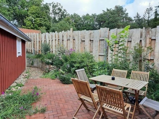 Das gemütlich eingerichtete Feriendomizil steht auf einem ca. 3.700 m² großen, eingezäunten Grundstück, zu dem Sie vom Wohnbereich aus direkten Zugang haben.
