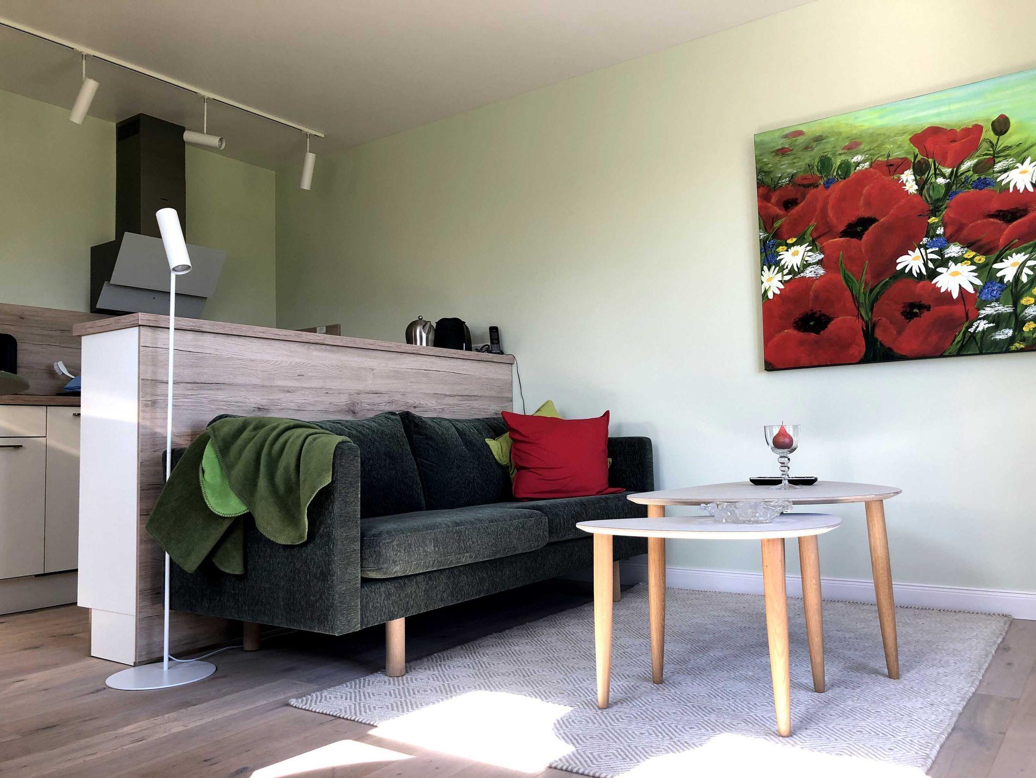 Die Ferienwohnungen sind im skandinavischen Design individuell eingerichtet und bestechen durch ihre ruhige Lage mitten im Grünen.