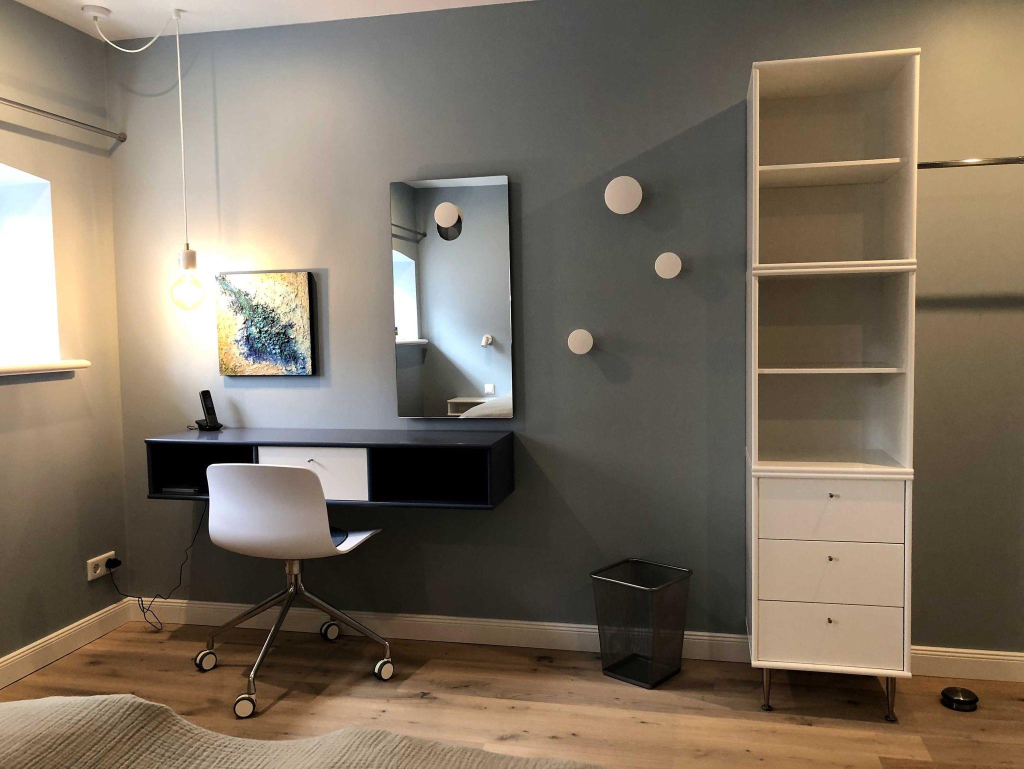 Das Wohnkonzept in dieser Wohnung ist sehr offen (ohne Türen zwischen Wohn- und Schlafzimmer) gestaltet.