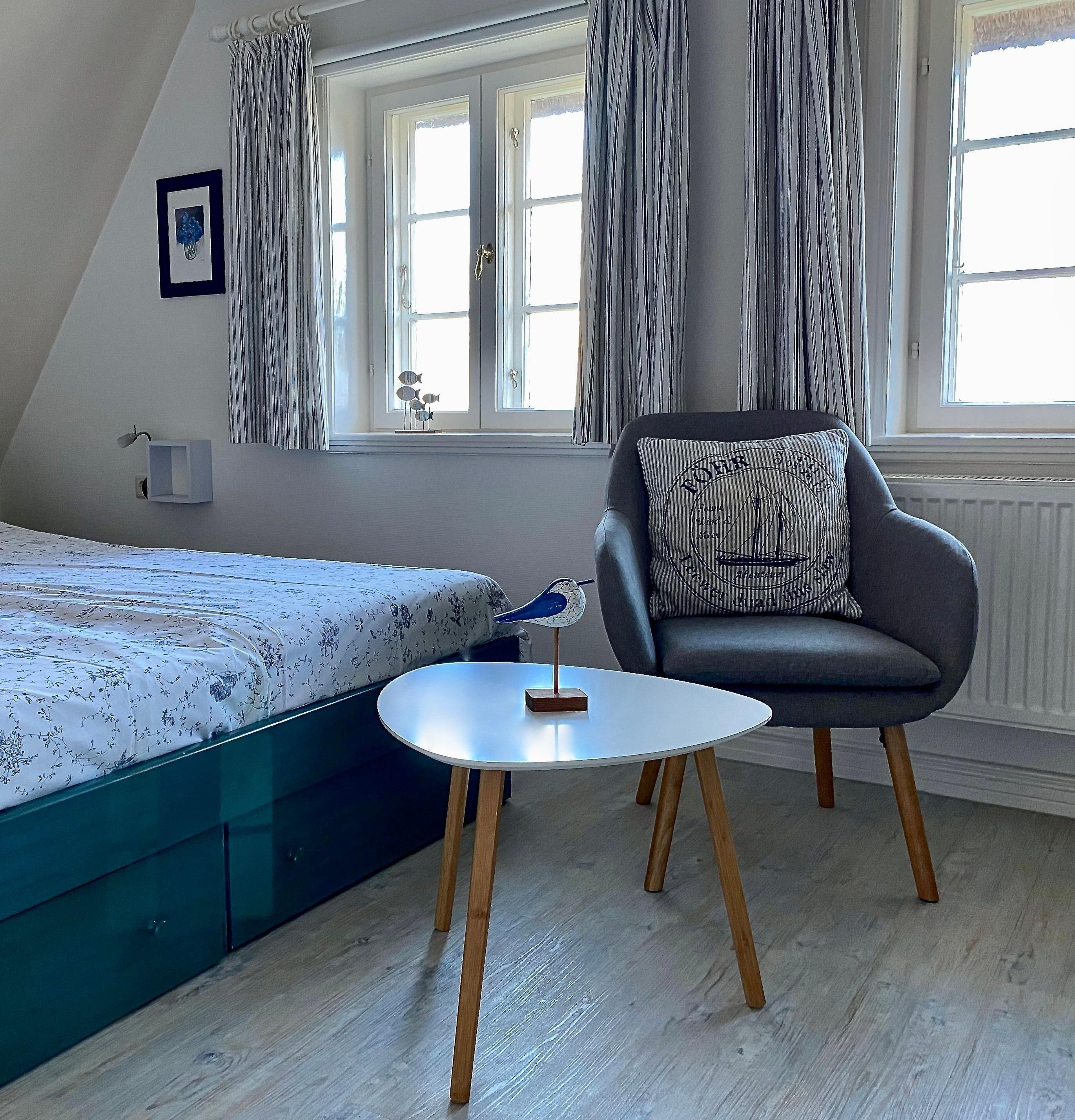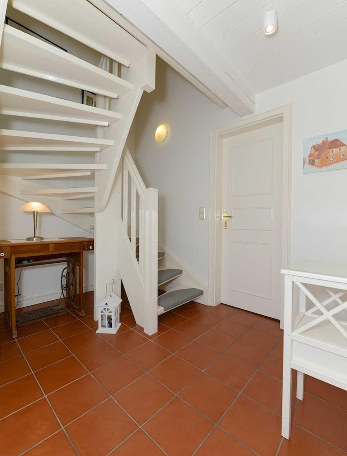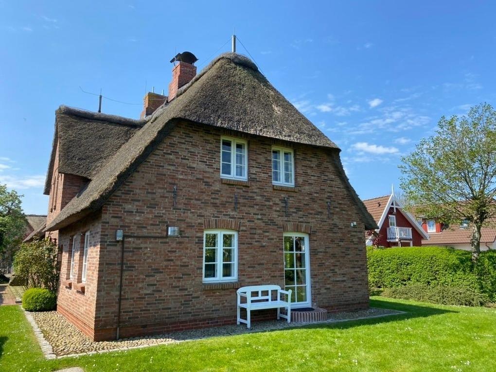Oevenum - Föhr : Reethaushälfte. Diese gemütliche und komfortabel ausgestattete 4-Sterne Reethaushälfte mit eigenem Garten liegt in sehr ruhiger Lage am Rande der Föhrer Marsch, aber dennoch zentral im historischen Dorfkern von Oevenum.