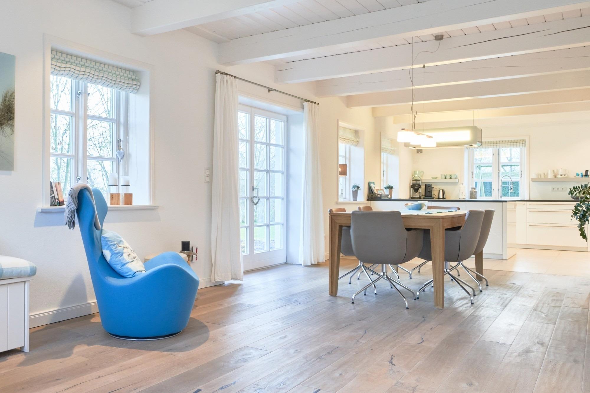 Ein exklusives Friesenhaus mit Reetdach und schöner Architektur erwartet Sie. Der Mix aus dem ursprünglichen friesischem Stil findet sich in kleinen Details in der hochwertigen und modernen Ausstattung wieder. Ob edle Holzfußböden aus Eiche, Natursteinfliesen oder die Holzeinbauten - hier ist alles auf den Punkt gebracht. Das macht den Charme und auch die Exklusivität des Hauses aus..Der großzügige Garten mit Terrasse und die traumhafte Randlage mit Blick in die Marsch bieten Ihnen ein Umfeld, wie Sie es auch auf der Insel Föhr nicht oft wiederfinden. Hier in Oevenum werden Sie gelassen und entspannt Ihren Urlaub verbringen...und sollten Sie den Trubel Wyks vermissen - in nur wenigen Fahrradminuten sind Sie am Sandwall und genießen das bunte Treiben in den Geschäften und Cafes..