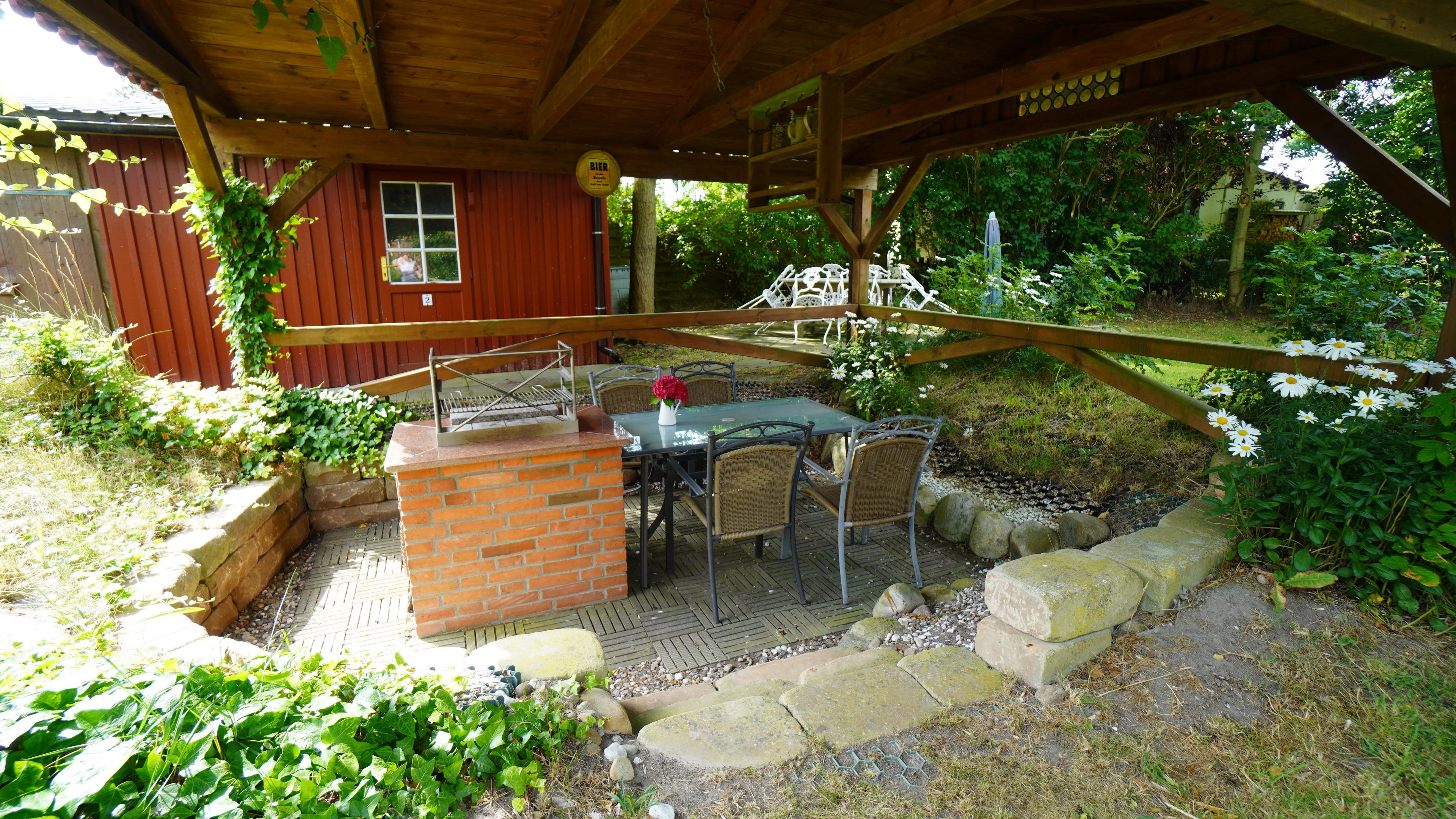 In den kälteren Monaten sorgt der dänische Bollerofen für eine gemütliche Atmosphäre - ausreichend Holz ist selbstverständlich vorhanden.