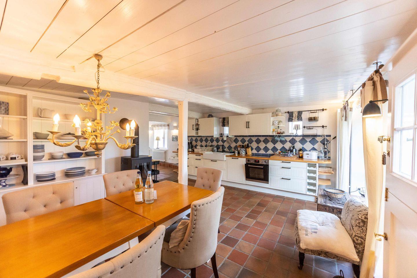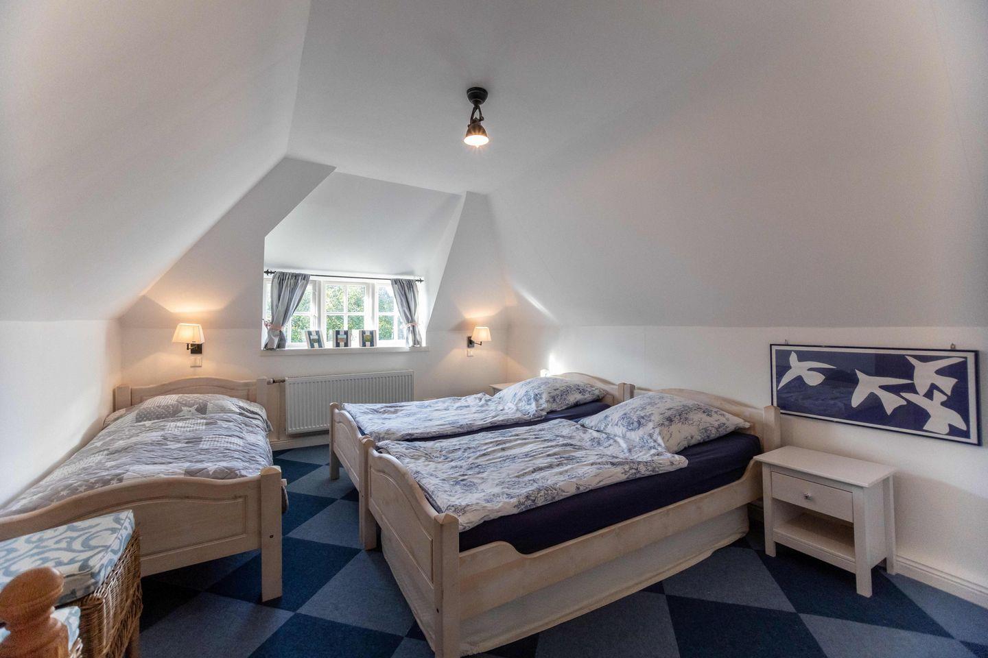 Dieses historische, reetgedeckte Friesenhaus haben Sie allein. Es liegt mitten im Herzen von Oevenum und ist nur eine Querstraße vom sehr beliebten Wochen- oder auch Handwerkermarkt (Donnerstags in der Saison) entfernt. 200m vom Objekt entfernt befindet sich ein Bäcker. Das Wyker Stadtzentrum befindet sich nur ca. 3,5 Kilometer entfernt und lädt somit zu wunderschönen Spaziergängen oder Fahrradtouren ein. Der Strand (Nieblum ebenfalls ca. 3,5 km) ist mit dem Rad über verschlungene zauberhafte Sträßchen und Wege zu erreichen. Für die Fahrräder gibt es am Haus einen großzügigen trockenen Unterstand. Das sanierte und gepflegte Ferienhaus ist windgeschützt gelegen und verfügt über einen geschützten Wiesen- und einen verträumten Frühstücksgarten. Historischer Friesenstil trifft auf modernes Design. Versteckter Großbildschirm neben einem der zwei dänischen Ofen. Das Haus bietet in seinen 3 Schlafzimmern mit insgesamt 3 Einzelbetten, einem französischen Bett (140cm breit) und einem Doppelbett (180cm breit) sowie drei neuen Bädern Platz für die ganze Familie. Die neue Küche ist charmant in das Objekt eingebunden und lädt zu einem Frühstück drinnen oder unter dem Apfelbaum draußen und später zu einem gemütlichen Abend am Holzofen ein.