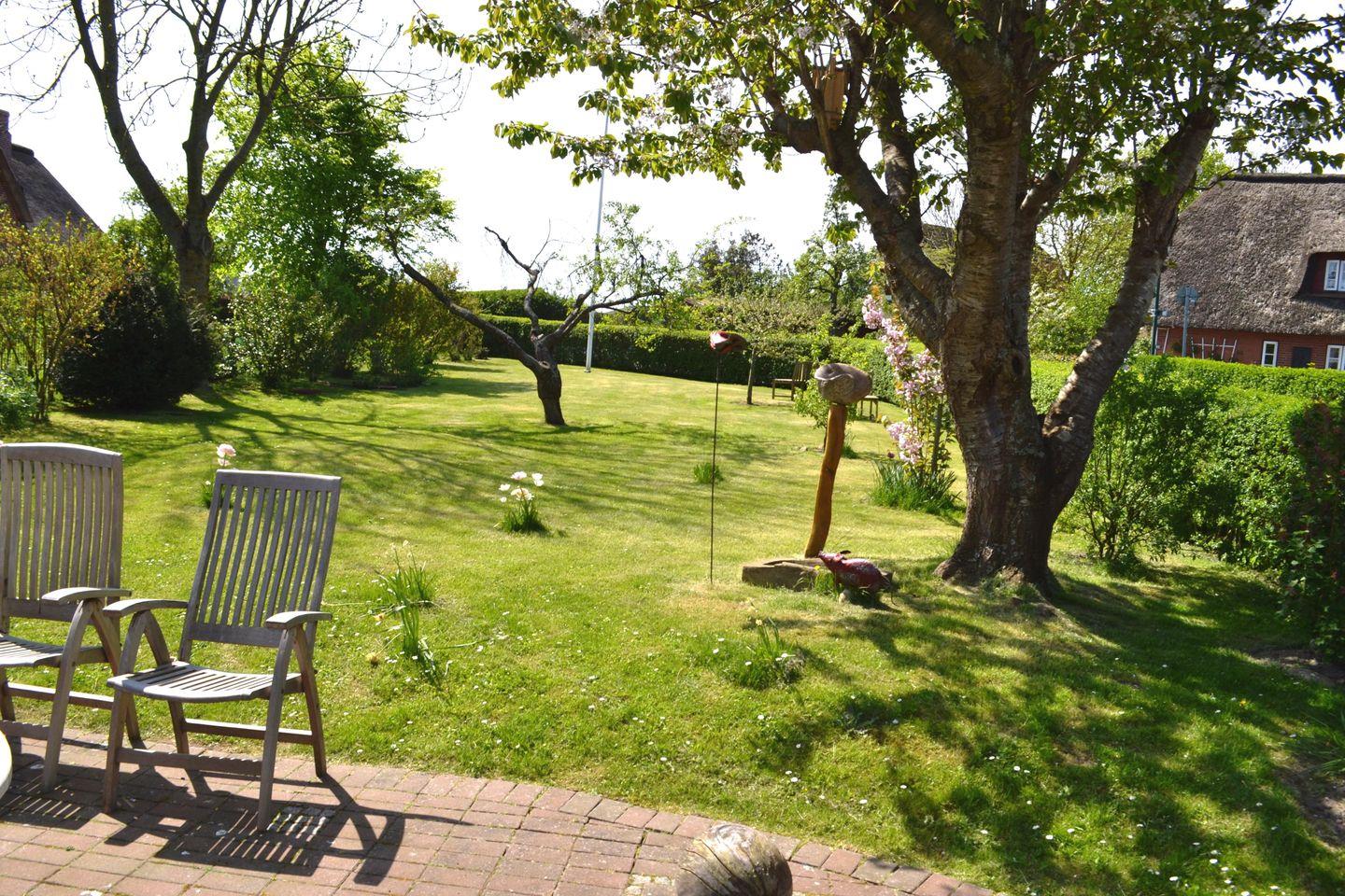 Das friesische Kapitänshaus unter Reet (ca. 100 m² Grdfl.) bietet reichlich Platz für bis zu 6 Personen. Es befindet sich im alten Inseldorf Oevenum und liegt in einem ruhigen Seitenweg. Umgeben von einem ca. 800 m² großen Garten bietet es seinen Gästen (Kinder sind herzlich willkommen) einen hohen Wohnkomfort. Bis zur Marsch sind es ca. 400 Meter. Mit dem Fahrrad nach Wyk und zum Strand (ca. 4 km) benötigt man ca. 15 Minuten. Kleine Einkaufs-möglichkeiten; Restaurants und Cafes sind in diesem idyllischen Dorf vorhanden.