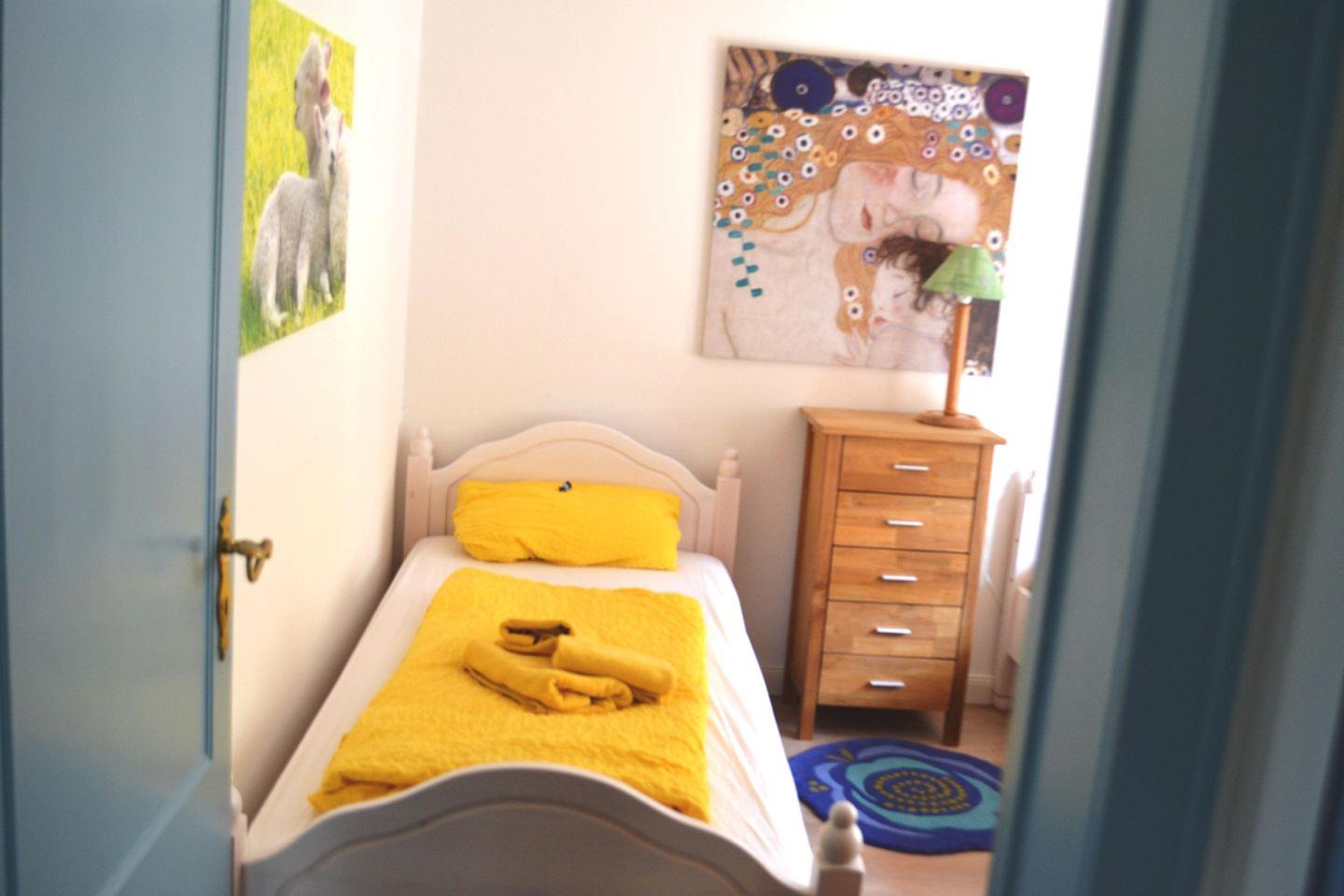 Dieses freistehende Haus verfügt über: ein großes Wohnzimmer (Möbel im Land-hausstil), offene Küche, Esszimmer, 2 Bäder (ein Dusch- und ein Wannenbad), zwei Schlafzimmer mit Doppelbetten, ein Kinderzimmer mit zwei Einzelbetten.
