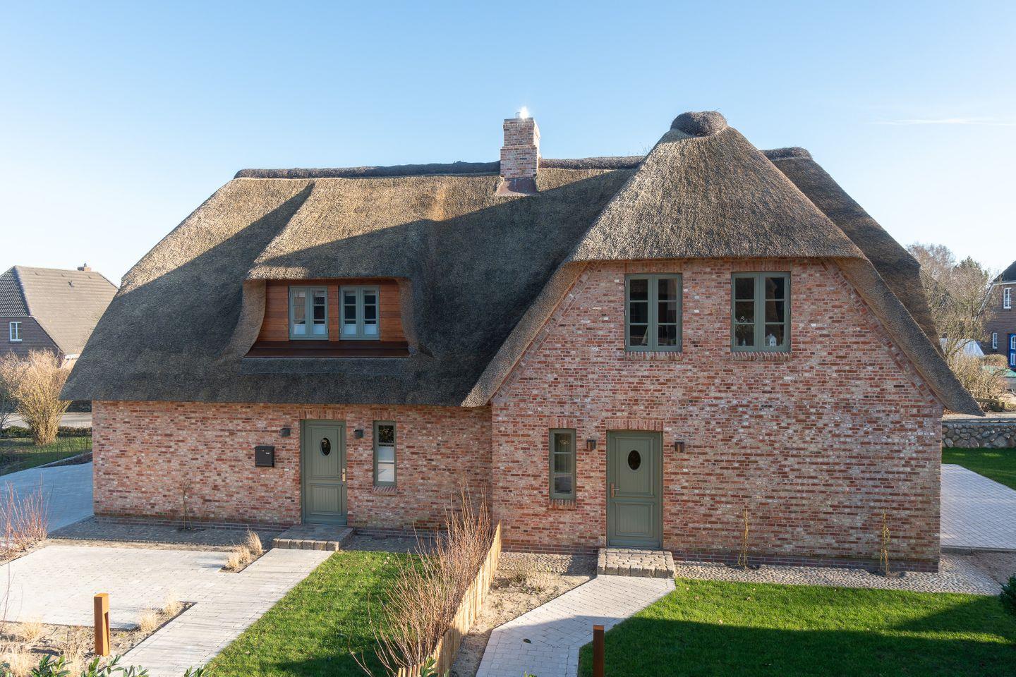 Die neue reetgedeckte Doppelhaushälfte Haus Hilde verfügt über 3 Schlafzimmer und 2 Bäder und bietet somit komfortabel Platz für bis zu 5 Personen zuzüglich einer Kleinkinderaufbettung. Auch ein Hund ist hier herzlich willkommen.