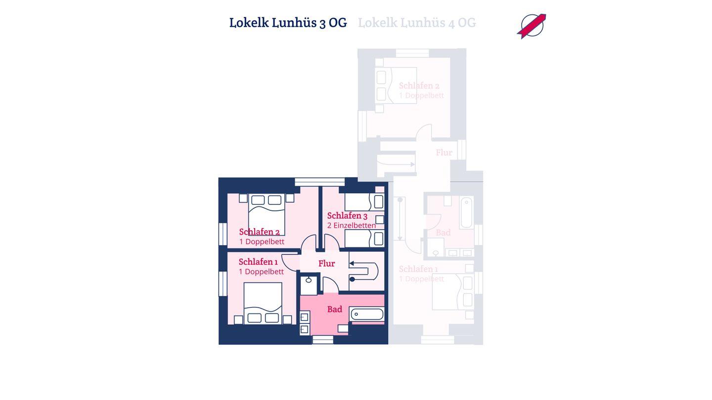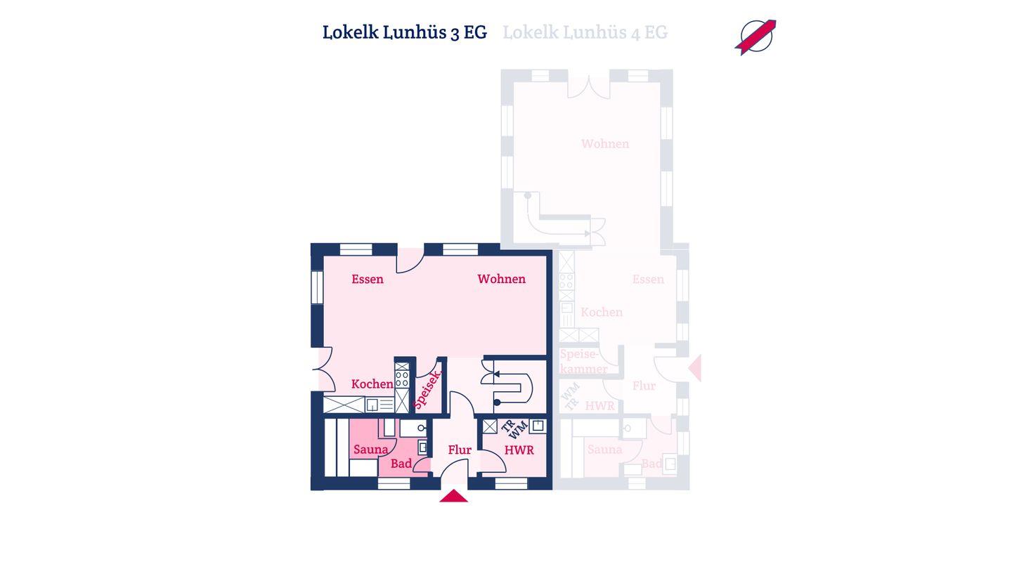 Der reetgedeckte Hausteil 3 im Lokelk Lunhüs wurde im Jahr 2024 neugebaut und verfügt über 3 Schlafzimmer und 2 Bäder und bietet somit komfortabel Platz für bis zu 6 Personen zuzüglich einer Kleinkinderaufbettung. Auch ein Hund ist hier herzlich willkommen.