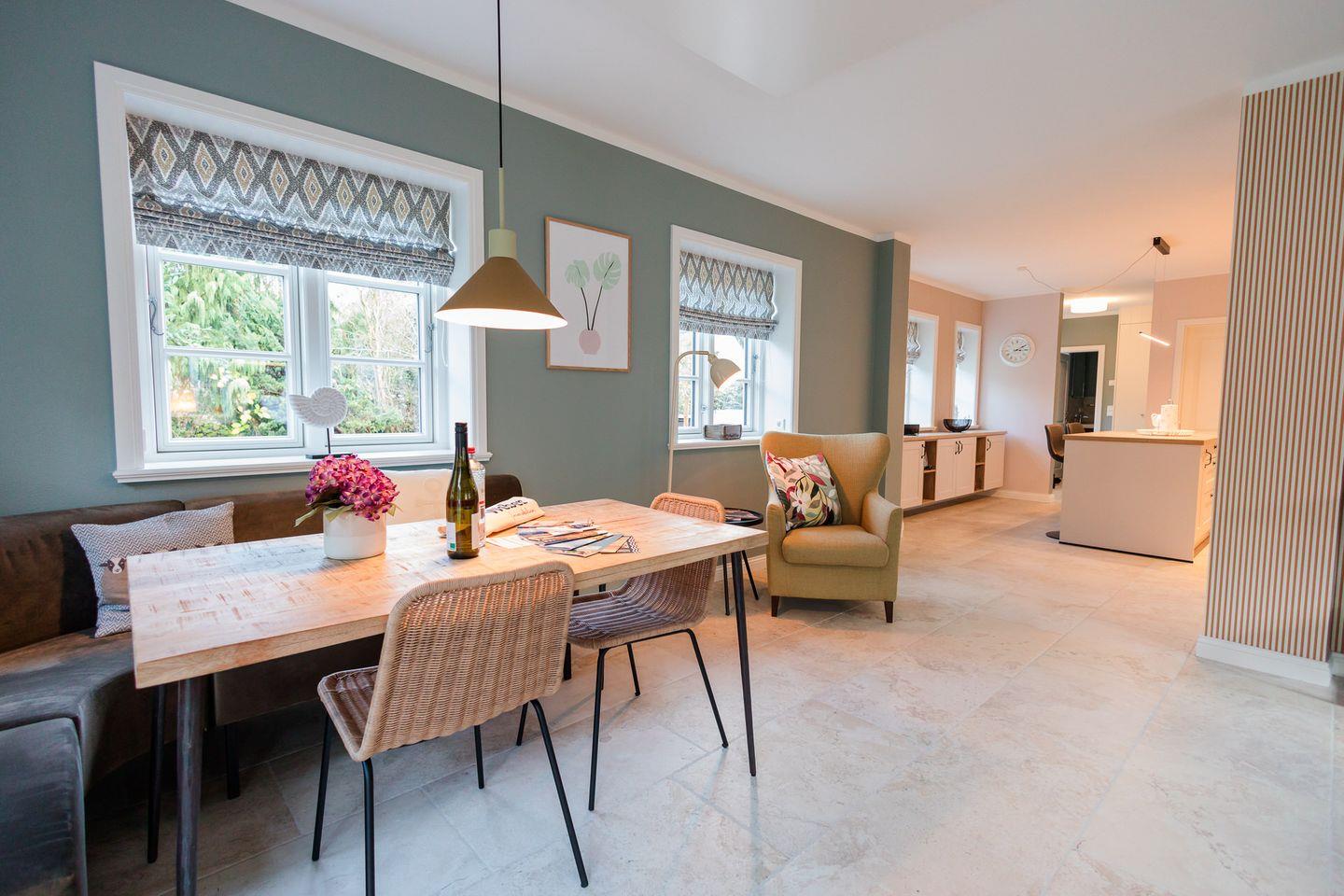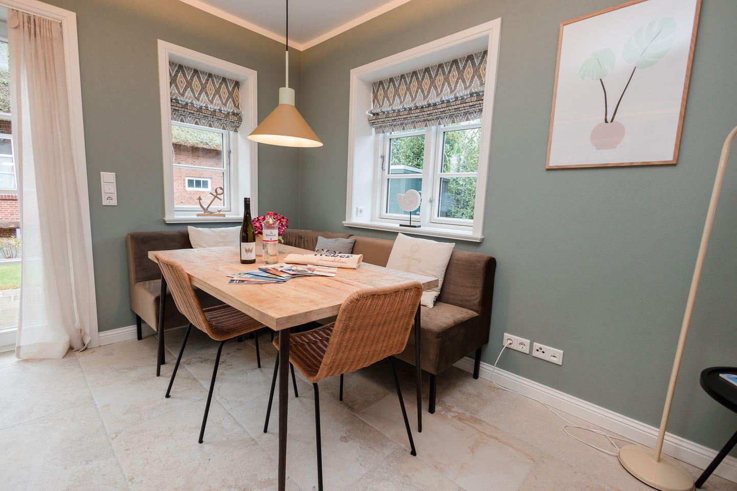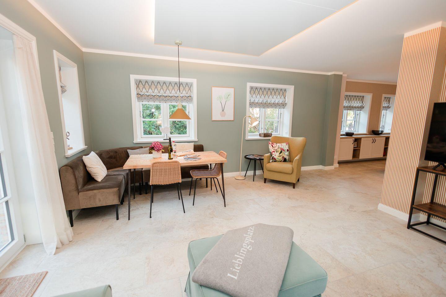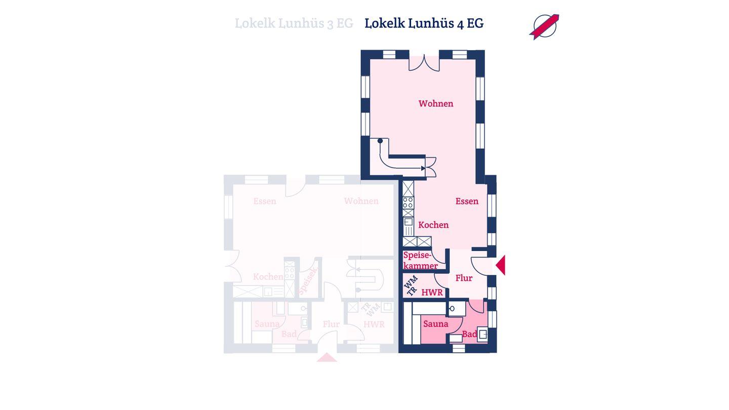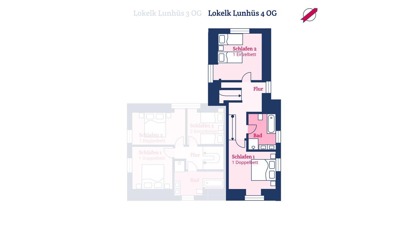 Die reetgedeckte Hausteil 4 im Lokelk Lunhüs wurde im Jahr 2024 neugebaut und verfügt über 2 Schlafzimmer und 2 Bäder und bietet somit komfortabel Platz für bis zu 4 Personen zuzüglich einer Kleinkinderaufbettung.