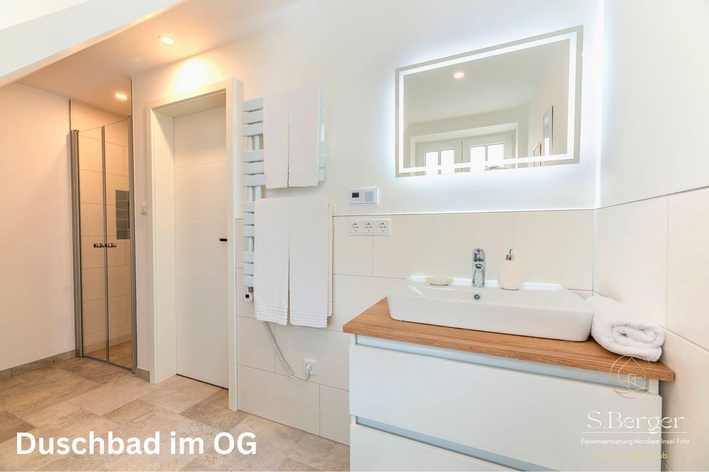 Zwei liebevoll gestaltete Schlafzimmer im Obergeschoss sorgen für erholsamen Schlaf. Sie sind mit Verdunklungsplissees und wendbaren Matratzen ausgestattet, die verschiedene Härtegrade bieten. Das moderne Duschbad verfügt über eine ebenerdige Dusche, eine Waschmaschine, ein Fenster und eine Fußbodenheizung.