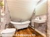 Ein liebevoll eingerichtetes Schlafzimmer mit Fernseher im Obergeschoss garantiert erholsamen Schlaf, während der Einbauschrank reichlich Platz für Kleidung bietet. Das Badezimmer ist mit einer Badewanne, einer Toilette und einem Waschbecken ausgestattet. In der Kammer befinden sich zudem eine Waschmaschine und ein Trockner.