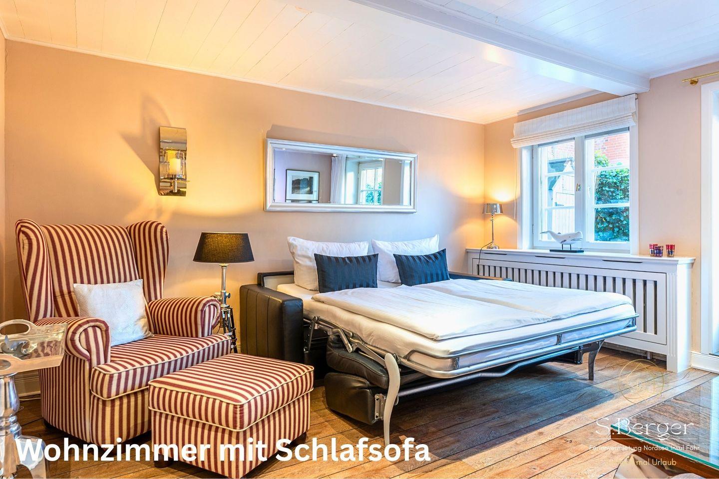Zwei Flure prägen diese friesische Ferienwohnung. Im ersten Flur haben Sie die Möglichkeit, die Treppe nach oben zu nutzen. Über den zweiten Flur gelangen Sie ins Esszimmer, in die separate Küche oder ins Wohnzimmer, das mit einem Schlafsofa und Zugang zur Terrasse ausgestattet ist.