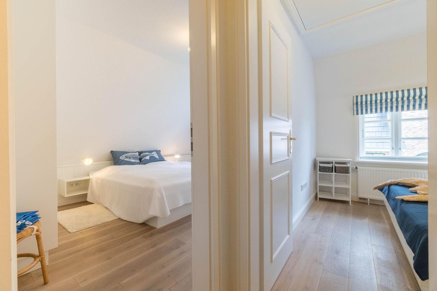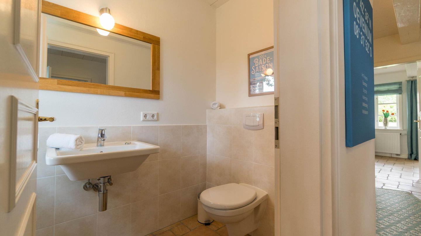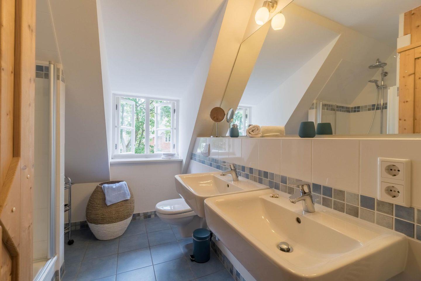 Das Schulmeisterhaus ist aufgeteilt in zwei Ferienwohnungen, die sich jeweils über das Erd- und Obergeschoss erstrecken. Links ist die Ferienwohnung "Große Pause" gelegen und rechts die "Kleine Ferien". Ein wunderschöner Garten mit alten Obstbäumen, von denen Sie sich selbstverständlich bedienen können, rundet das Ambiente ab. Jeder Ferienwohnung ist ein eigener Terrassenplatz zugeordnet, welcher neben dem Gartenmobiliar auch über einen Sonnenschirm und einen eigenen Strandkorb verfügt. Auch ein eigener Wohnungs-PKW-Stellplatz ist direkt am Haus gegeben.