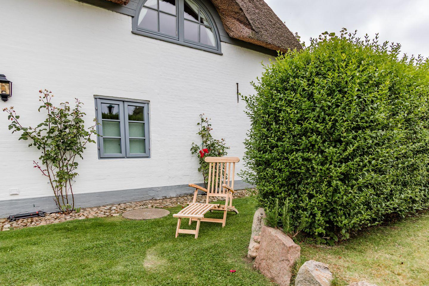 Das reetgedeckte Ferienhaus "Anno 1799" wurde, wie der Name schon vermuten lässt, im Jahr 1799 erbaut und 2018 komplett saniert und umgebaut. Der großzügige Garten bietet den Kindern genug Platz zum Austoben, den Erwachsenen mit 3 Sonnenliegen Erholungsflächen und für alle einen schönen Terrassenplatz. Ein Highlight im hauseigenen Garten ist die außenliegende Sauna. Ihre Fahrräder können Sie in dem abschließbaren Schuppen unterbringen. Das Haus bietet mit drei Schlafzimmer und zwei Bädern auf über 137 m² für sechs erwachsenen Bewohnern komfortabel Platz. Das Haus wurde mit viel Liebe zum Detail eingerichtet.