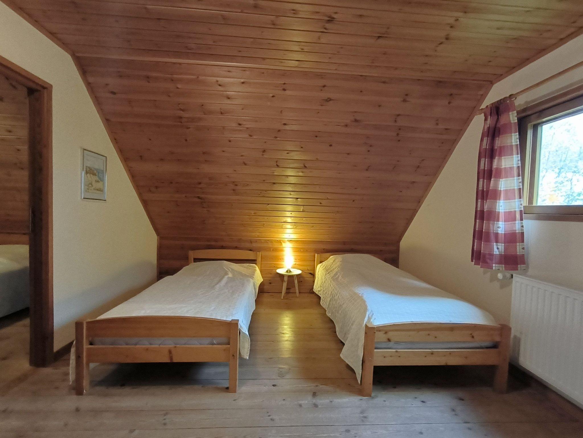 Die Schlafzimmer liegen im Obergeschoss: das Zimmer mit zwei Einzelbetten ist ein Durchgangszimmer, die anderen beiden Schlafzimmer sind jeweils mit einem Doppelbett ausgestattet. Am Küchentisch, in der Sofaecke oder draußen auf der Terrasse kann man essen, spielen, lesen und die gemeinsame Urlaubszeit genießen.
